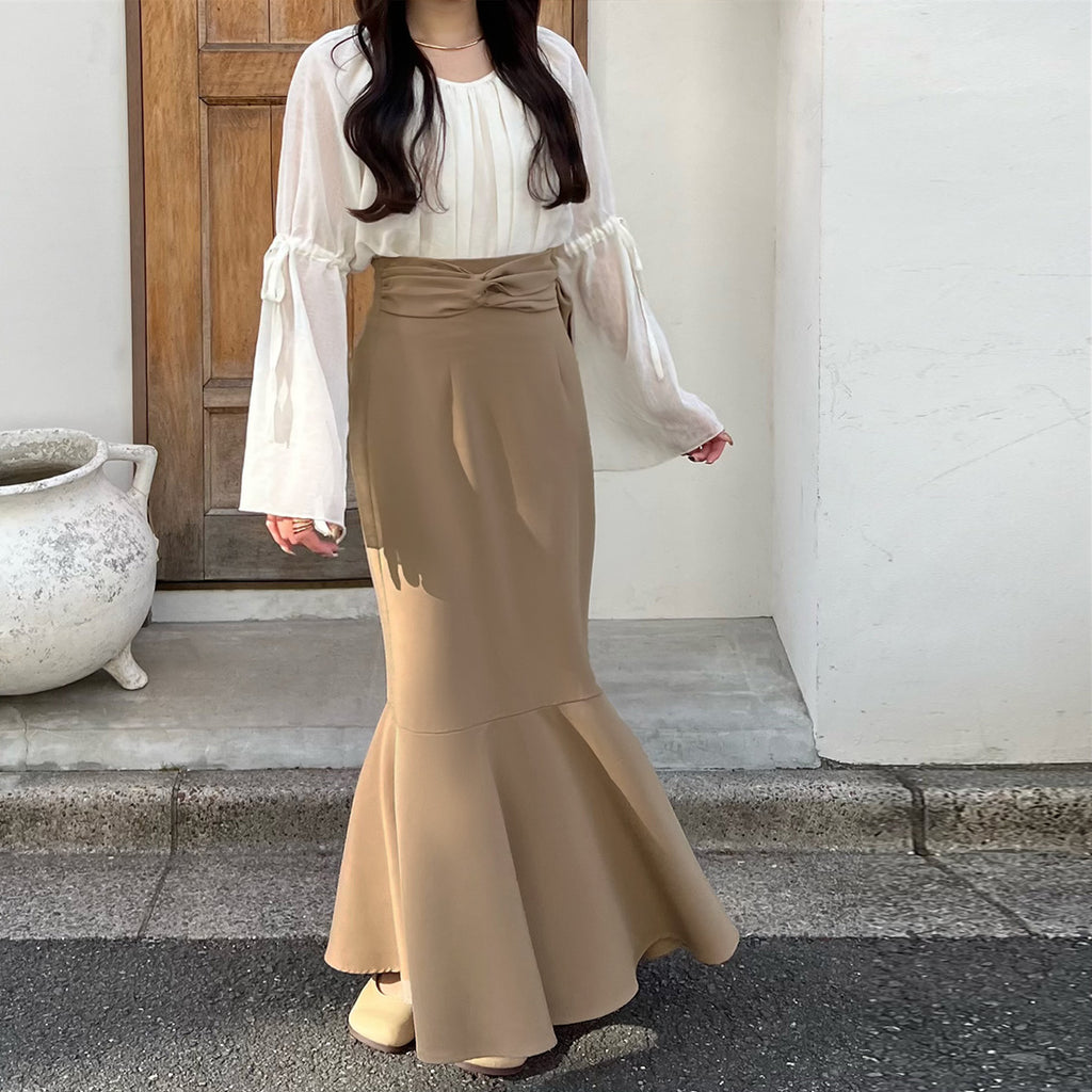 マーメイドラインで女性らしい着こなしを叶えるロングスカート。
