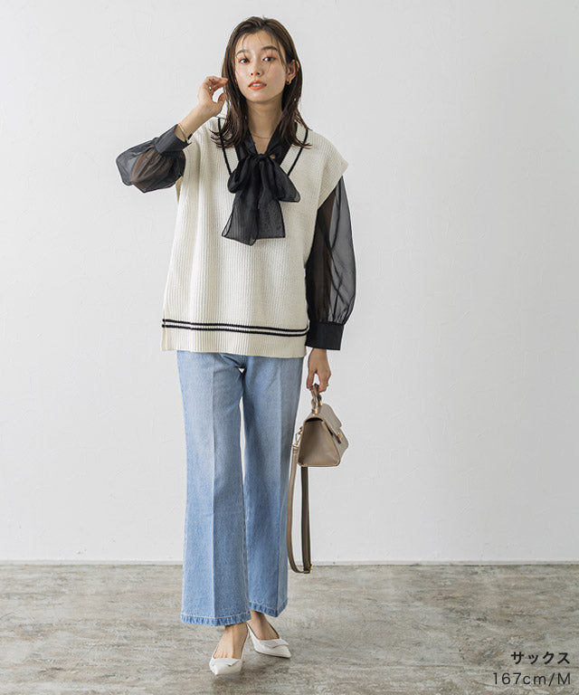 トレンドのフレアシルエットのデニム。