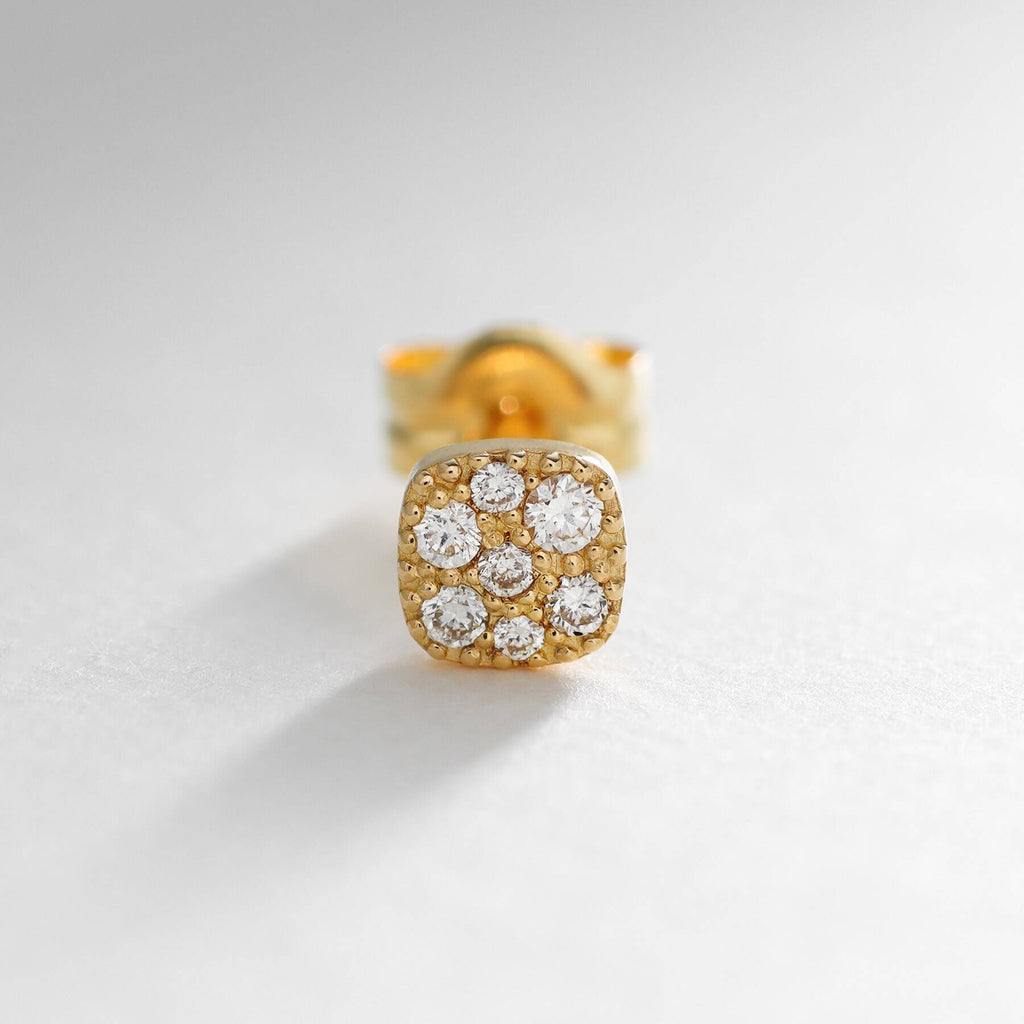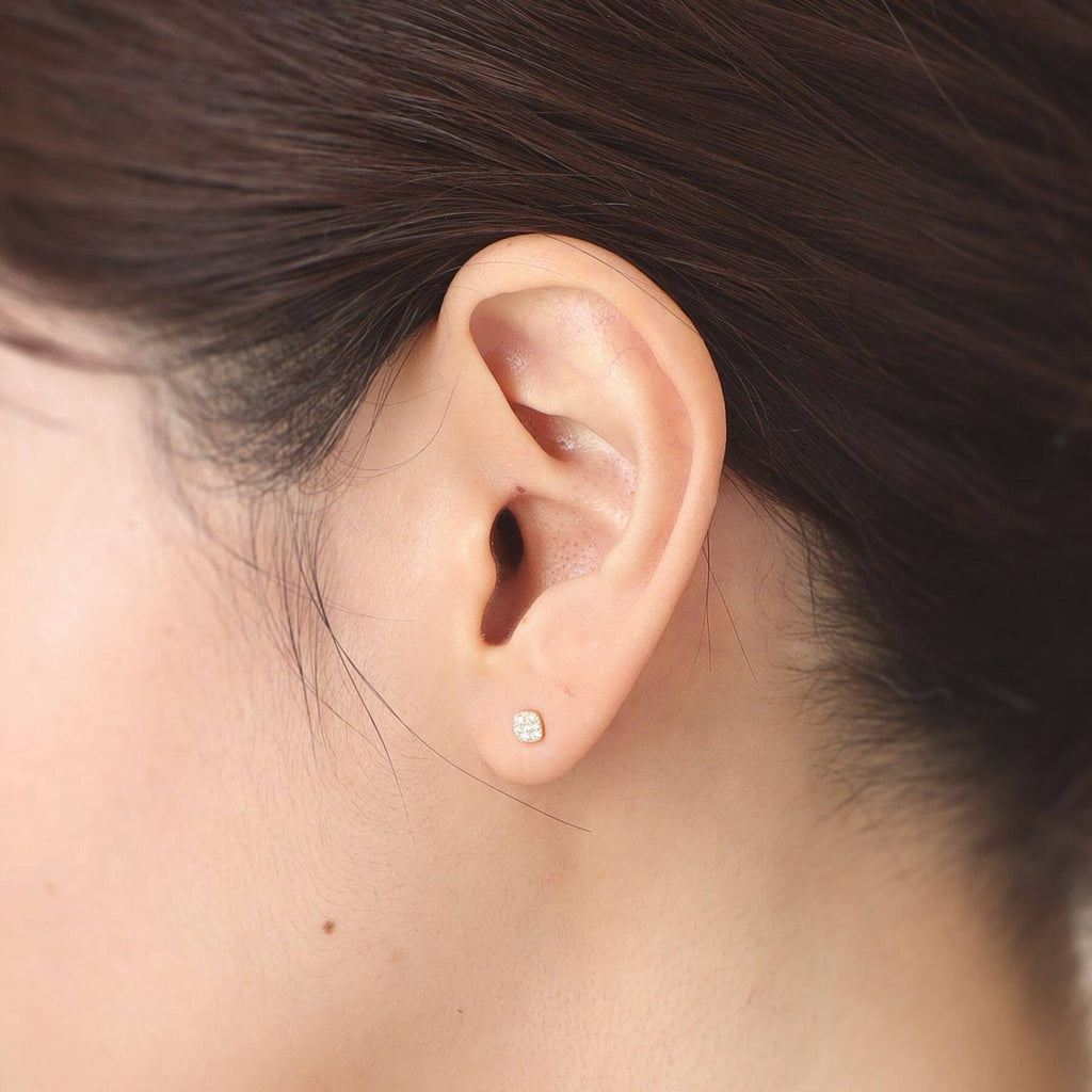 大小異なるサイズのダイヤモンドをランダムに配置することで、ダイヤの煌めきがより一層強調されます。周囲に施したミル細工が華やかなピアスは落ち着いた大人の女性の着こなしに導きます。同デザインのネックレス(36143)、同シリーズのラウンドピアス(76175)もございます。