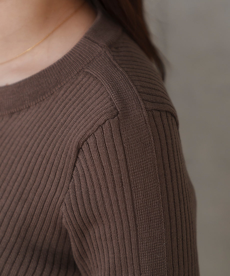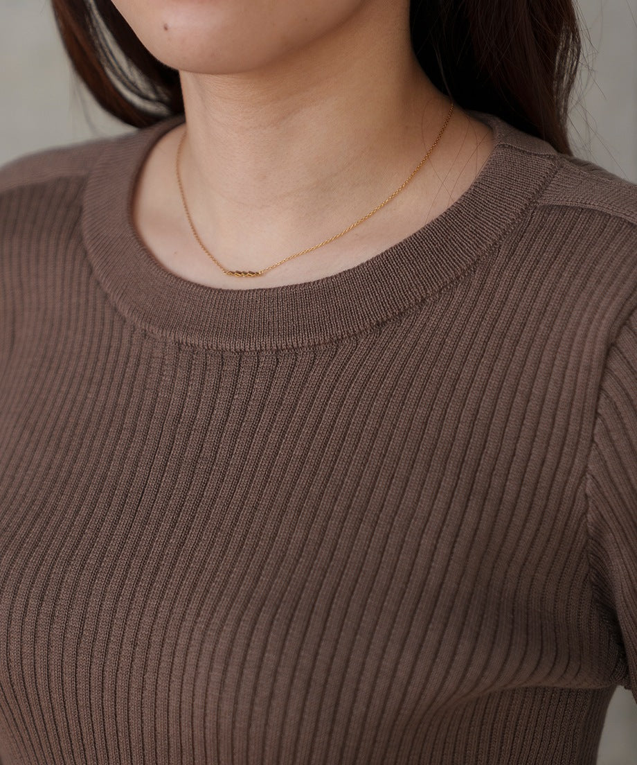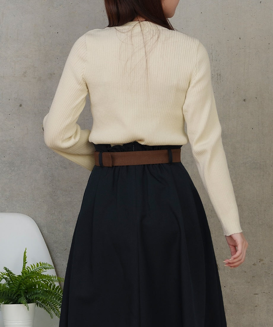 リブ編みの生地はボディラインを美しく見せ、洗練されたシルエットを叶えます。