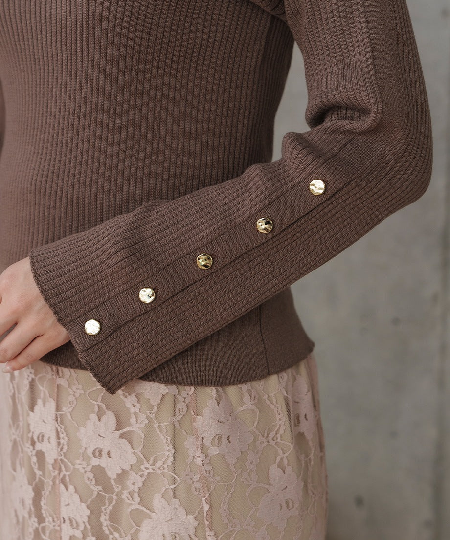 「ボタンスリットスリーブニット」は、シンプルでありながら、上品なデザインが際立つ一枚です。