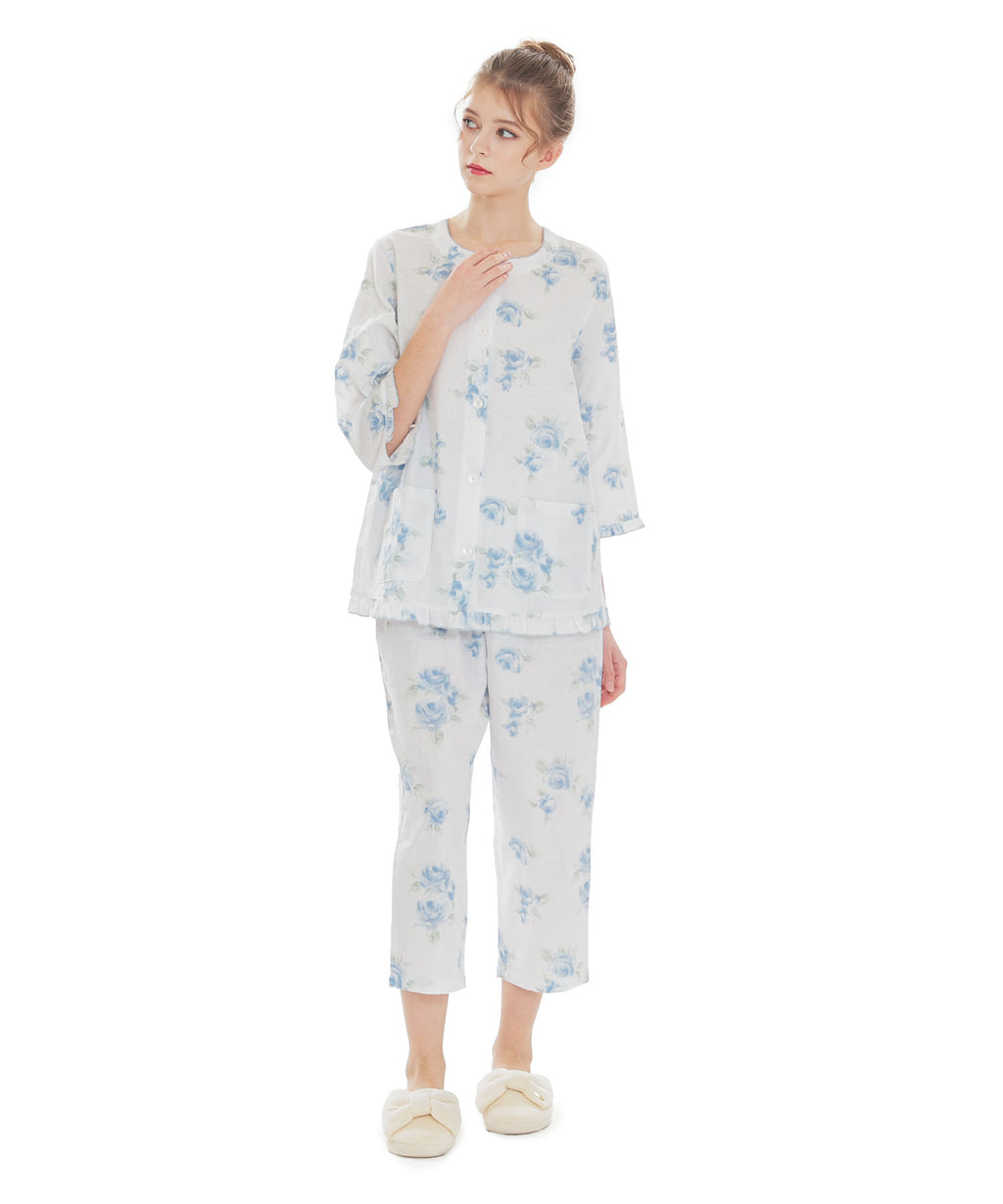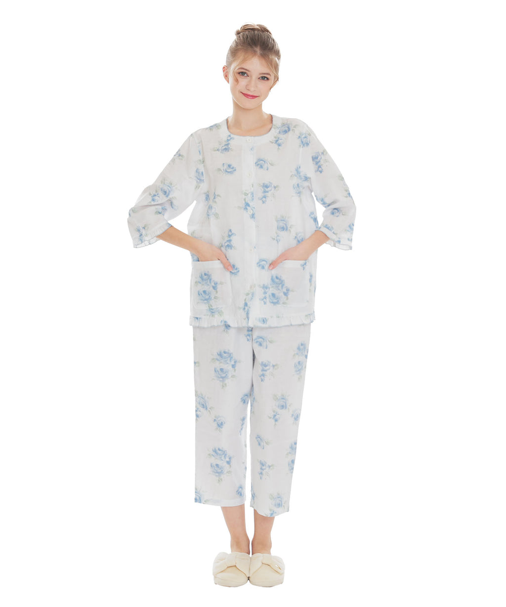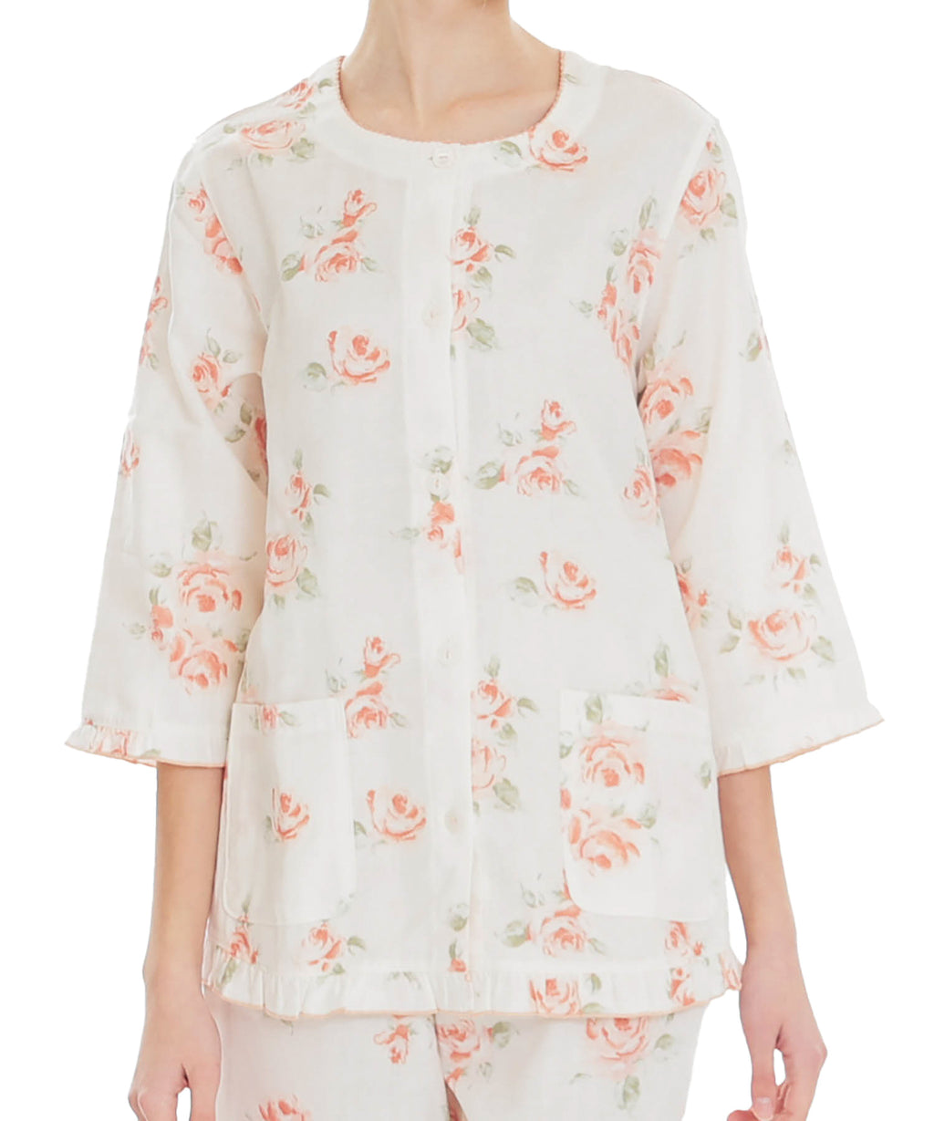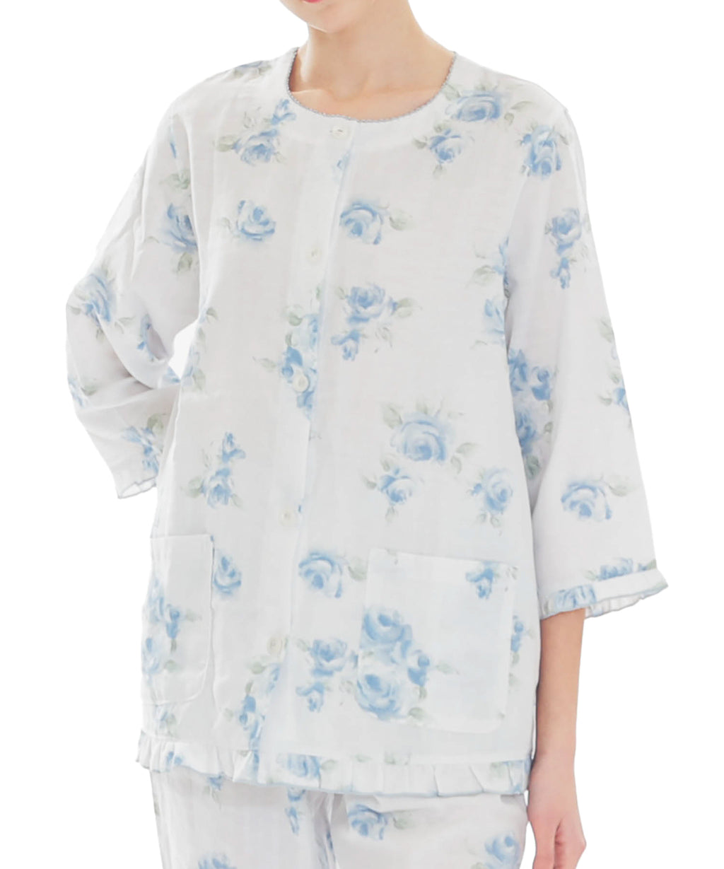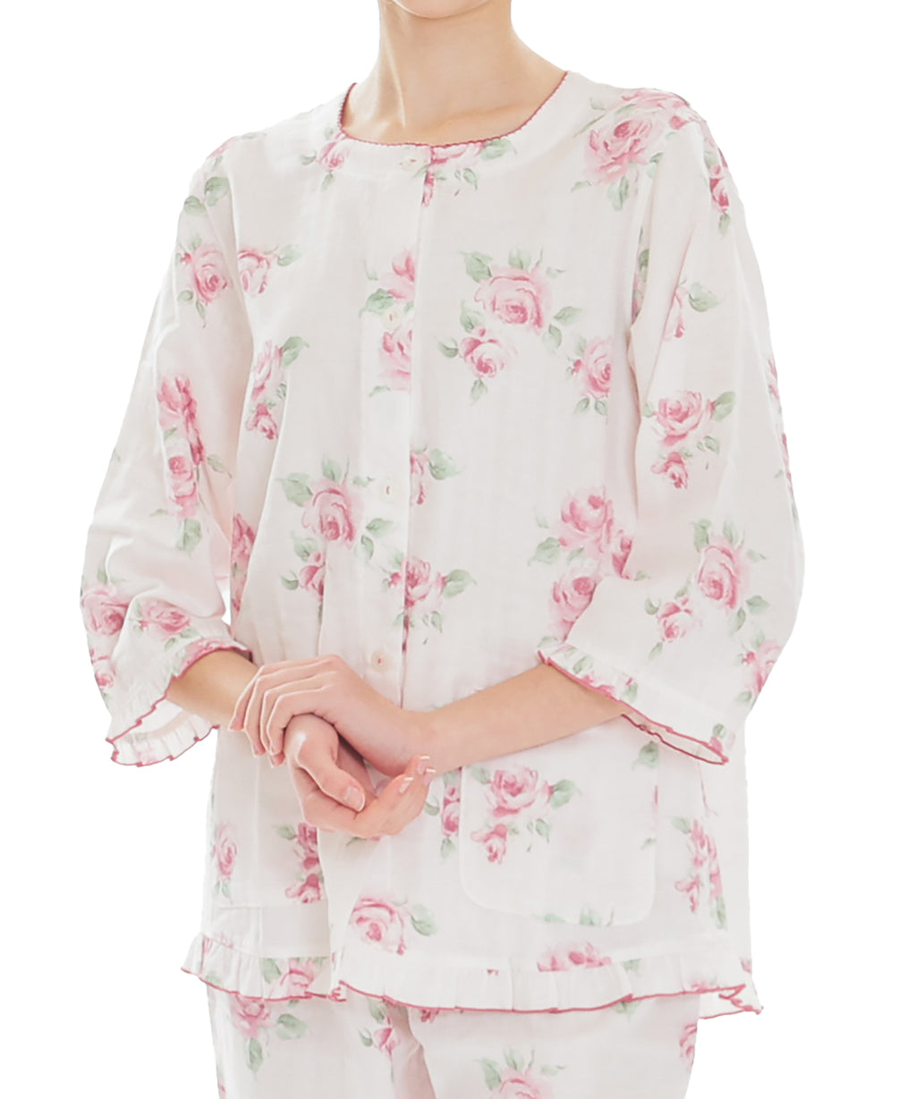 ナルエー Narue ダブルガーゼローズ7分袖パジャマ