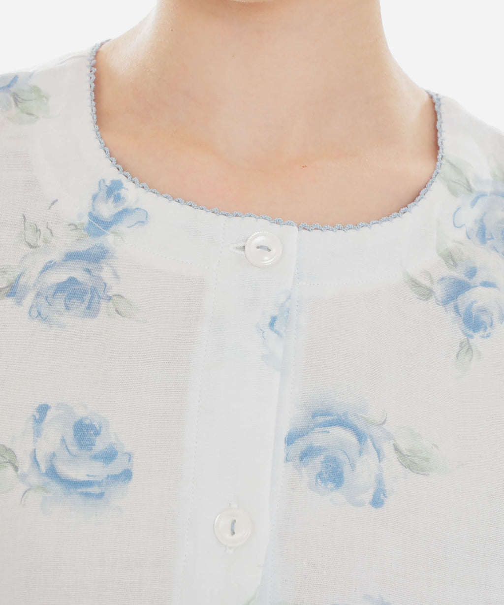 ローズ柄をより上品に引き立てるフェミニンな一着。
