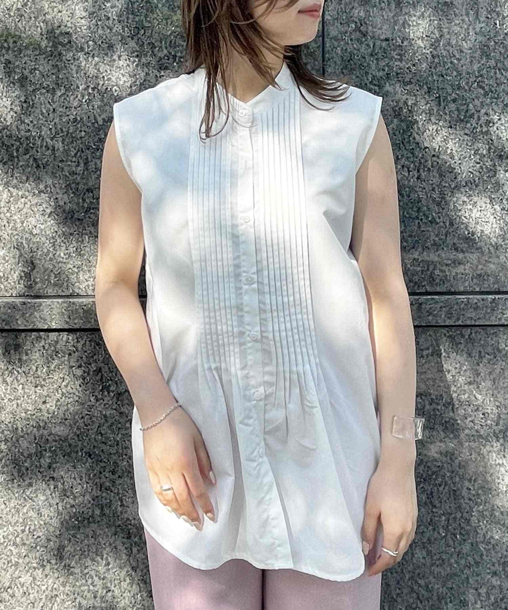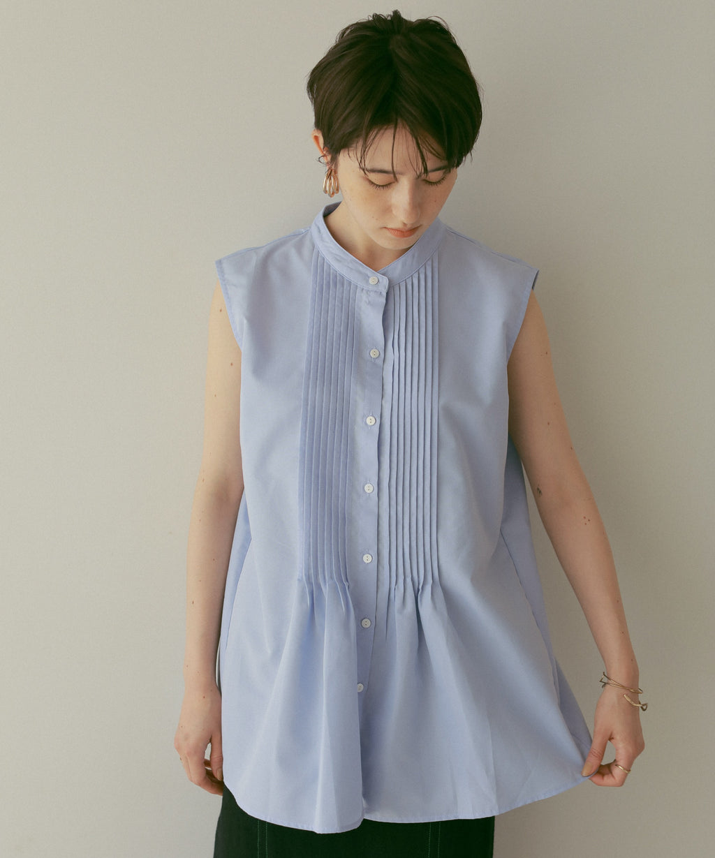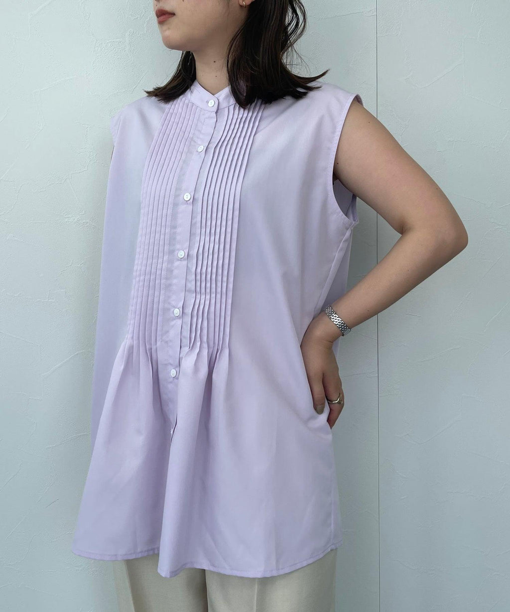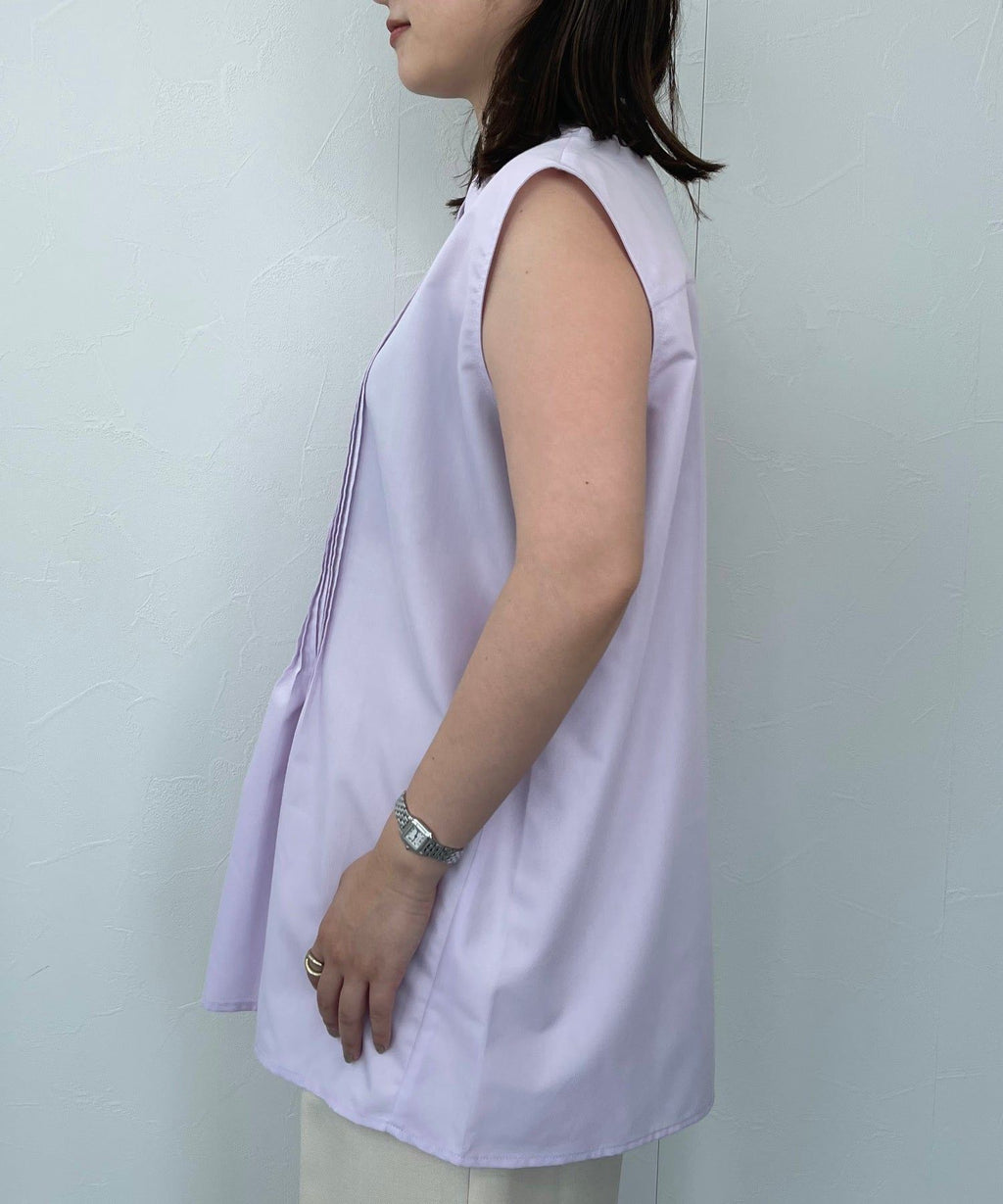 上品なピンタックデザインがポイントのノースリーブブラウス