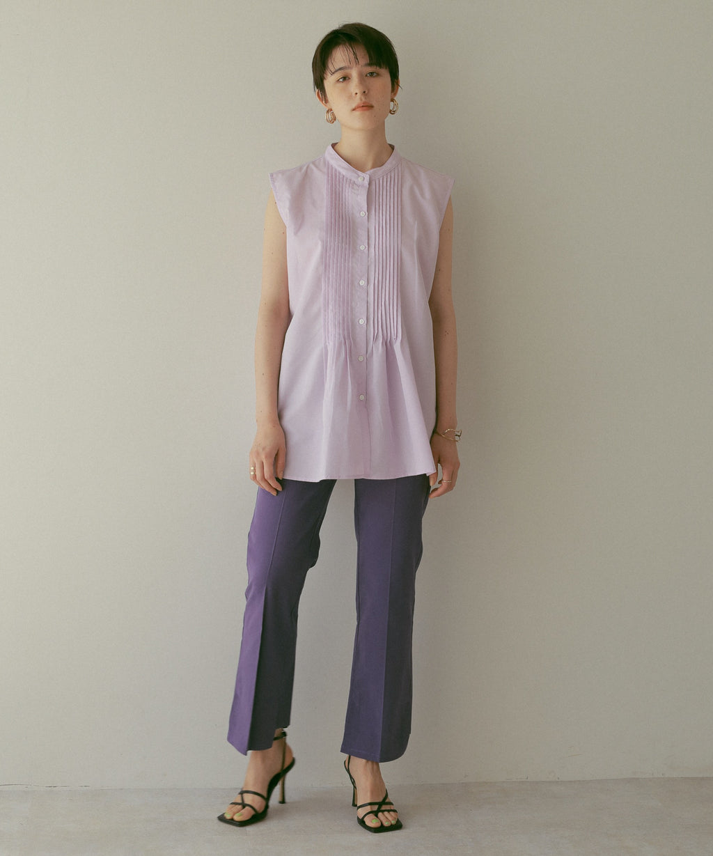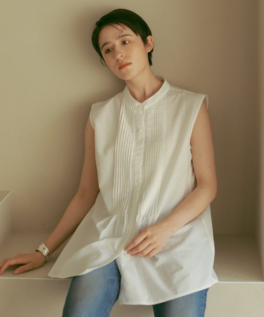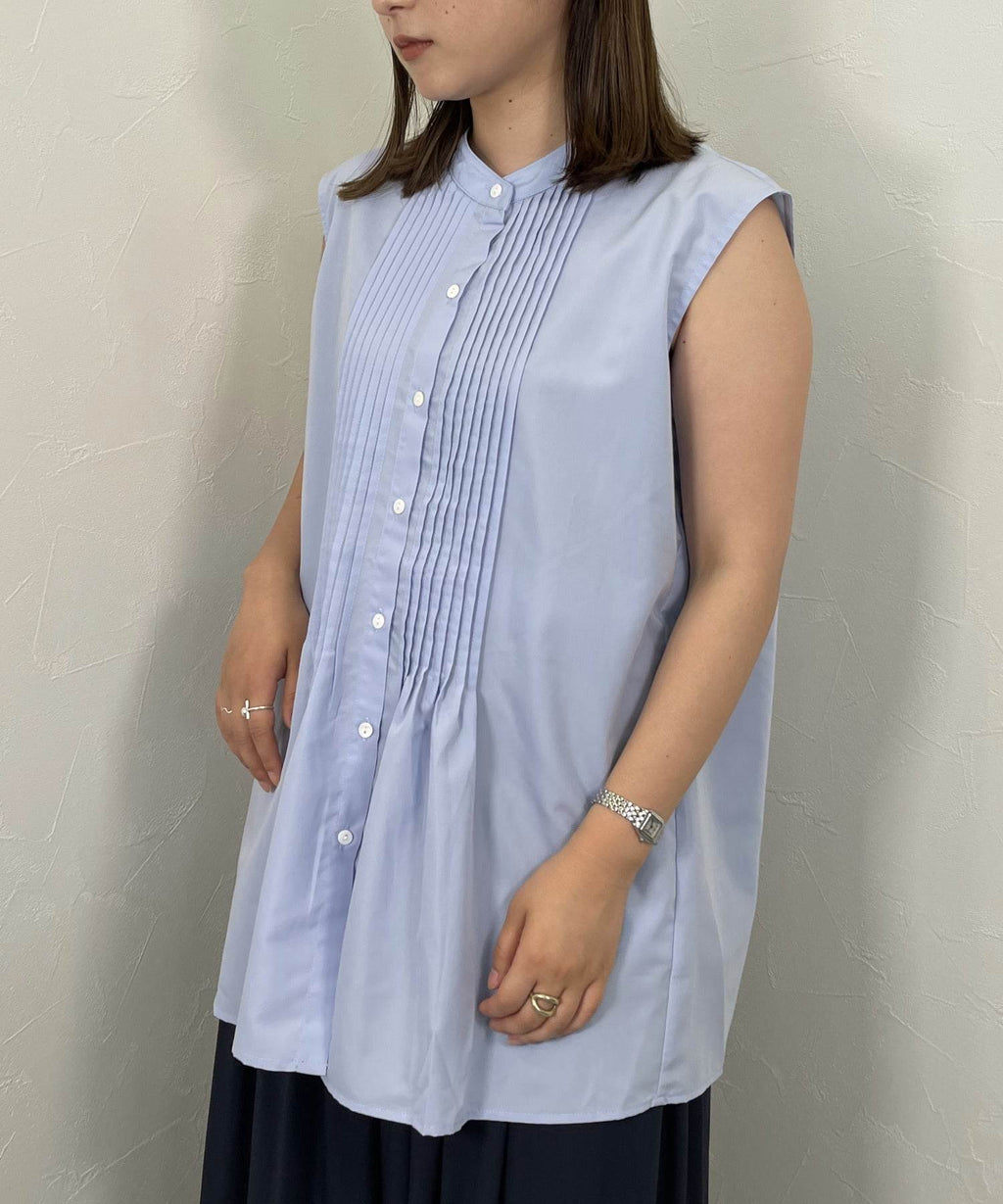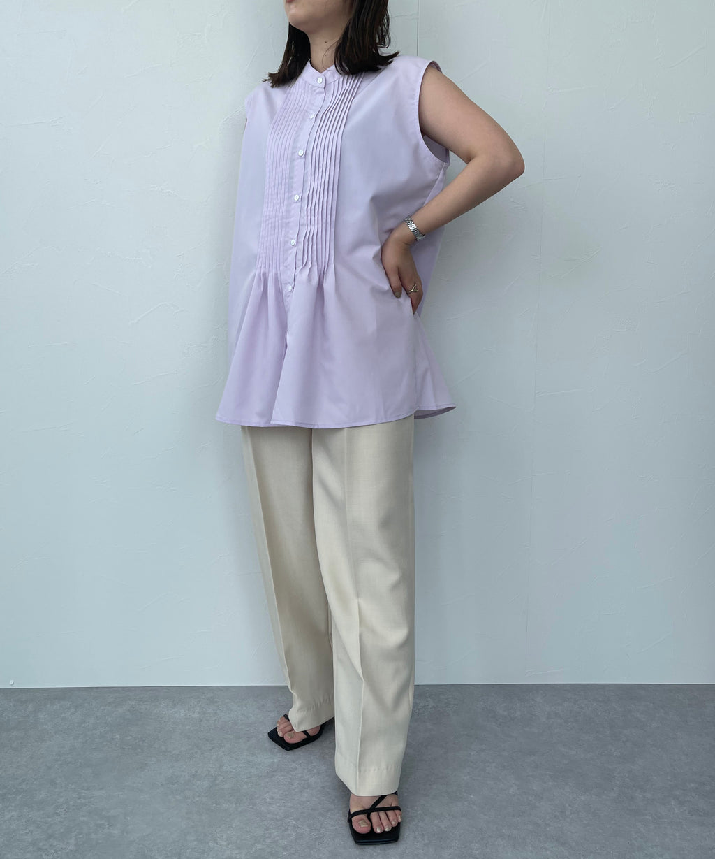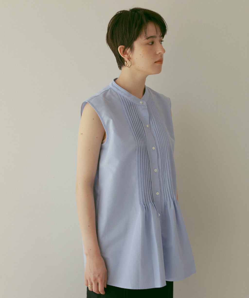 上品なピンタックデザインがポイントのノースリーブブラウス