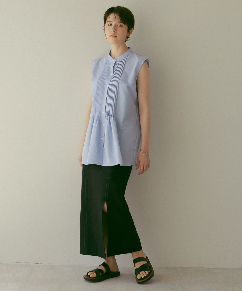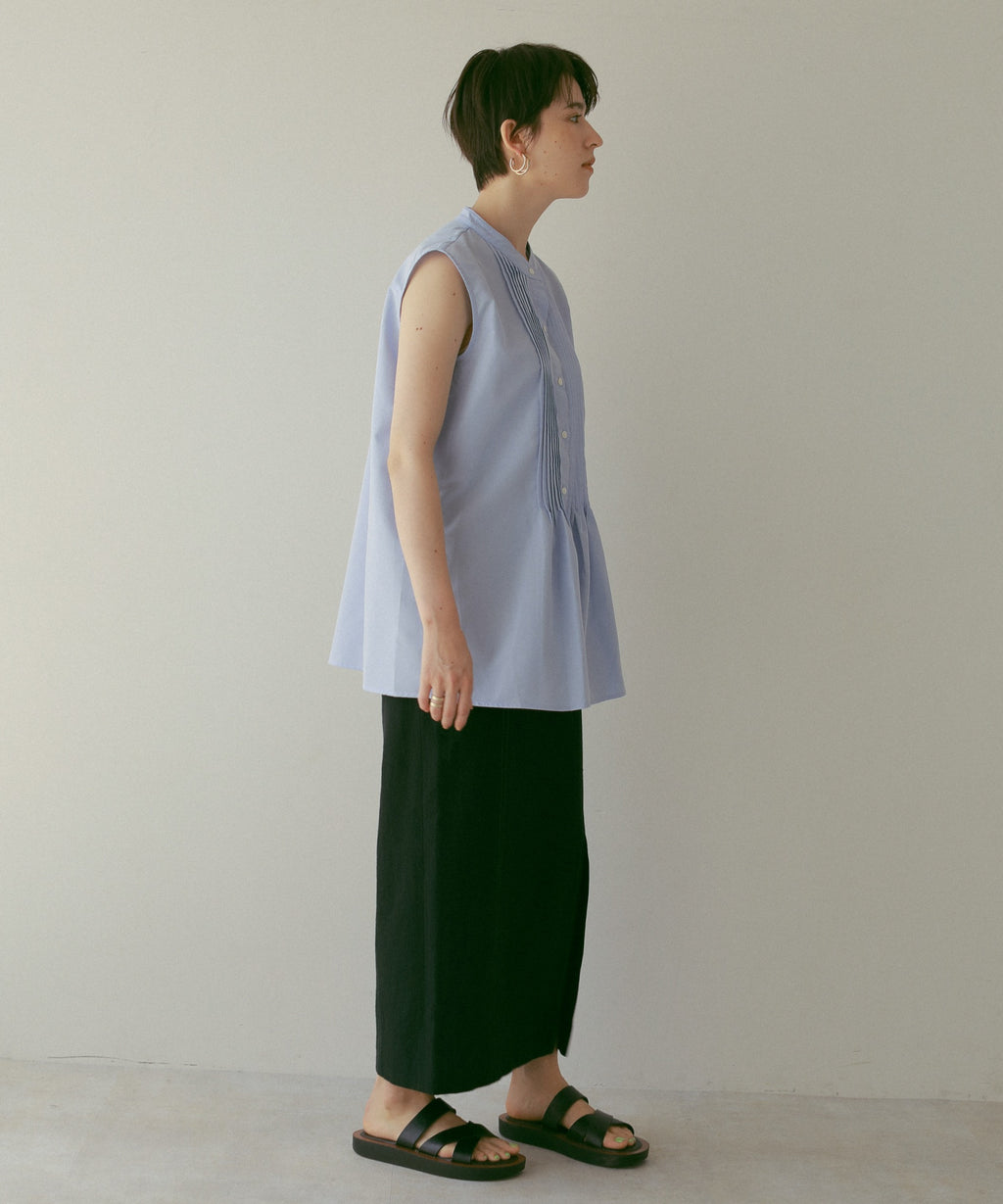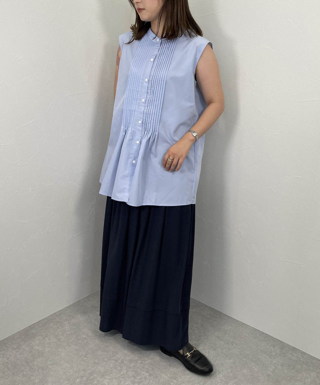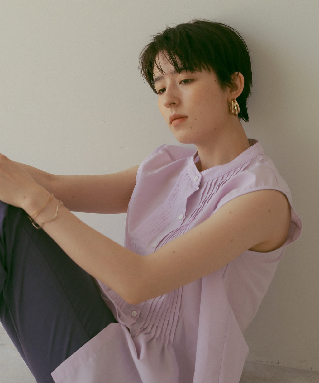 上品なピンタックデザインがポイントのノースリーブブラウス