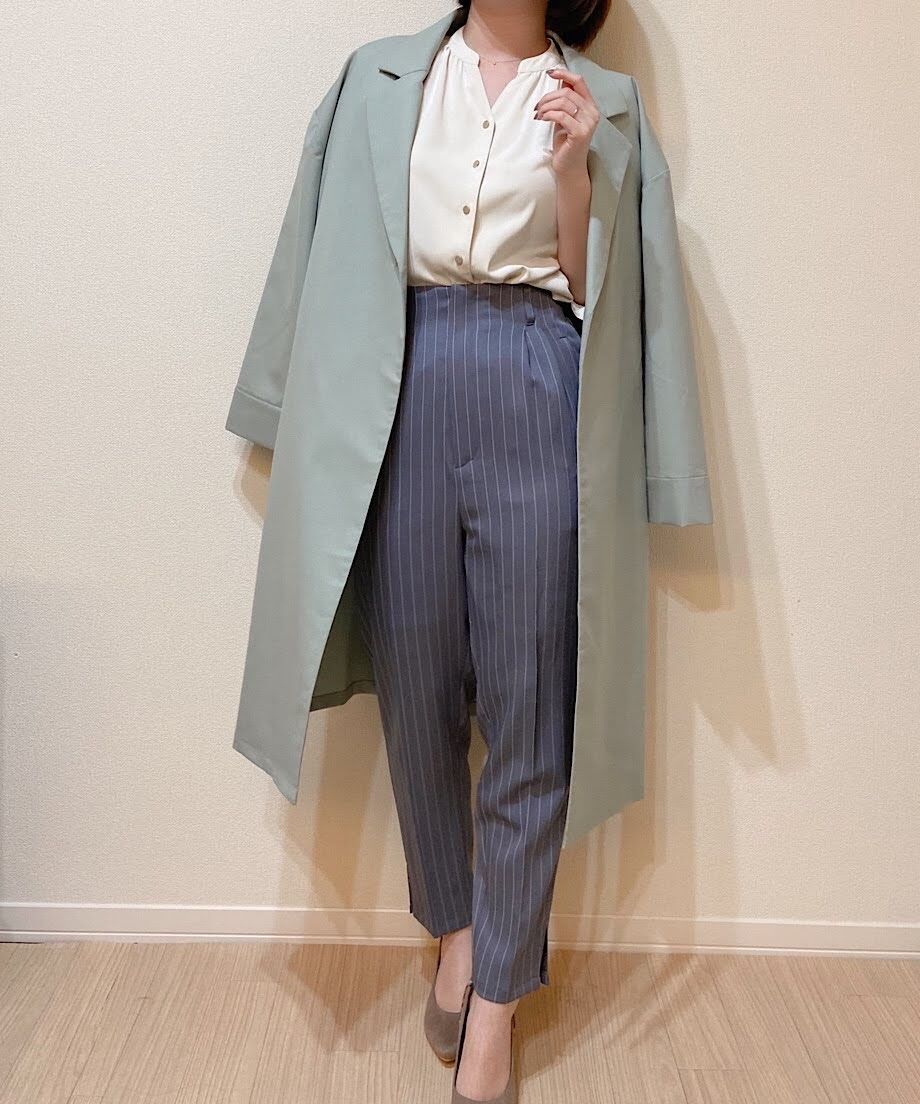 素材自体が軽いのでゆとりのあるシルエットでも重くならずに通勤時にはもちろん、