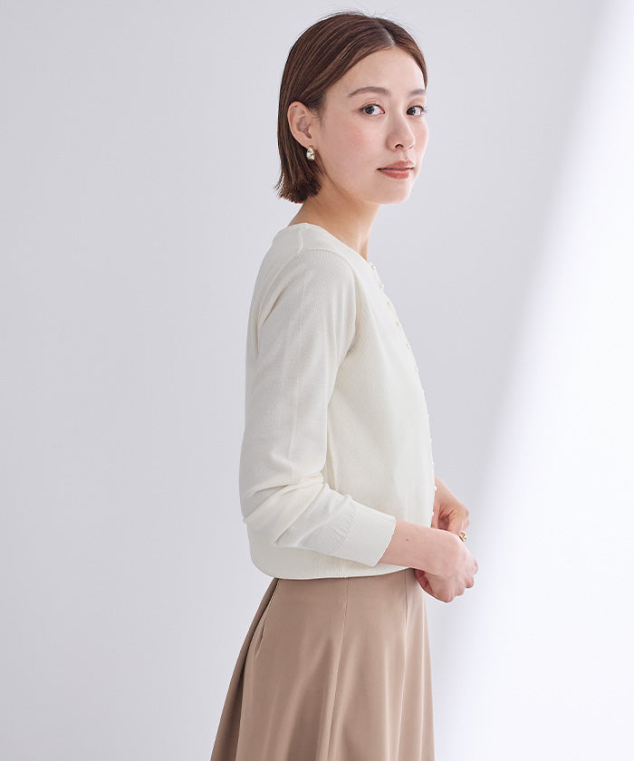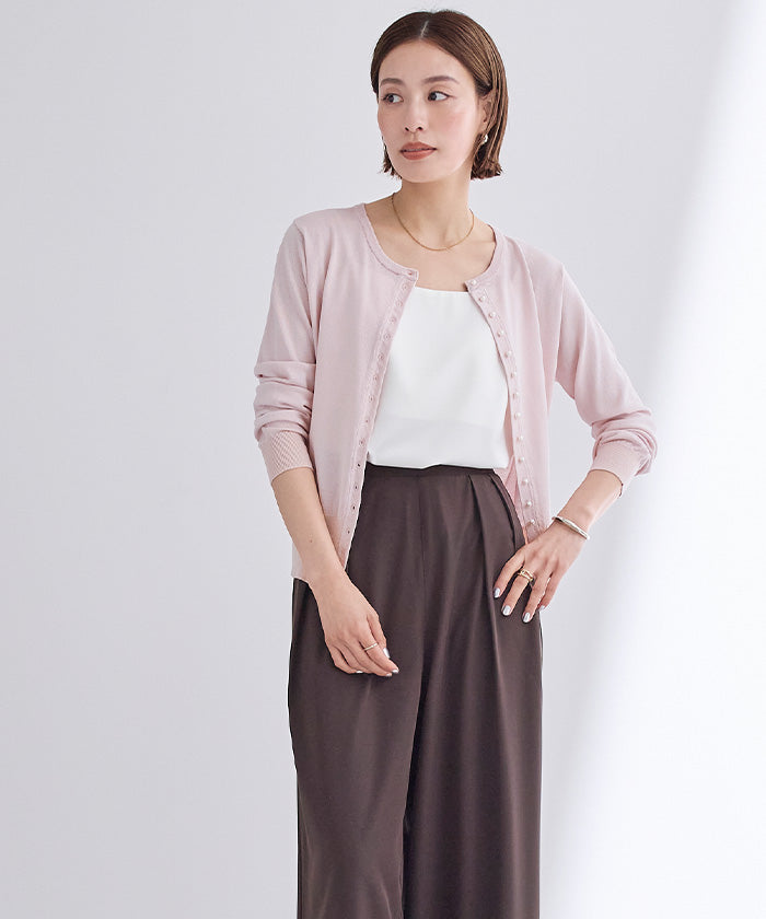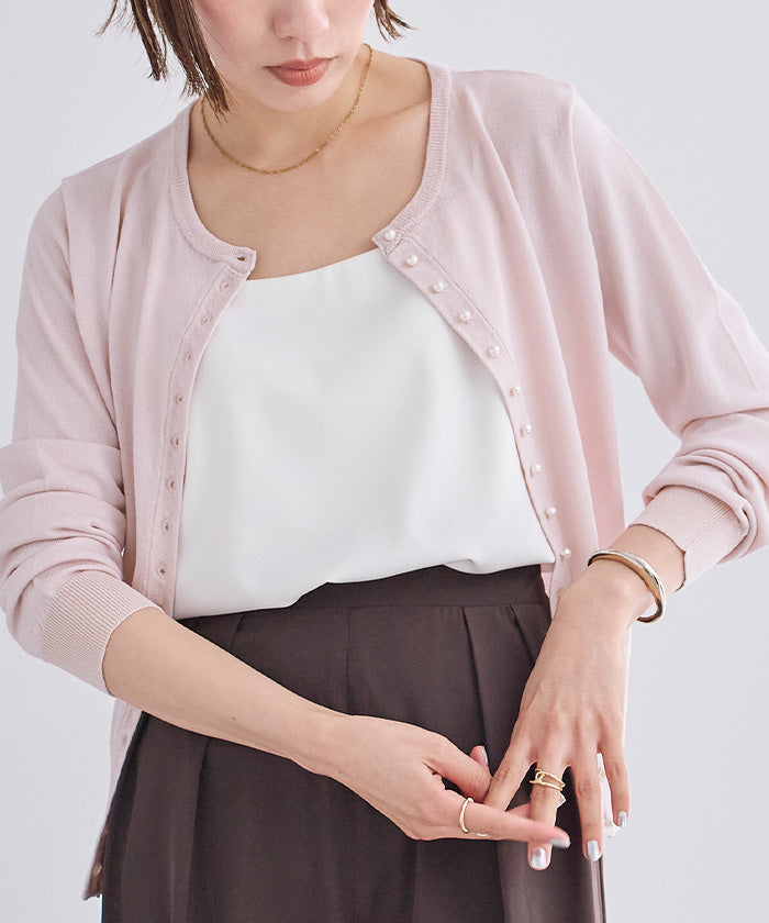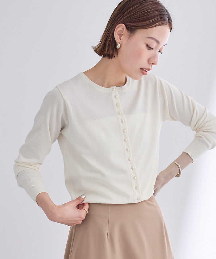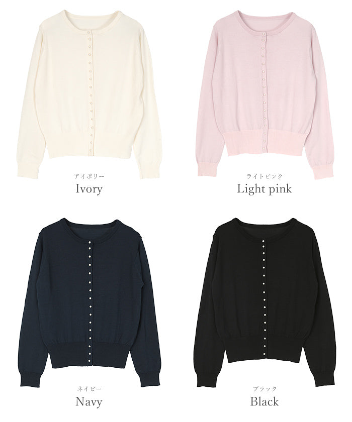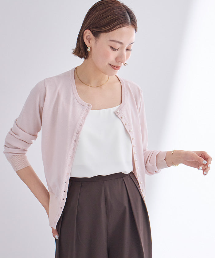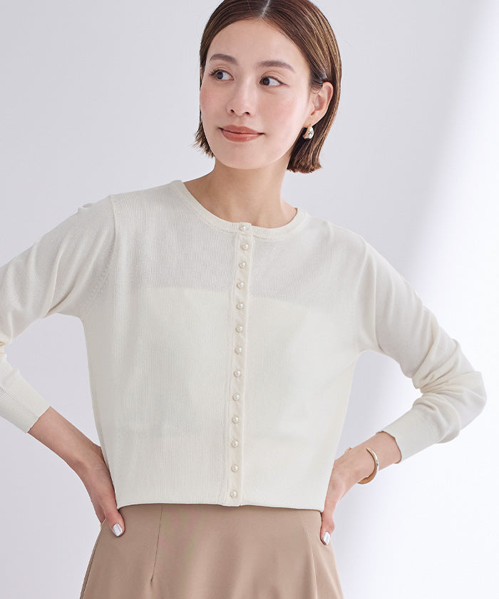 小さめのパールが上品なUVケアニットカーディガン。