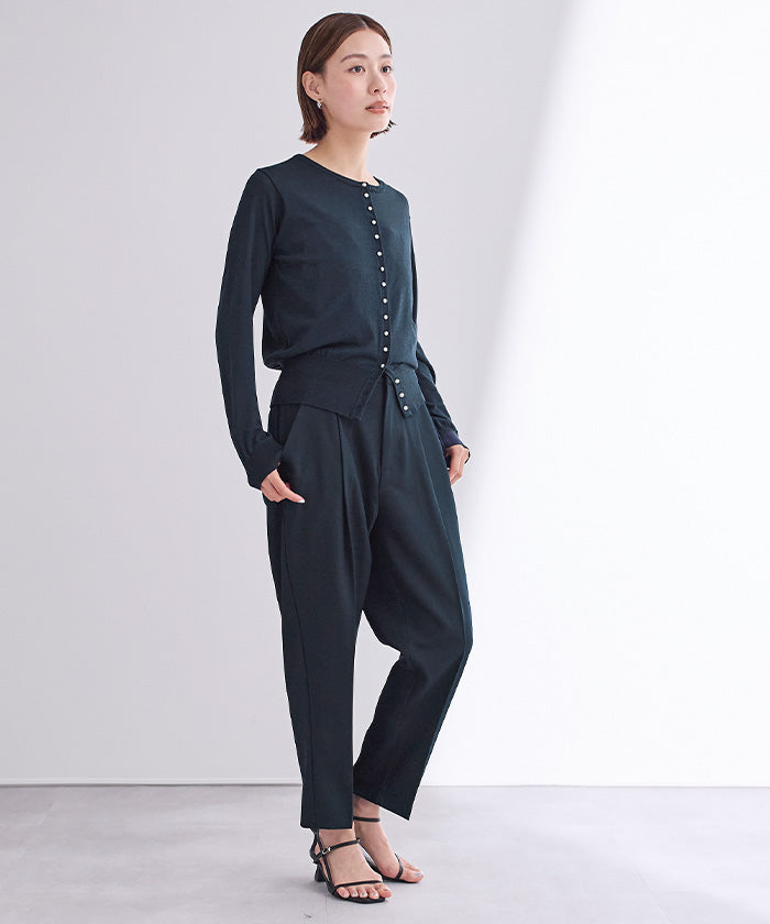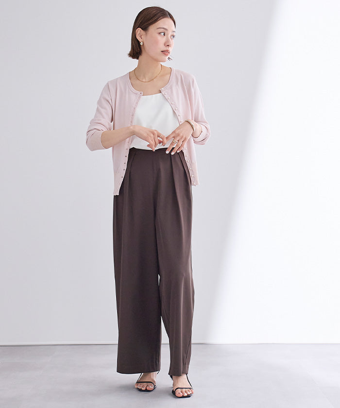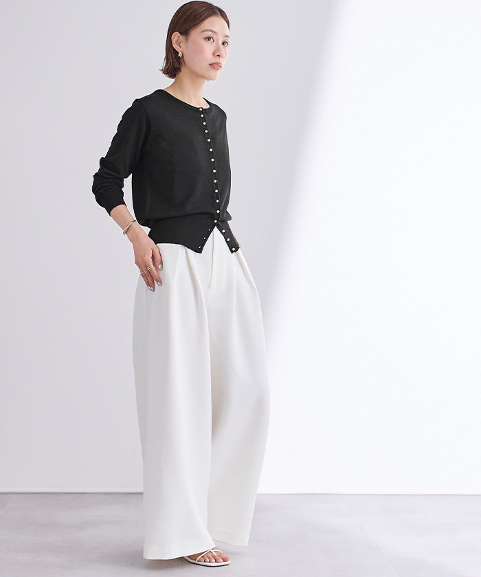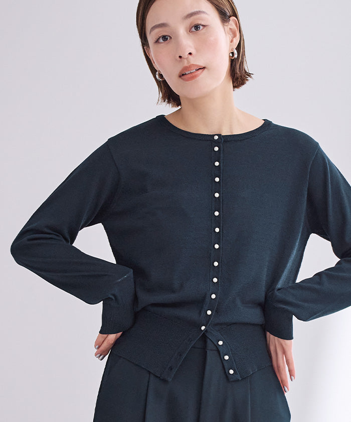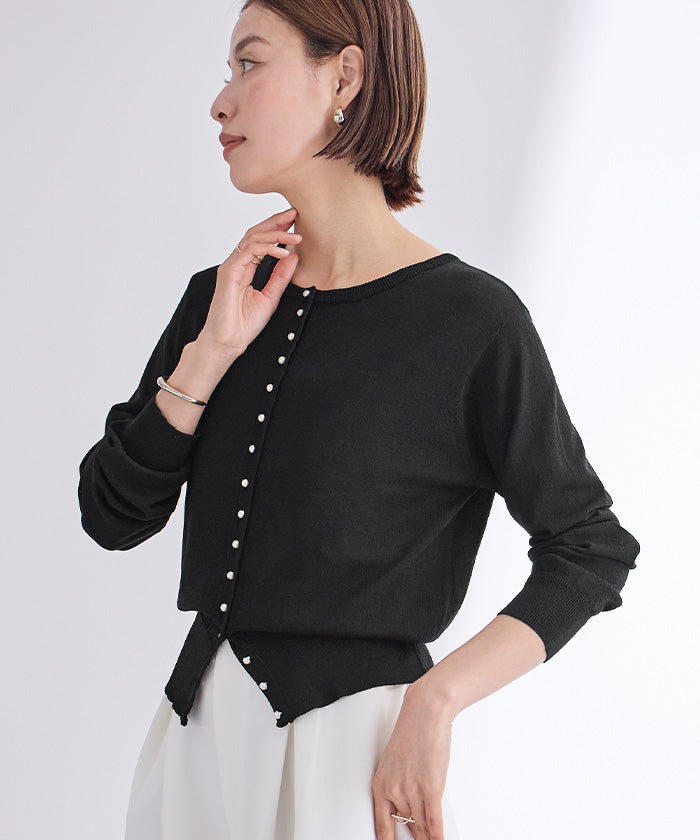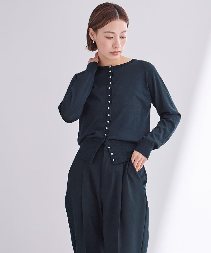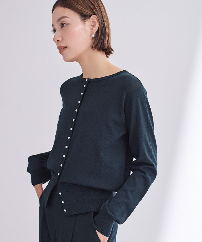小さめのパールが上品なUVケアニットカーディガン。