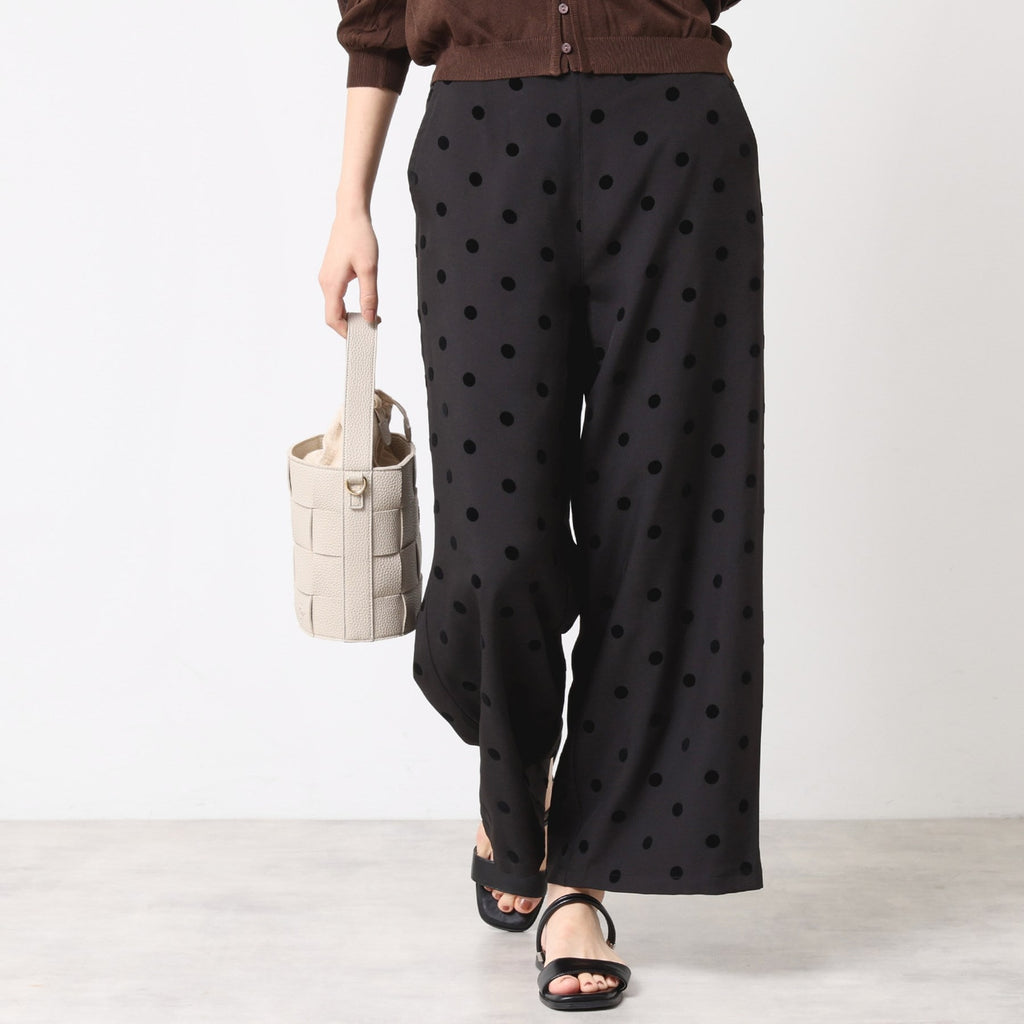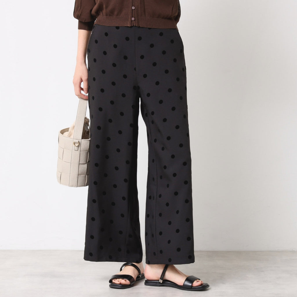 ドットをフロッキープリントした立体感あるデザインがポイントのパンツです。