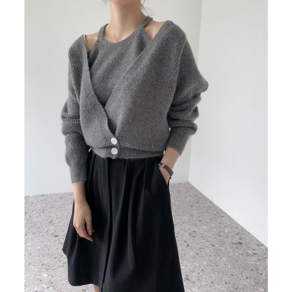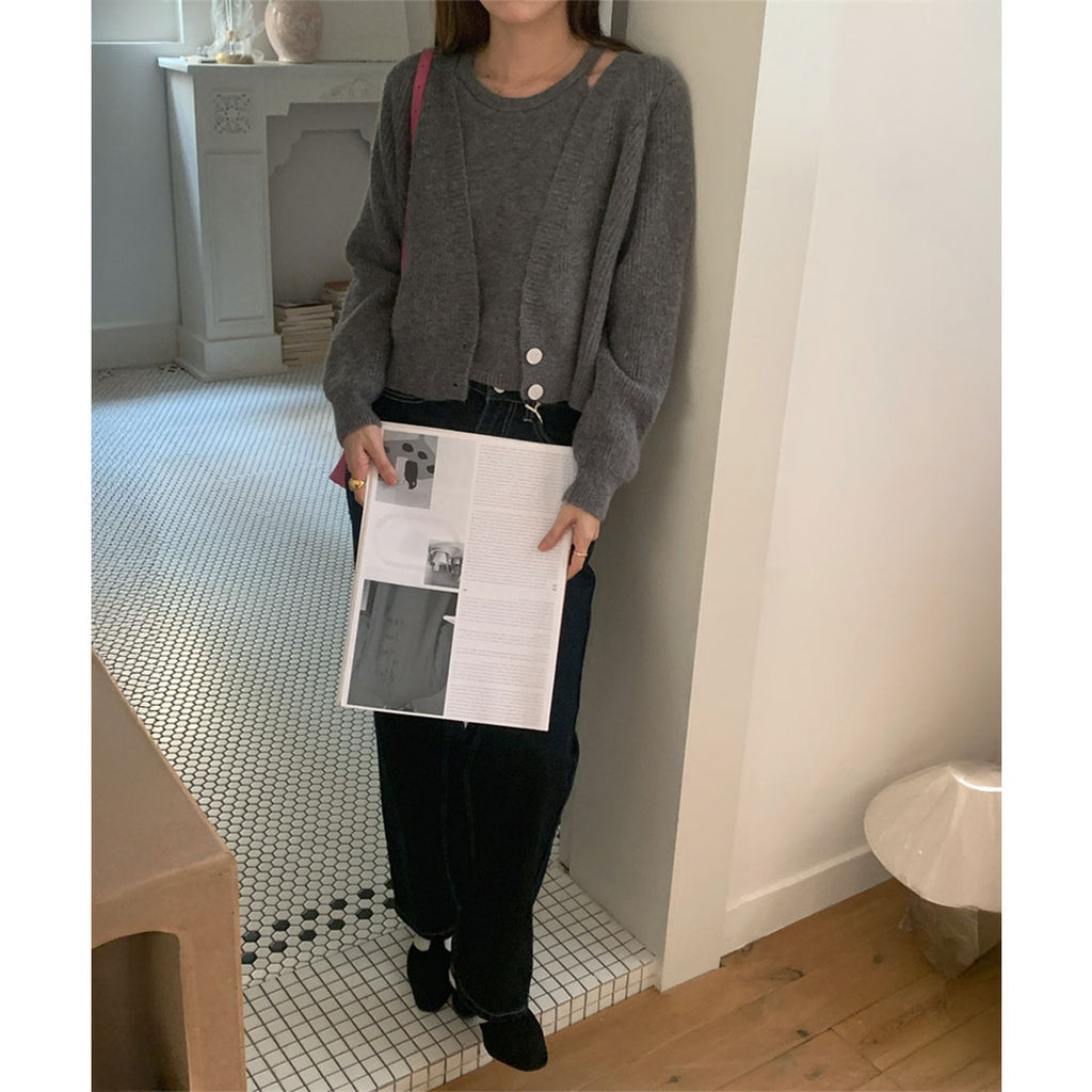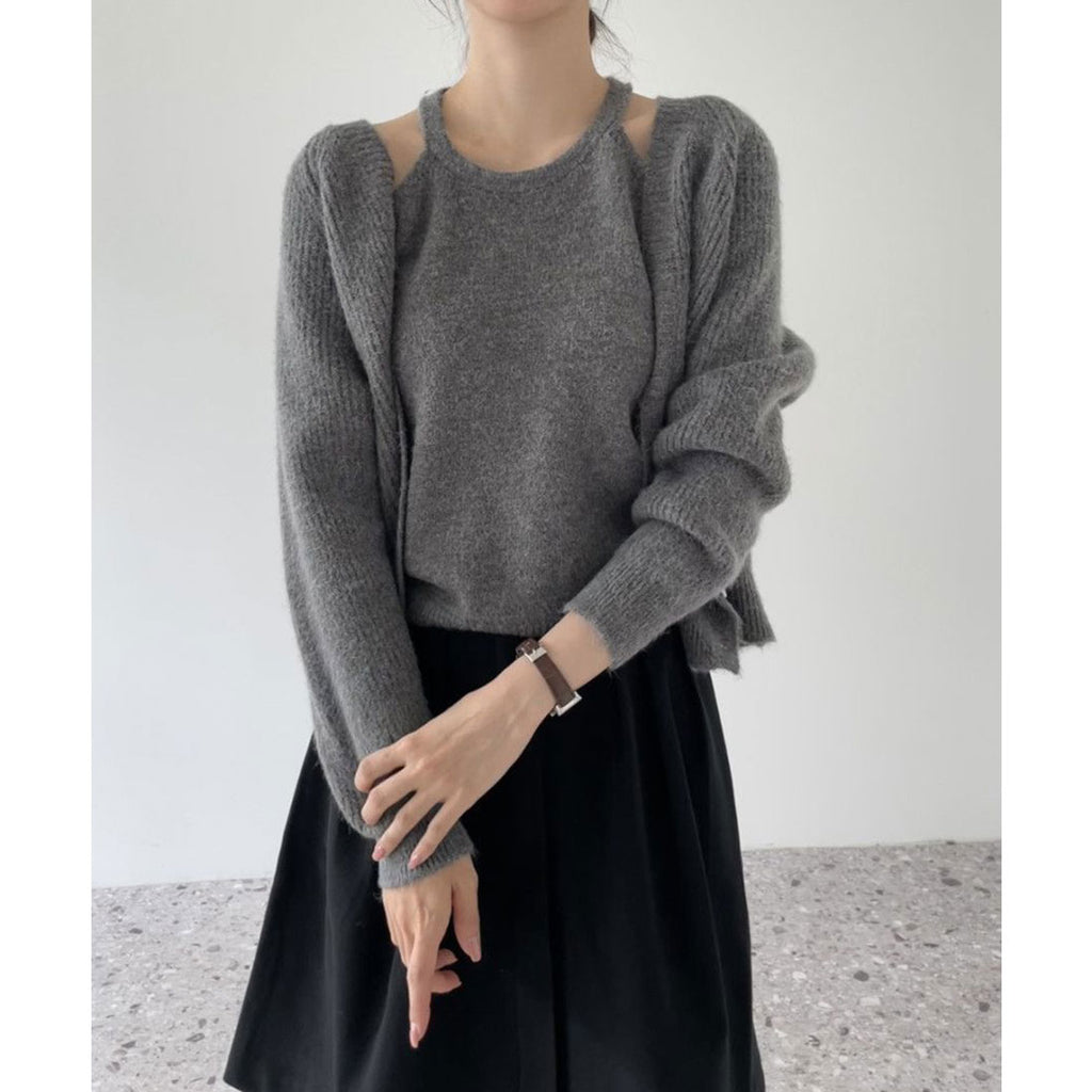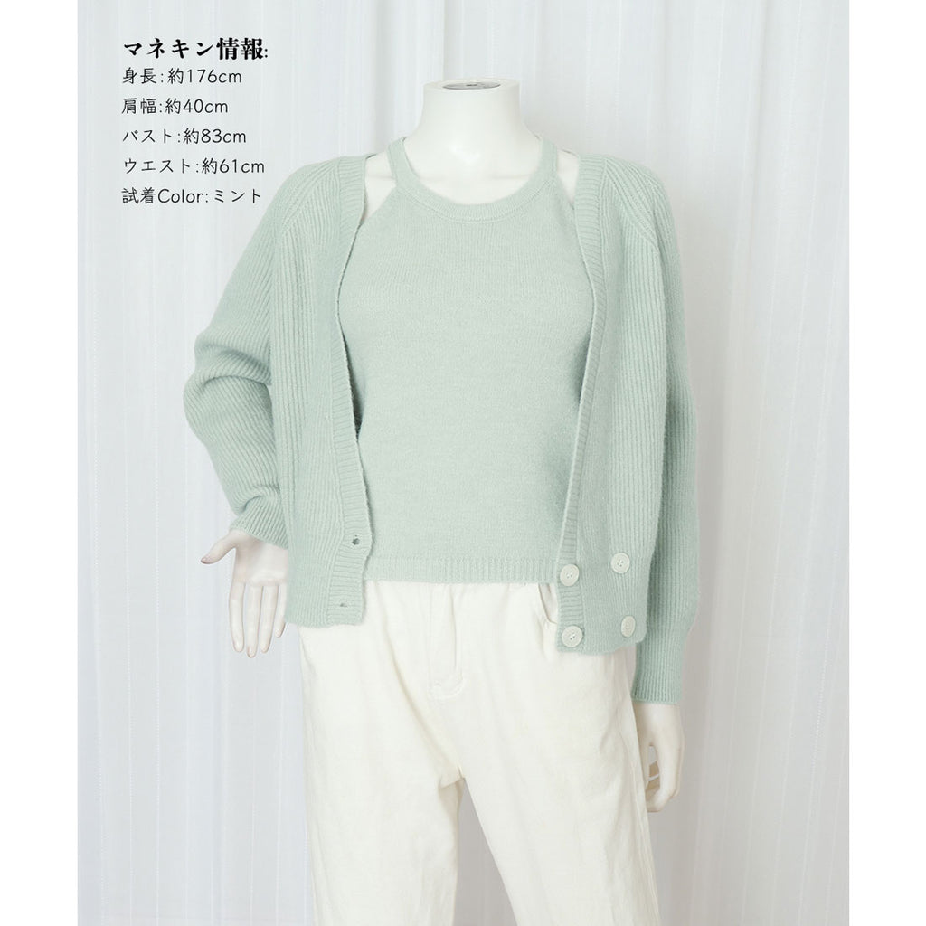 柔らかな風合いが魅力のカーディガンとニットキャミソールのセットアイテム。