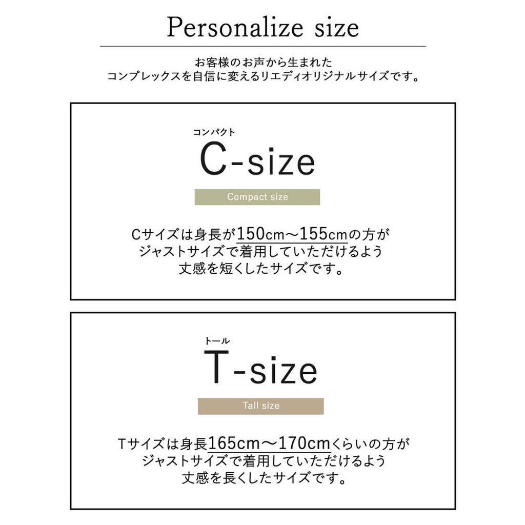 身長150~155cmくらいの方がバランスよく着ていただける丈感のリエディオリジナルサイズです。