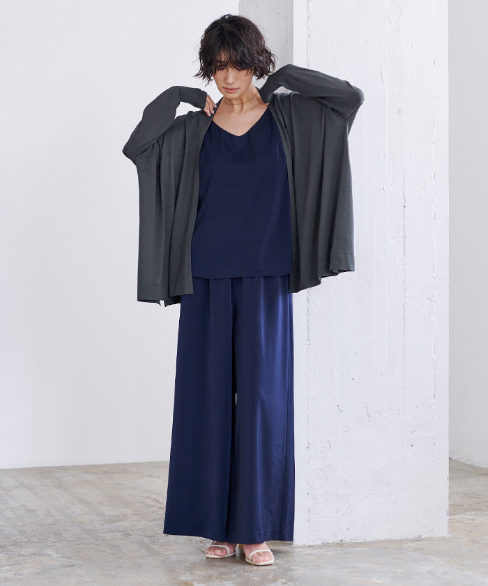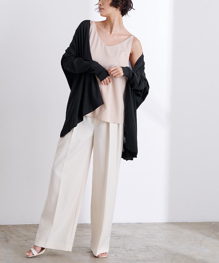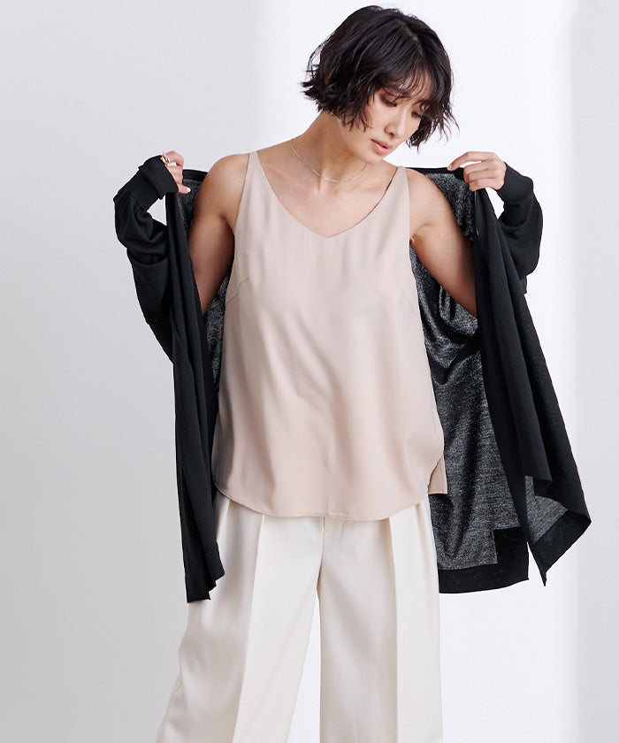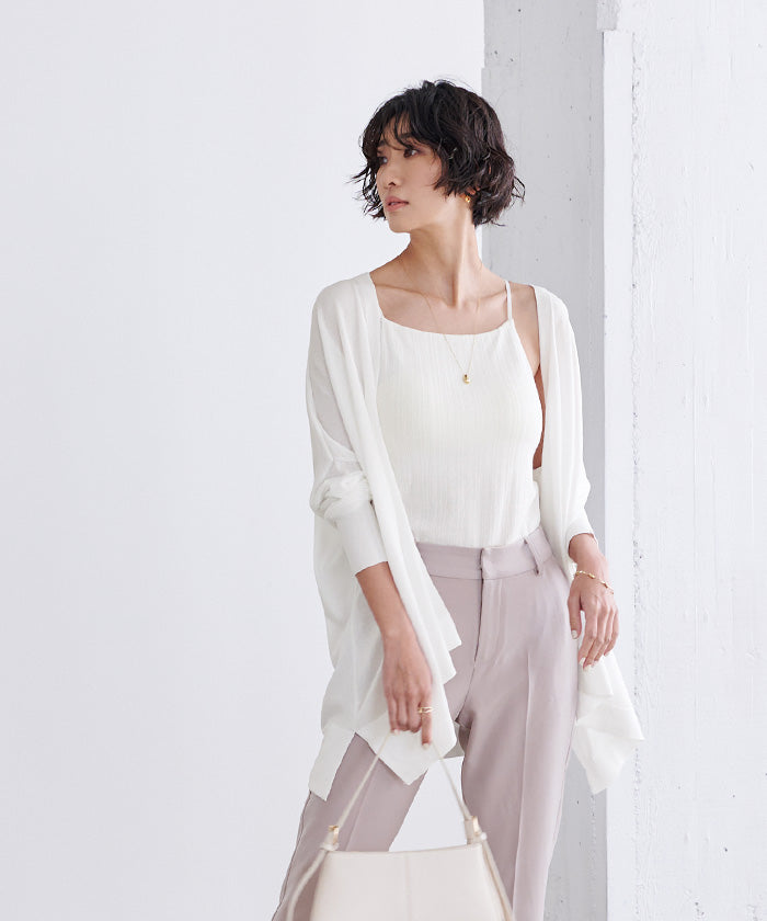パンツやオールインワンに合わせやすく、トップスはタンクトップやキャミソールの上から羽織るのが涼し気でお勧めです。