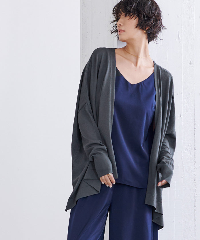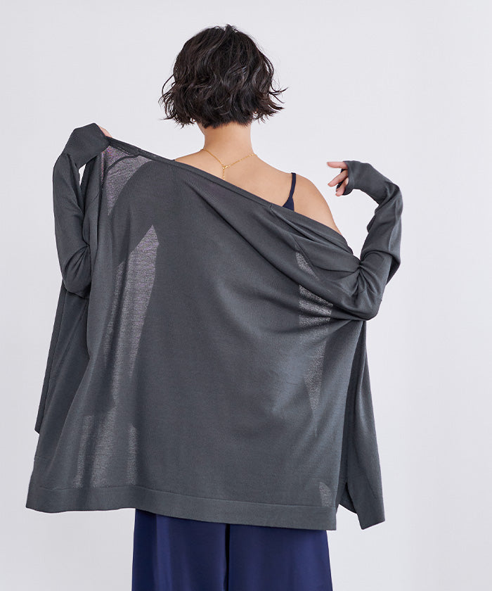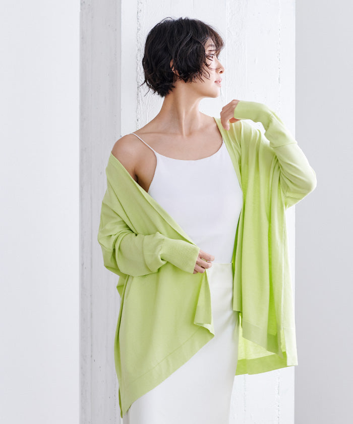 UVケアをしながらオシャレを楽しめるイレギュラーヘムニットカーディガン。