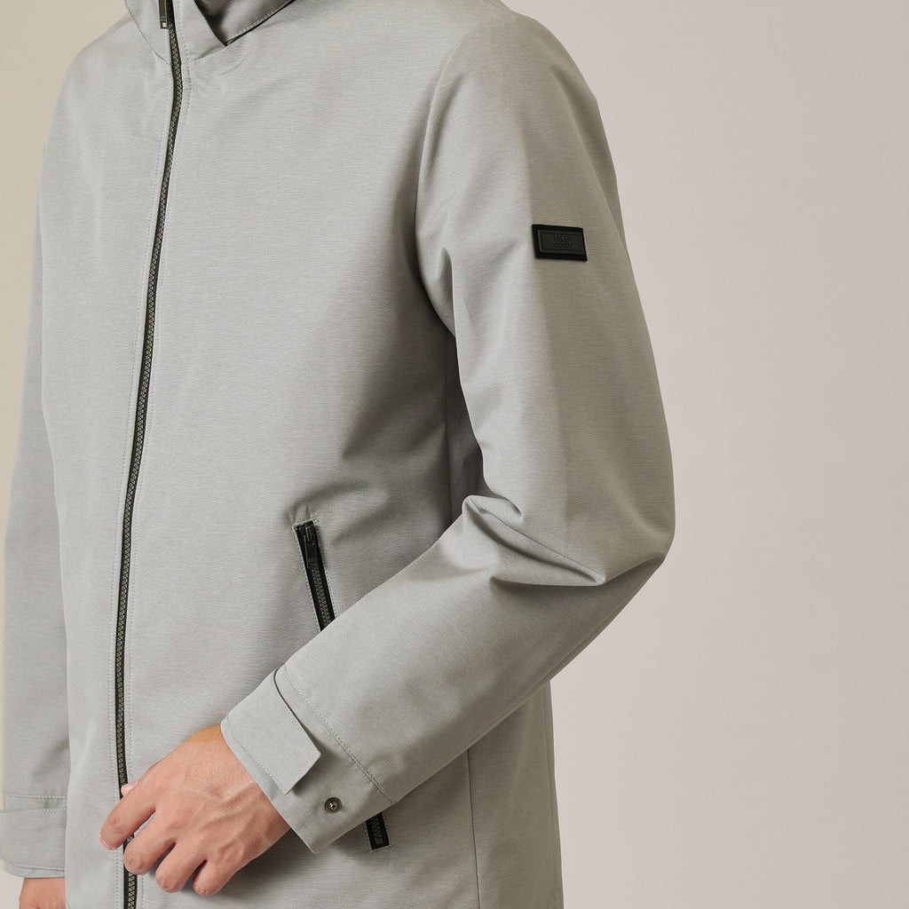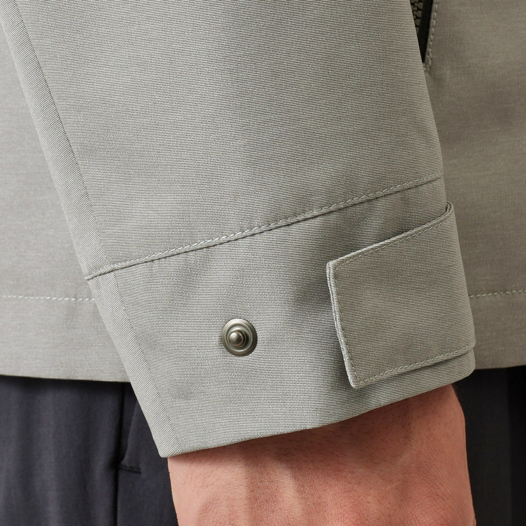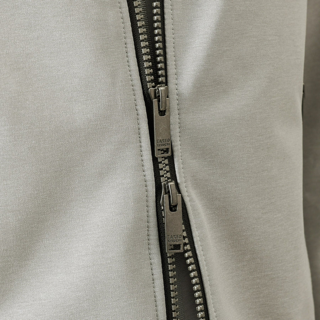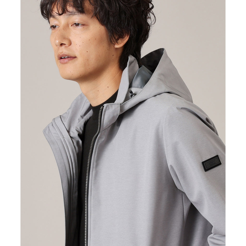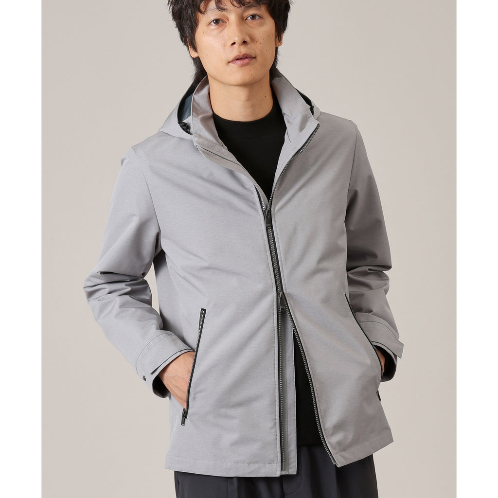特殊染めによる特徴的なメランジ感のポリエステル素材に撥水加工を施したオリジナルファブリックを使用したフードの着脱が可能なブルゾンです。