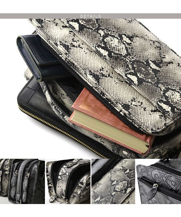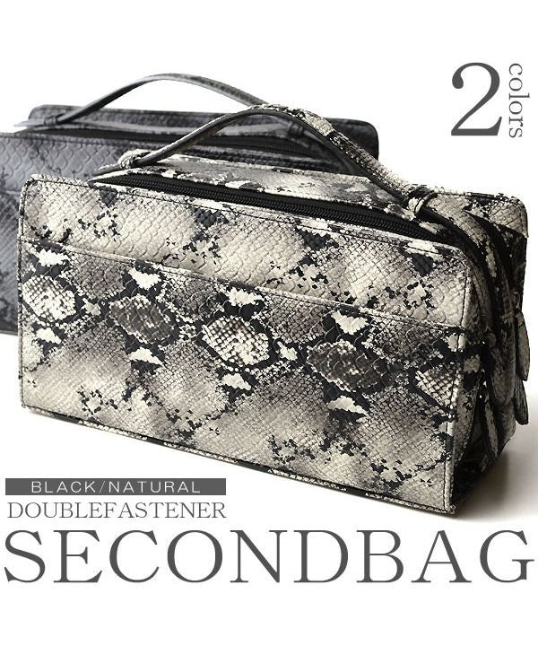 カッズセレクト KAZZU SELECT セカンドバッグ メンズ ハンドバッグ 大容量 ダブルファスナー 軽量 バック パイソン柄 蛇革風 2042H