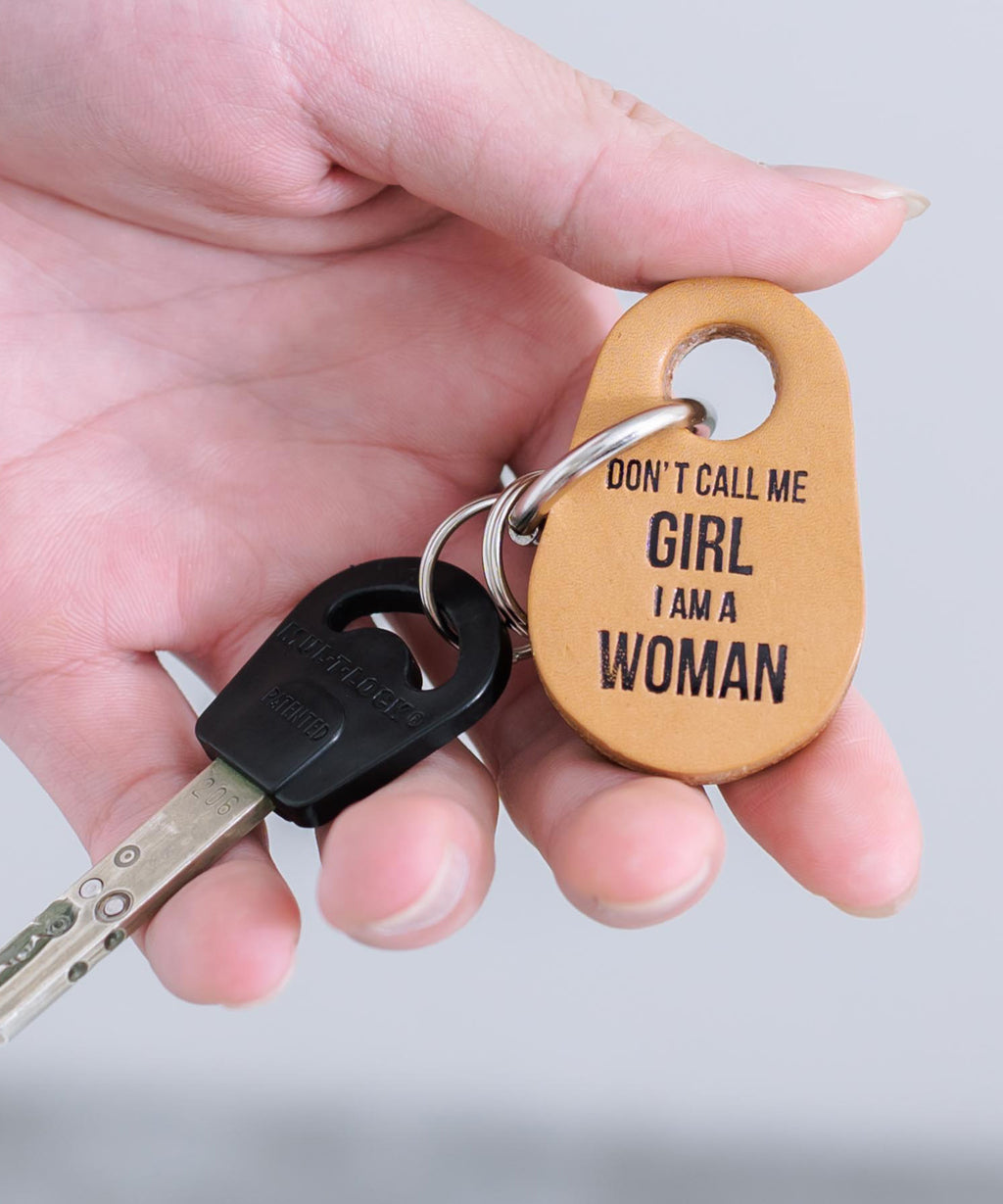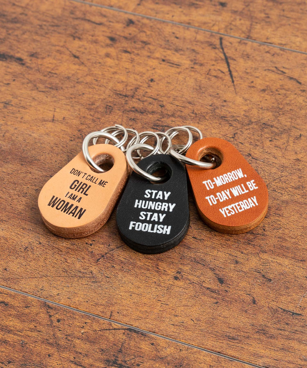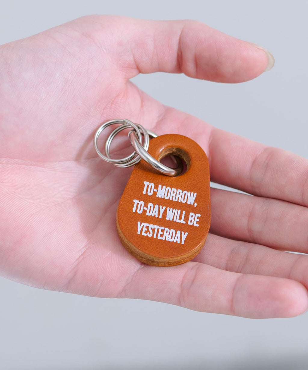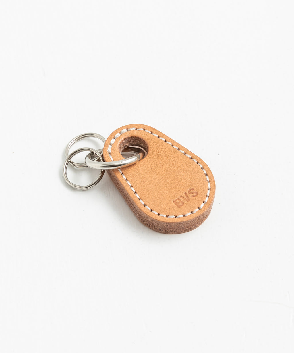 厚口の牛革(栃木レザーベルト用)を2枚合わせ、カウタグ型のキーチャームです。