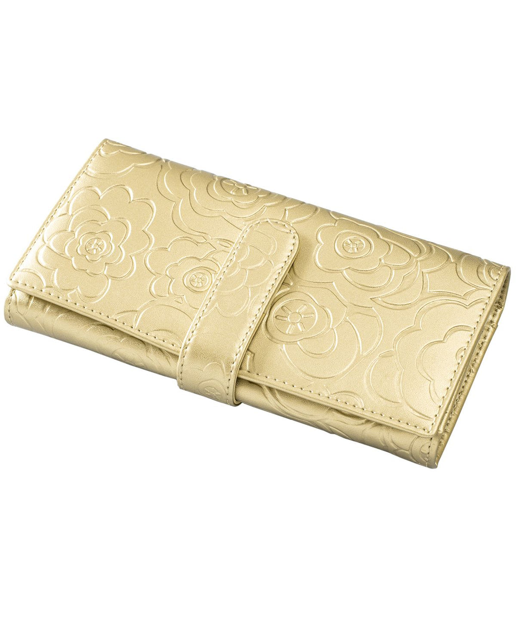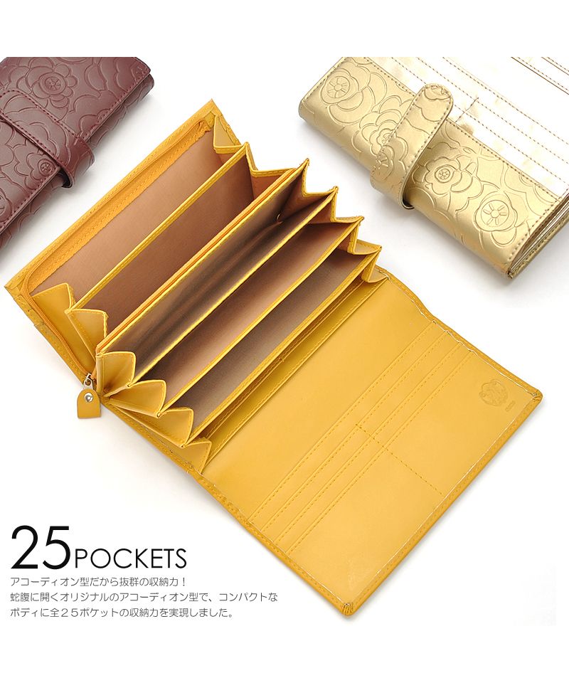 財布 さいふ サイフ 派手 アコーディオン ダブルスナップベルト 旅行 仕事 経理用 カード 花柄 型押し