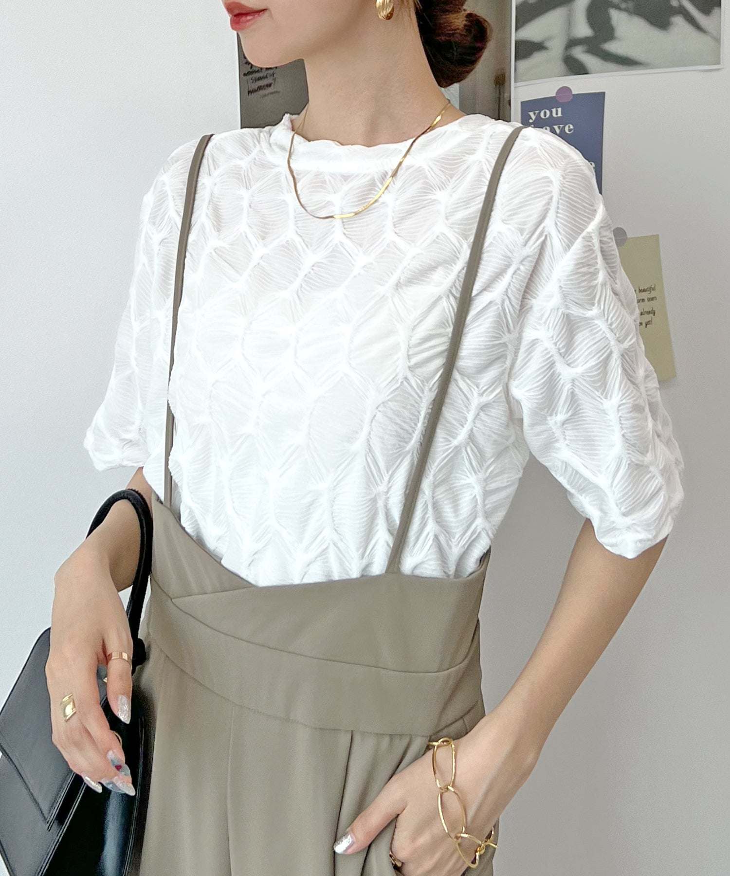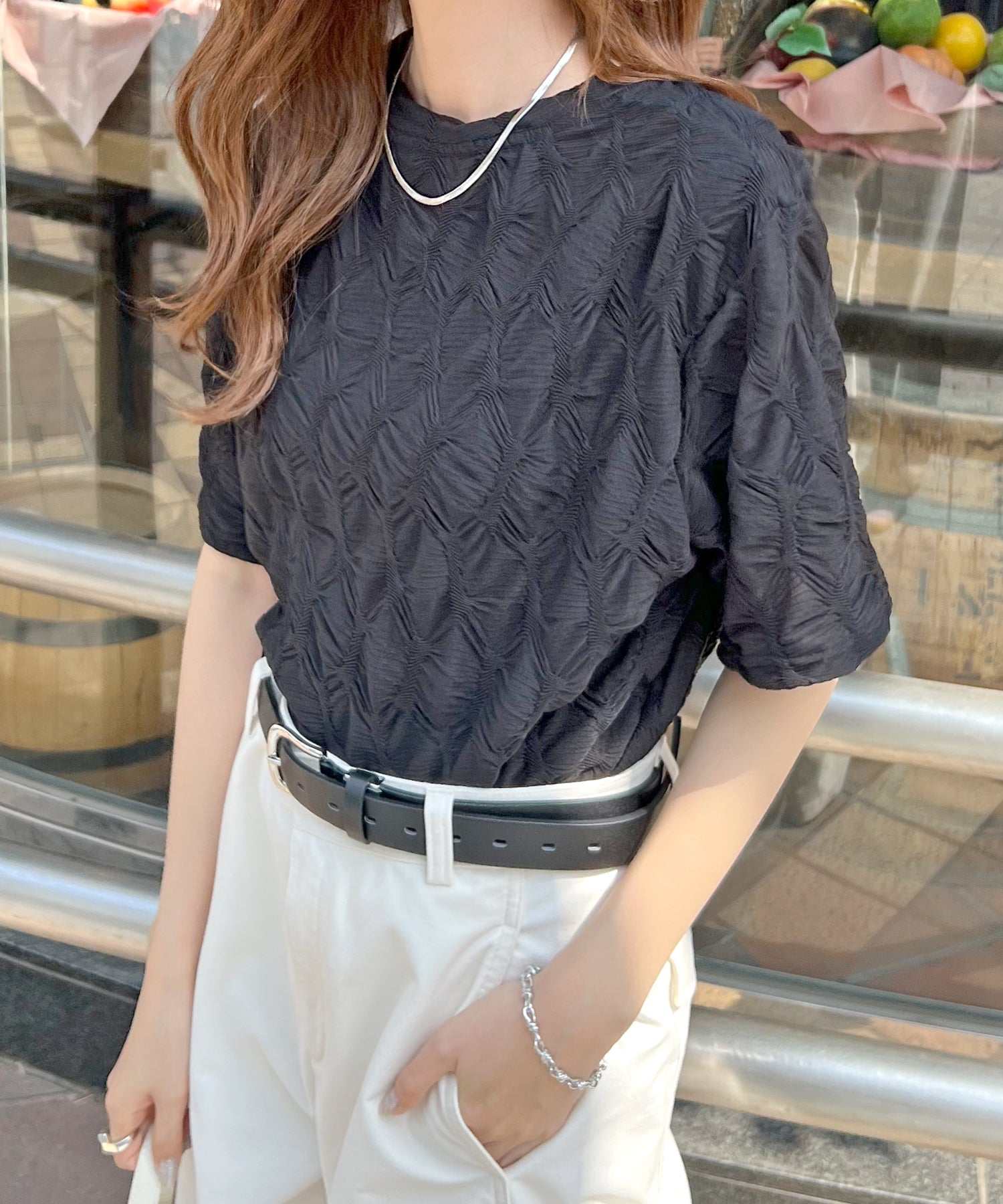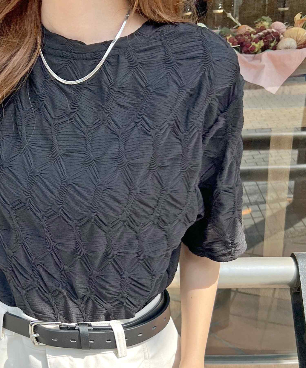 ふんわり軽やか♪ シアー感が魅力のシアーシャーリングエンボスTシャツ