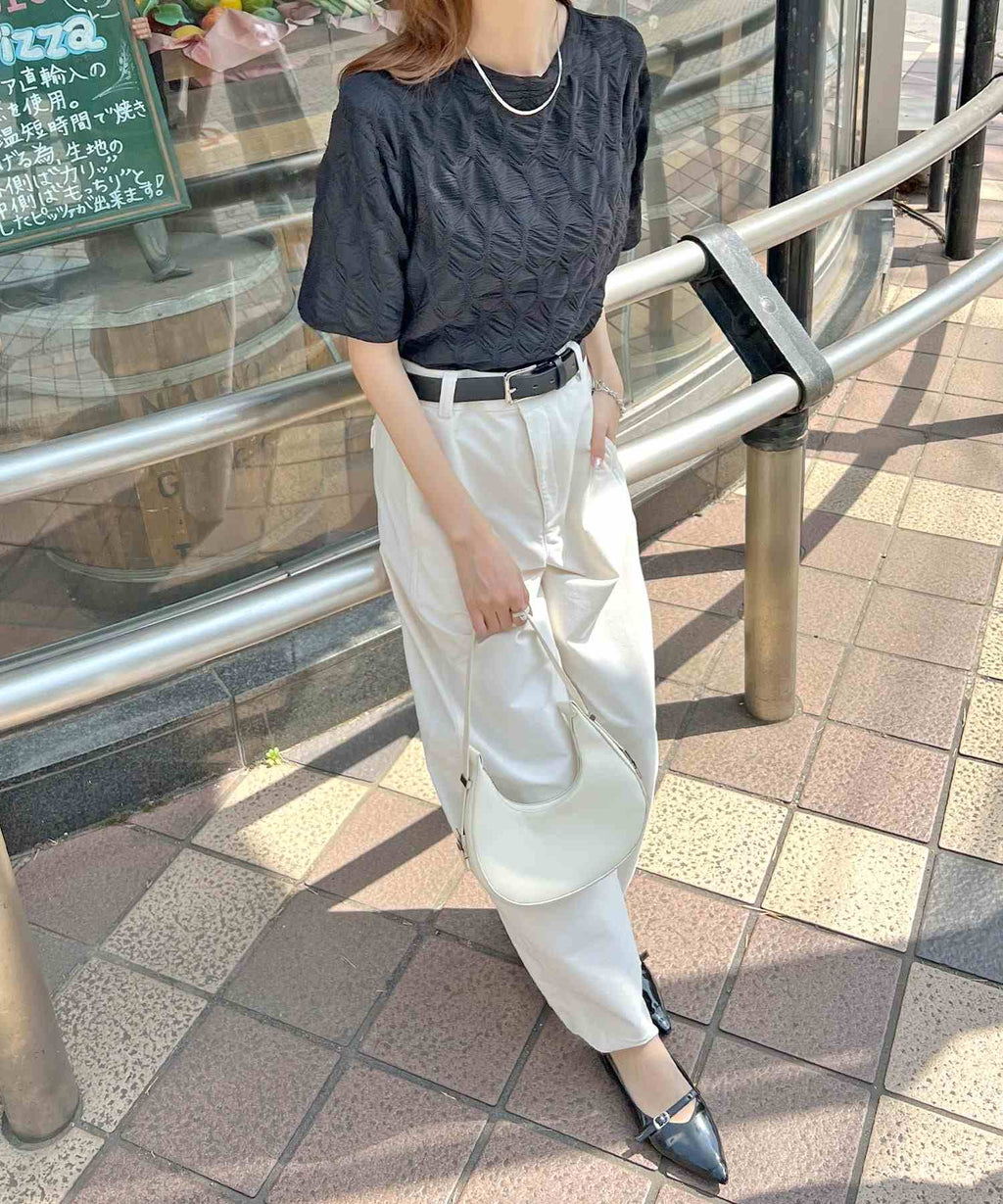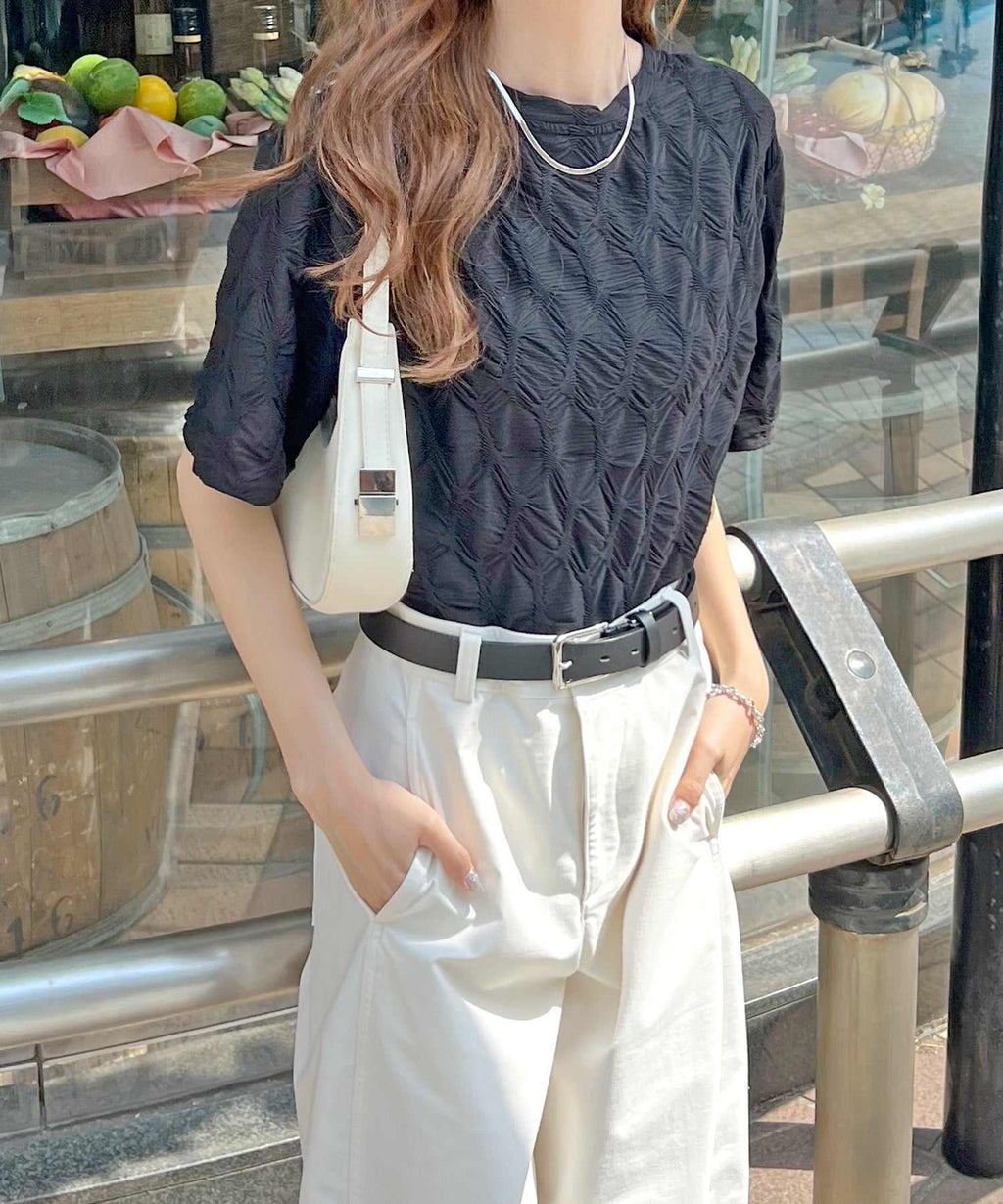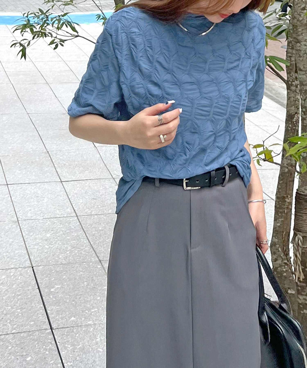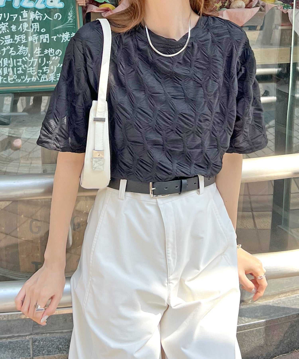 ふんわり軽やか♪ シアー感が魅力のシアーシャーリングエンボスTシャツ