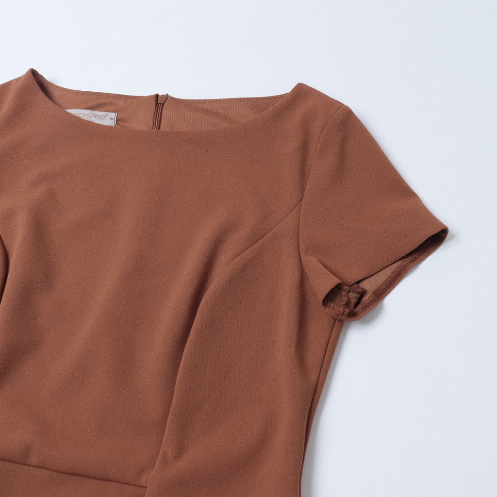 シンプルながらもエレガントなデザインのタイトワンピースです。