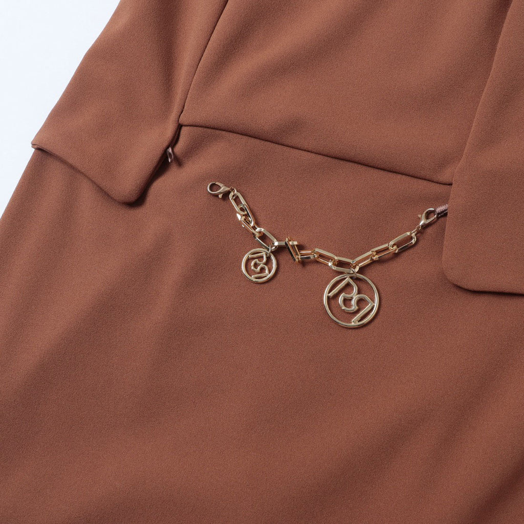 ウエスト部分にはチェーンアクセントが施され、華やかな印象を与えます。