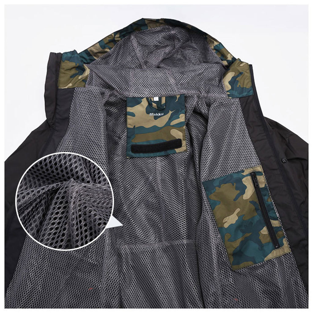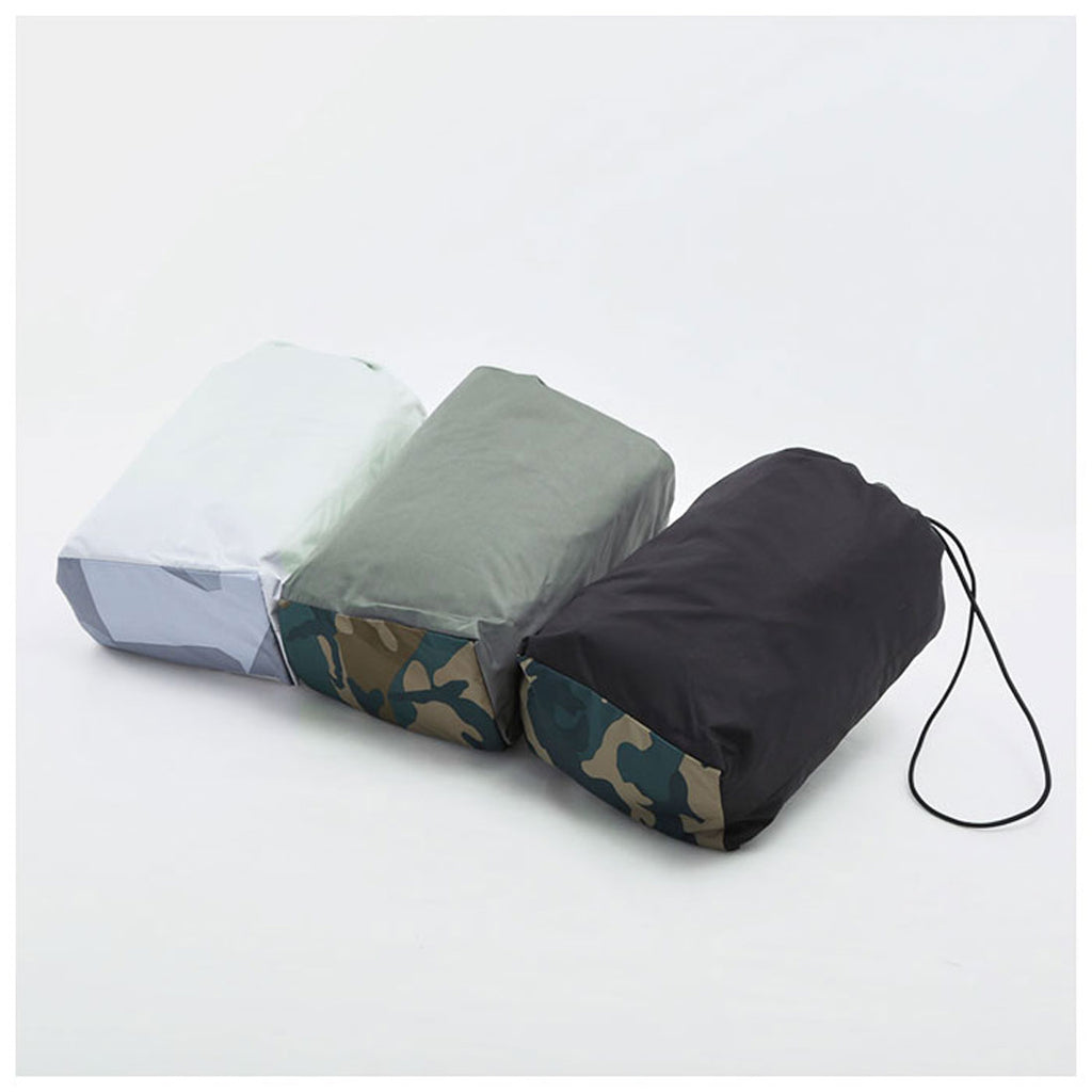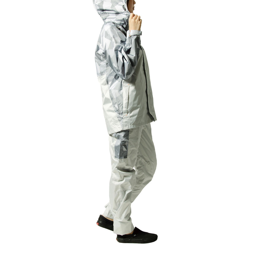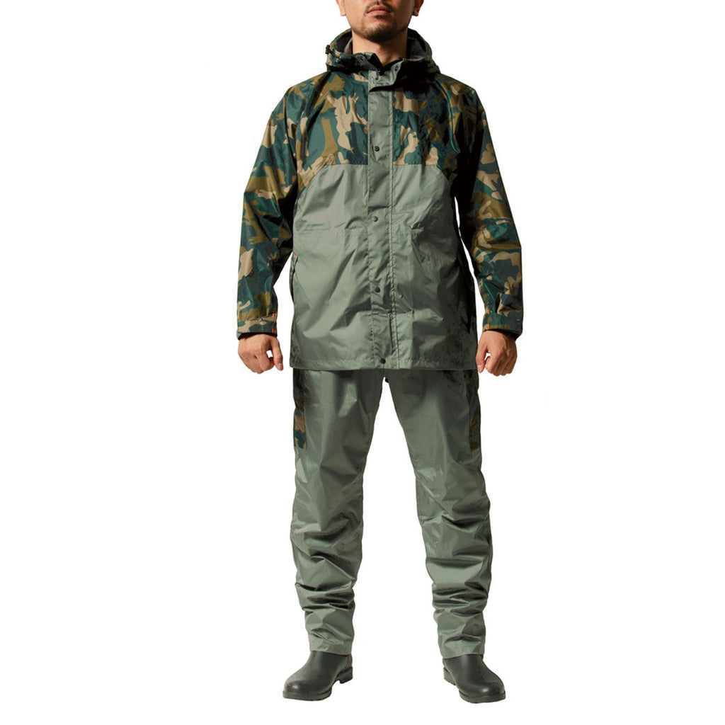 ・フードの内側やパンツのサイドラインなど随所にカモフラージュ柄を配置したデザインで、雨の日もスタイリッシュに着こなせる。