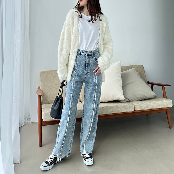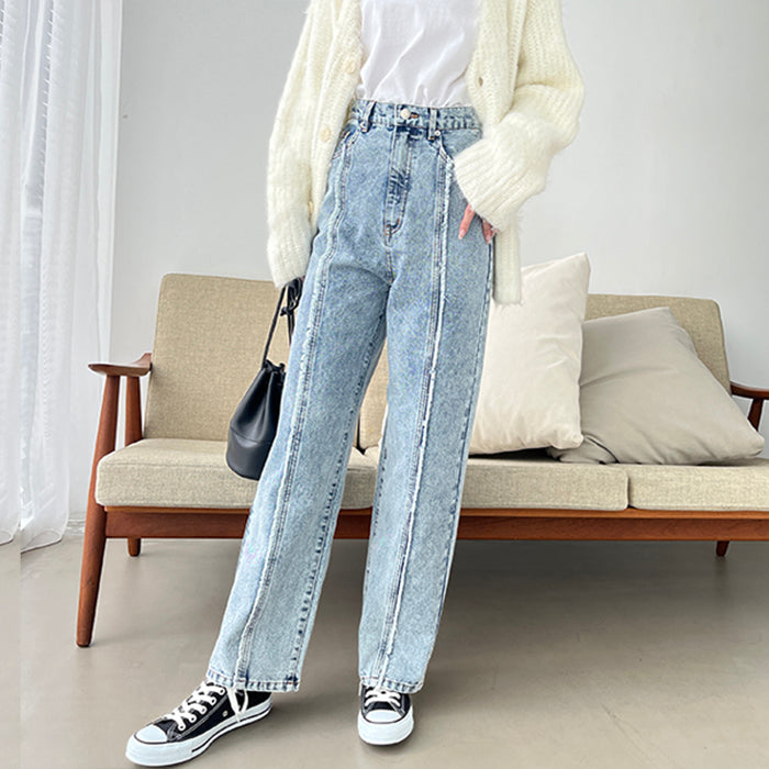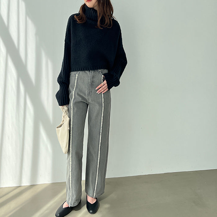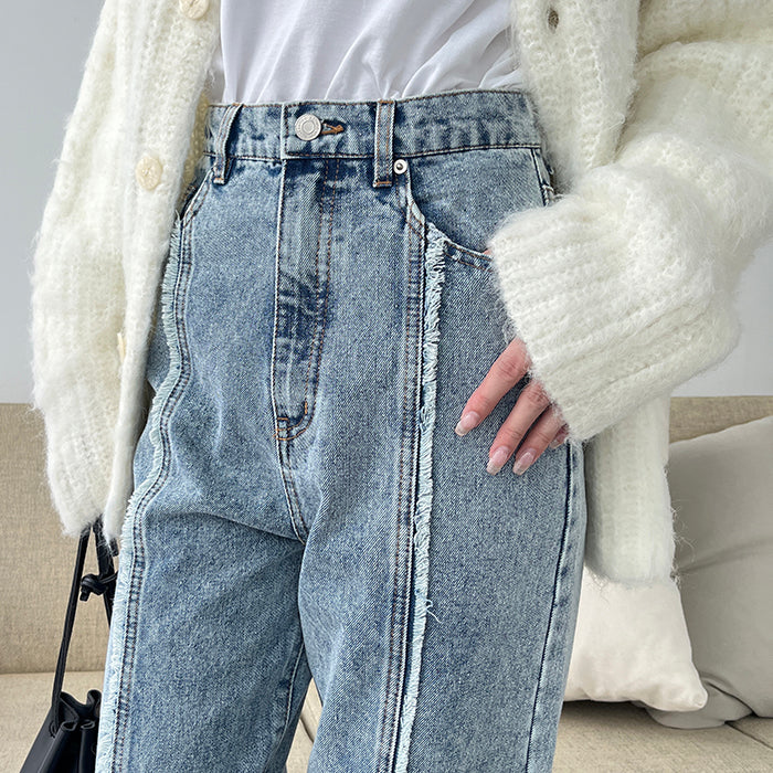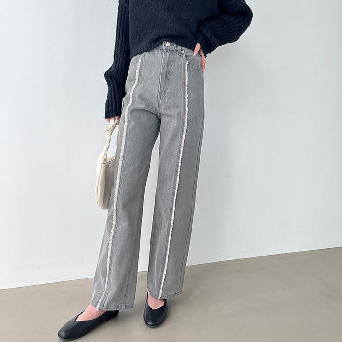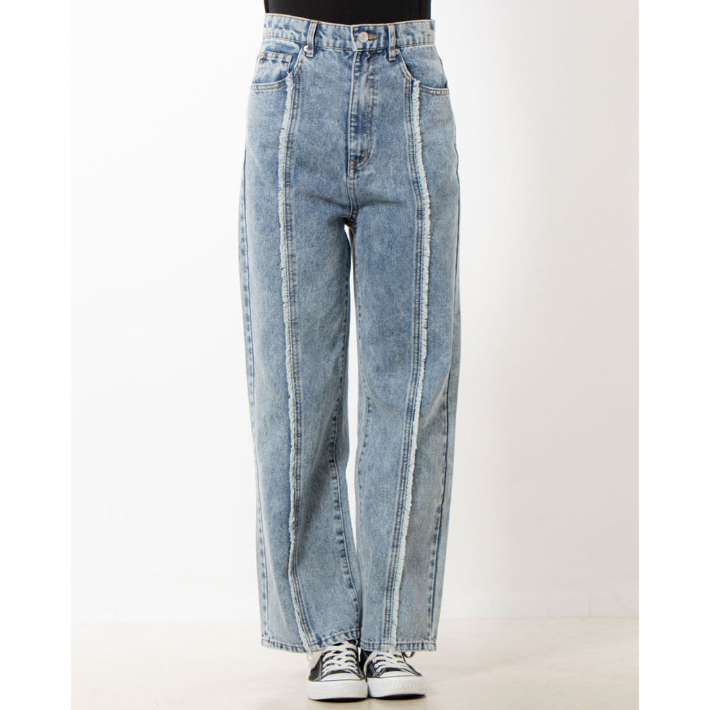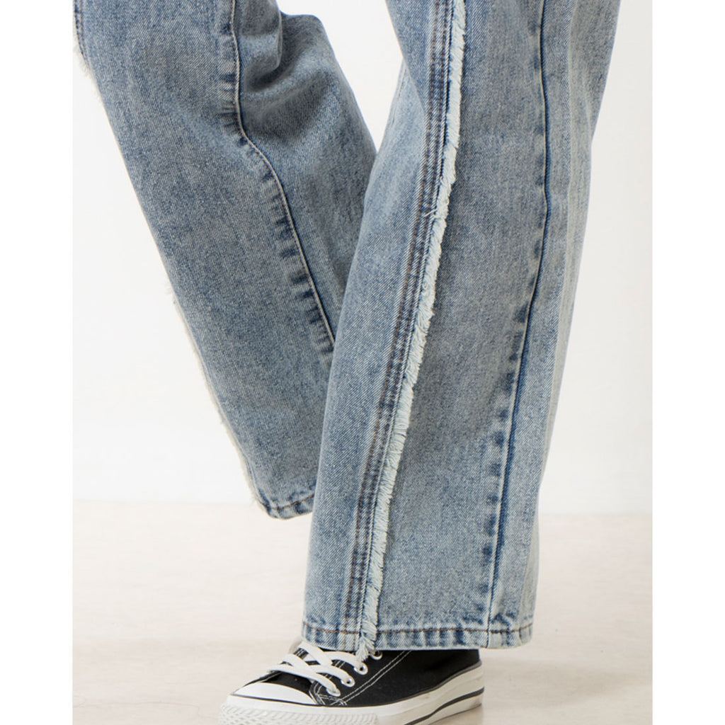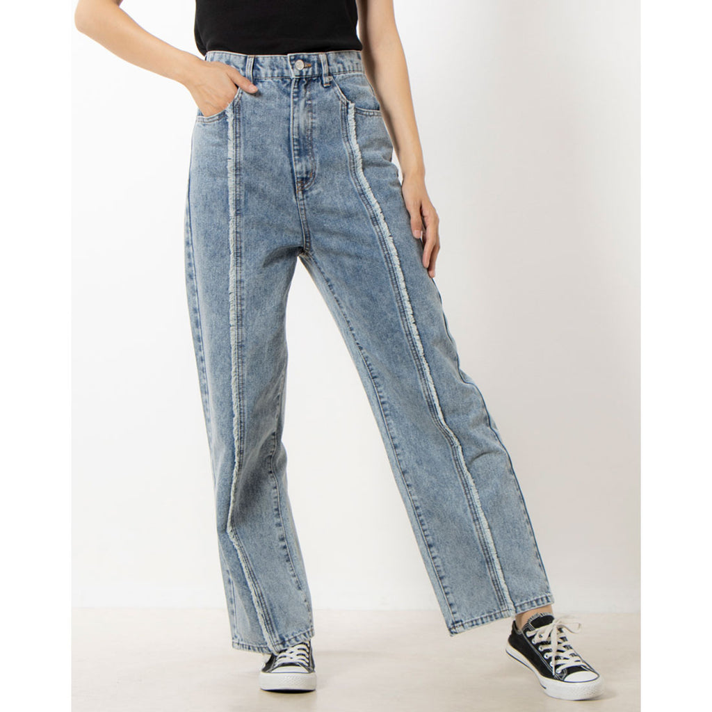 〇センターラインにフリンジ加工を施したトレンドライクなデニムパンツ