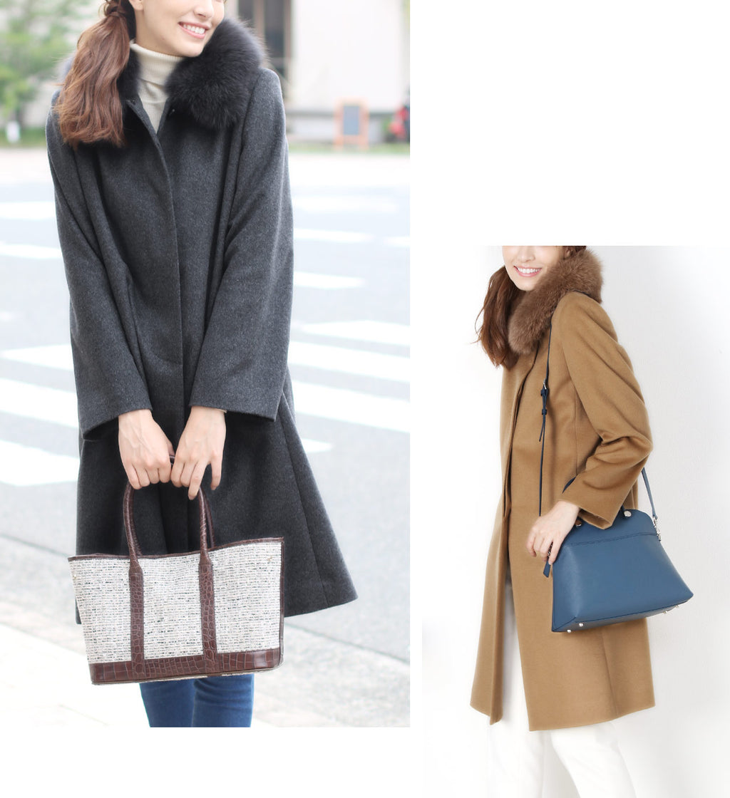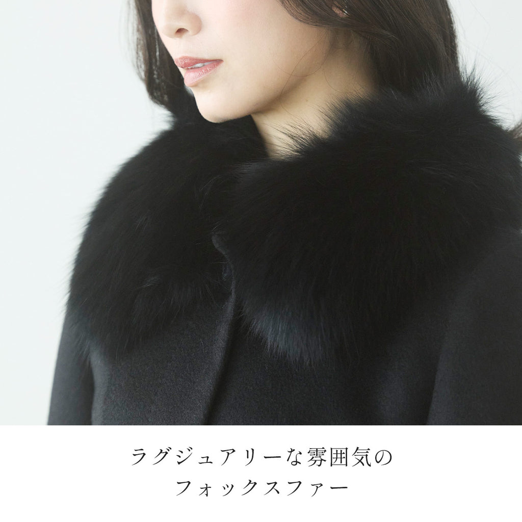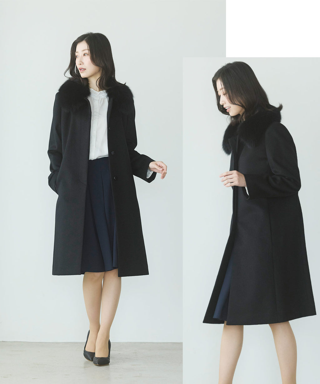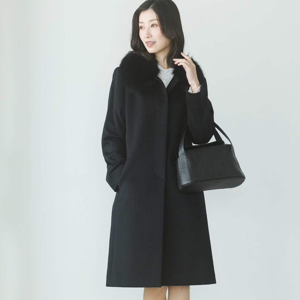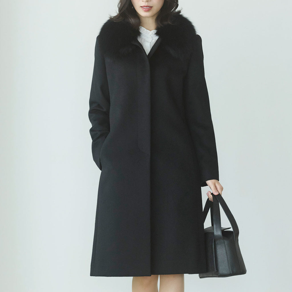 襟元にフォックスファーを使用した華やかなカシミヤコート。