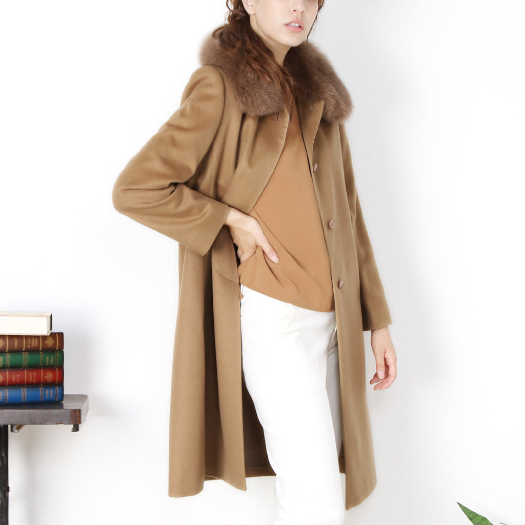 サンキョウショウカイ 三京商会 カシミヤ100%ステンカラーロングコートフォックス衿付き