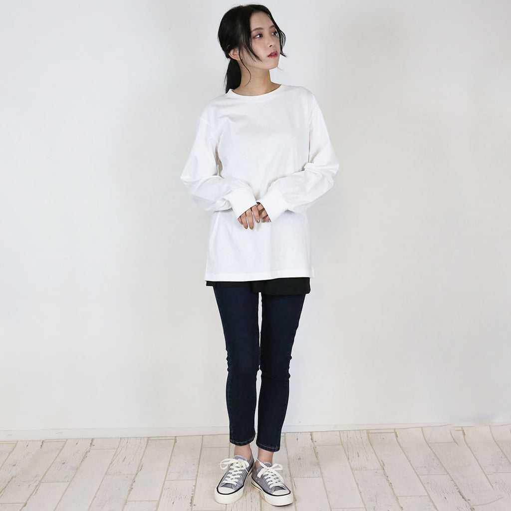 シンプルにスキニーとのスタイリングはもちろん、ワイドパンツやスカートとも相性抜群です。