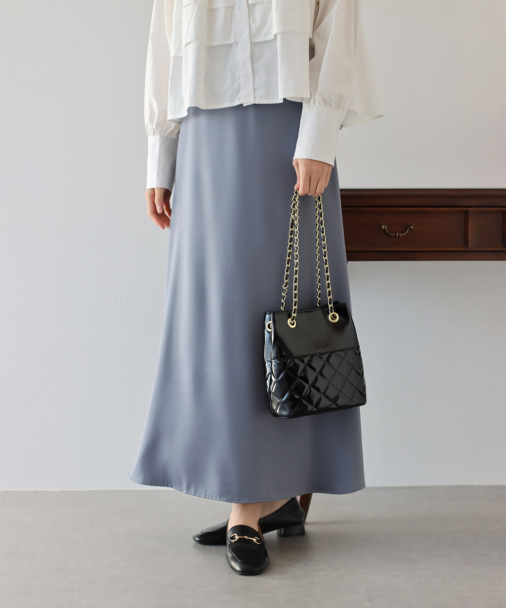 きれいめにもカジュアルにも使いこなせるのが嬉しいキルティングバッグ。