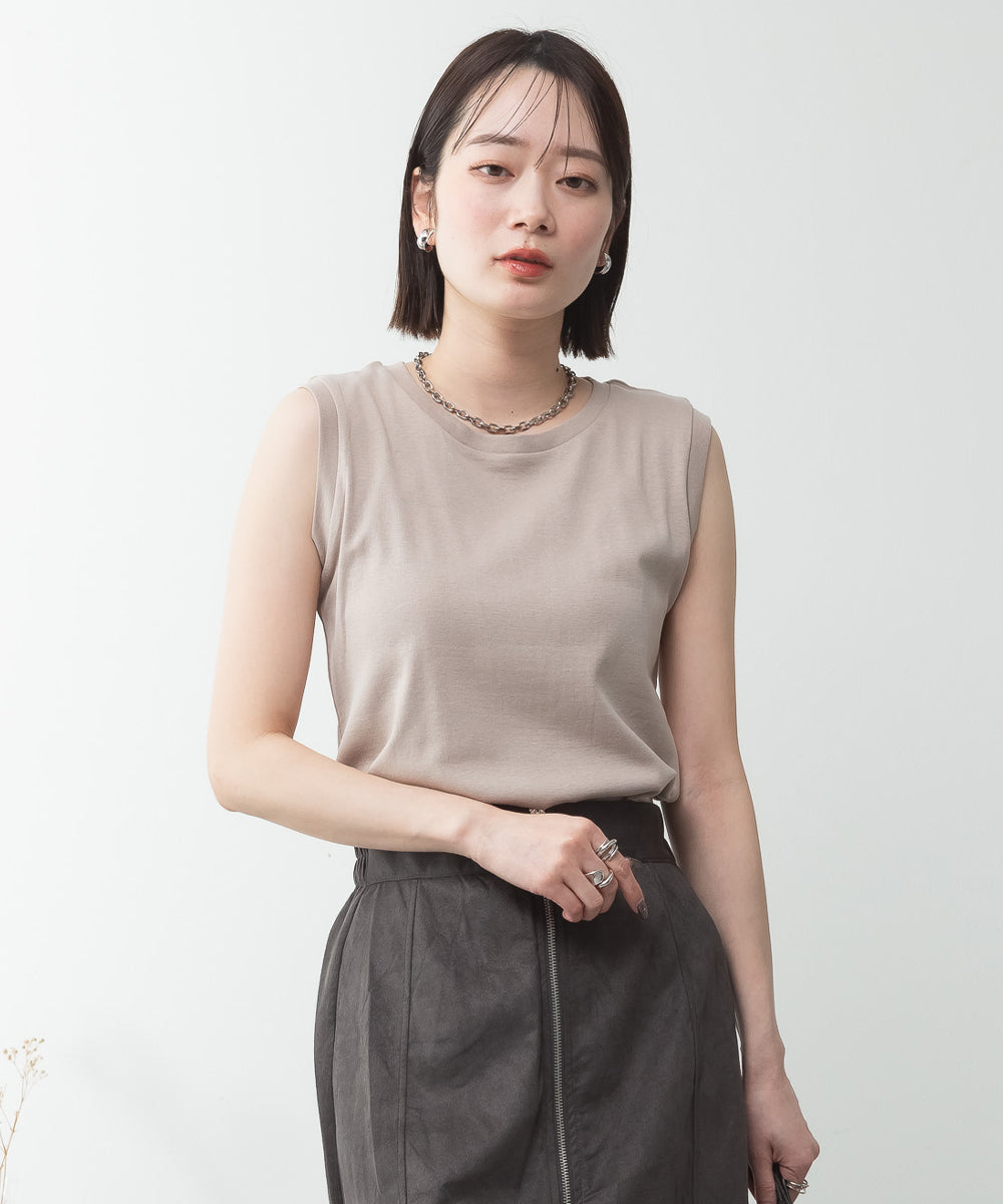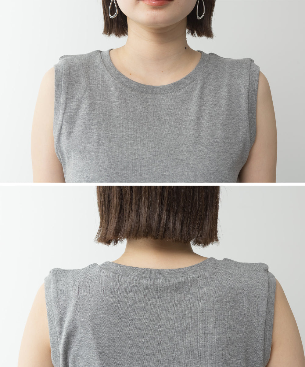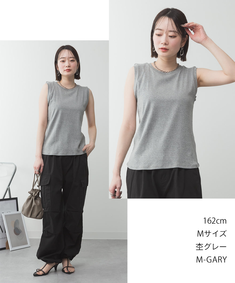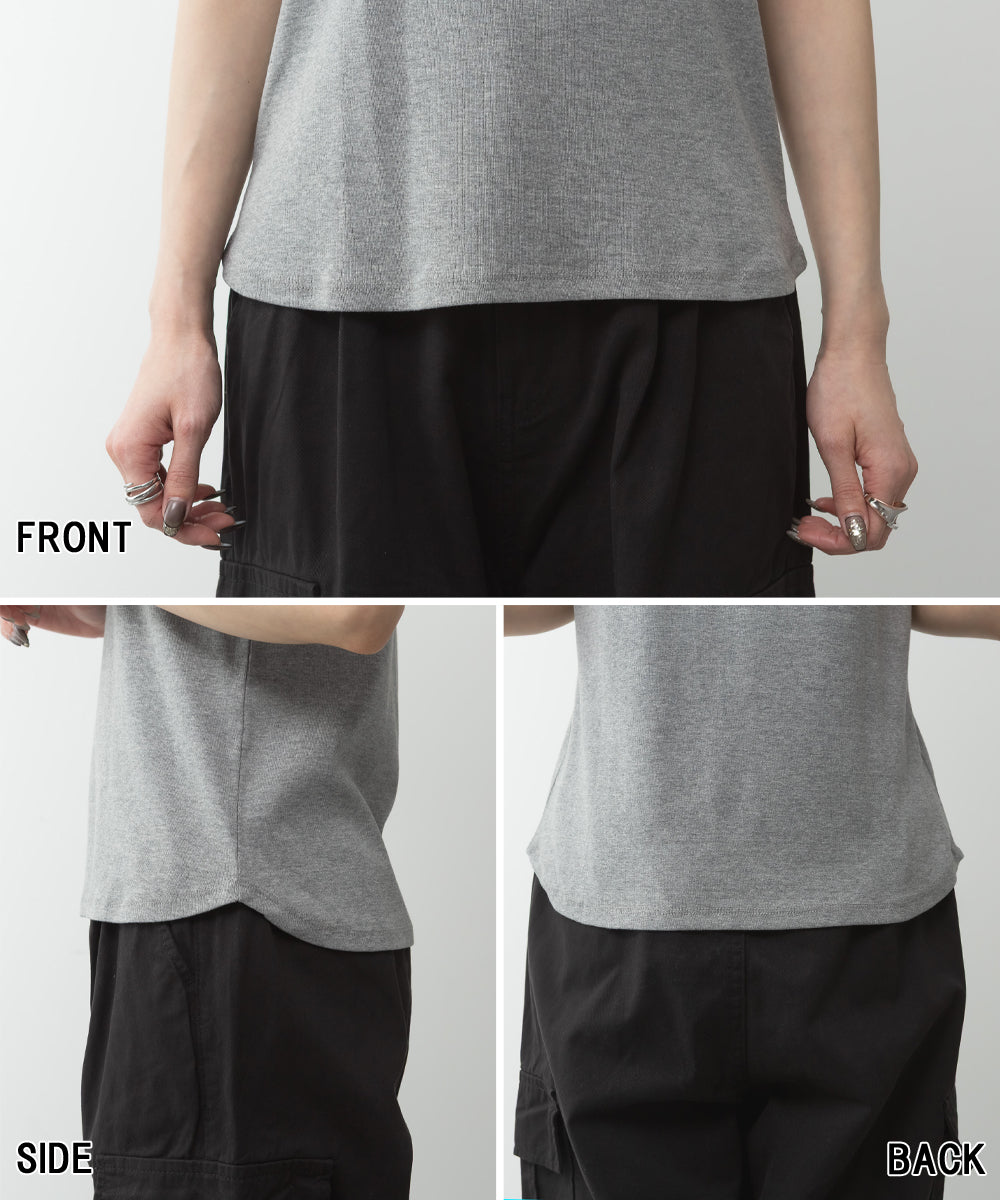 シンプルデザインでスタイリングしやすく、シャツインしてきれい目コーデに合わせても、インせず外に出してルーズな合わせ方にも最適な万能インナーです。