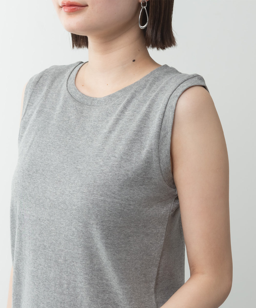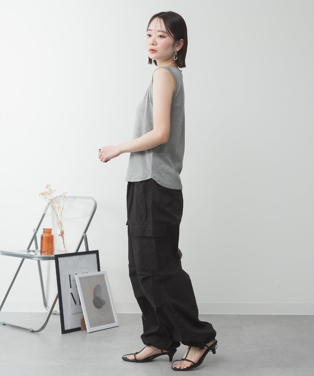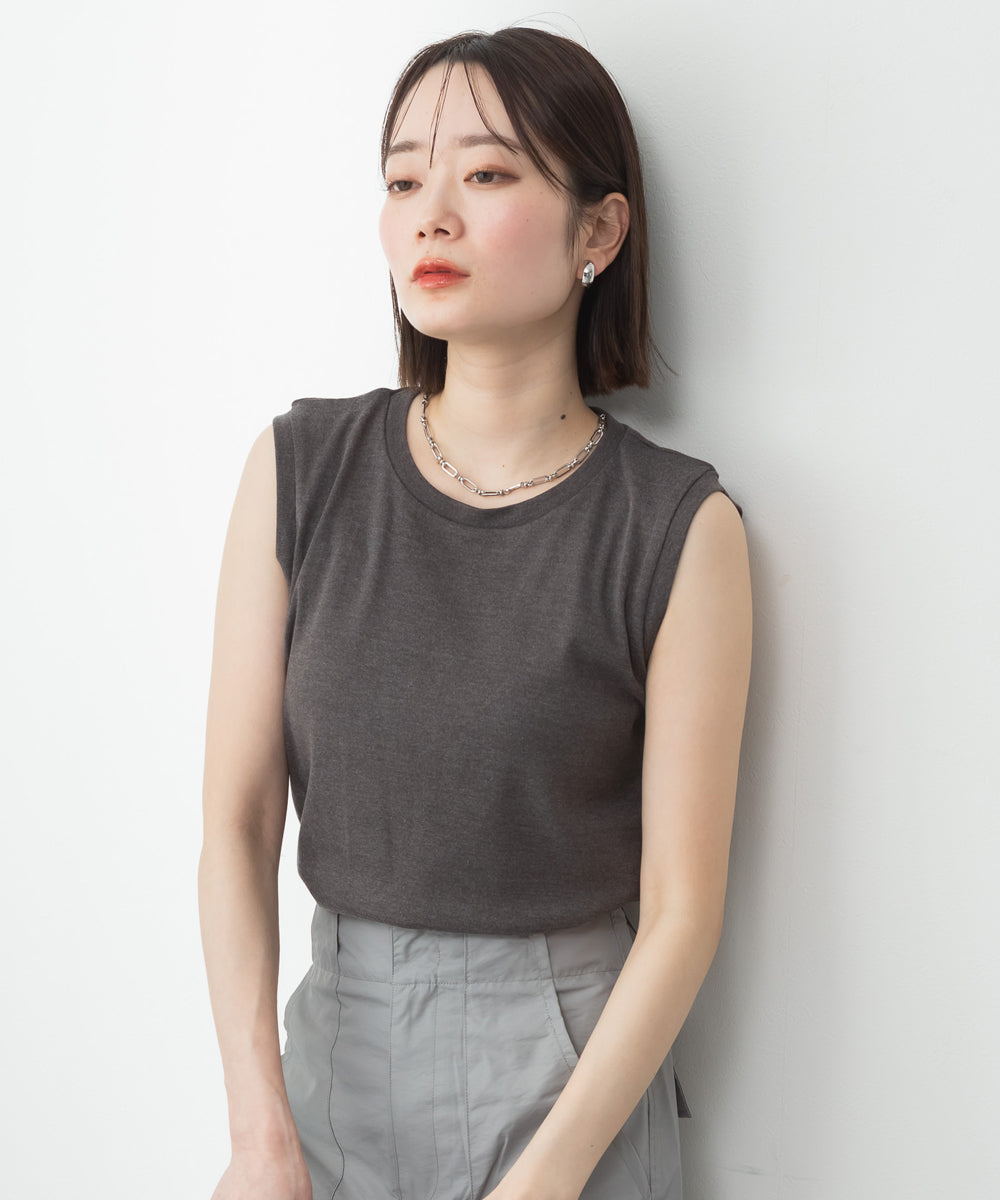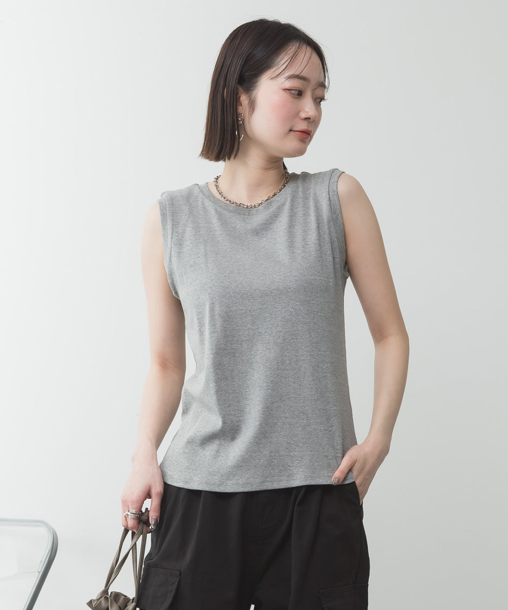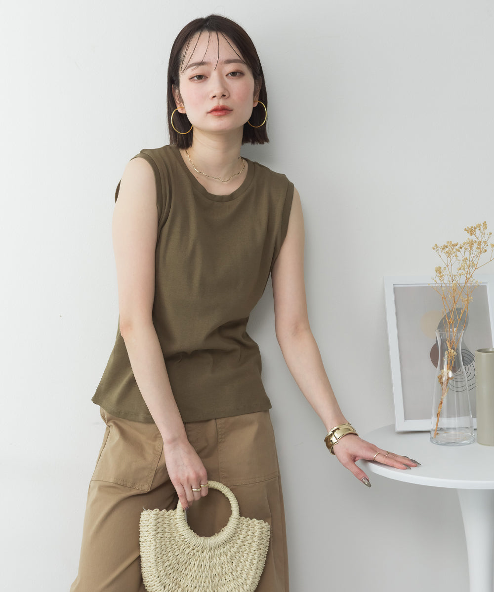 シンプルデザインでスタイリングしやすく、シャツインしてきれい目コーデに合わせても、インせず外に出してルーズな合わせ方にも最適な万能インナーです。