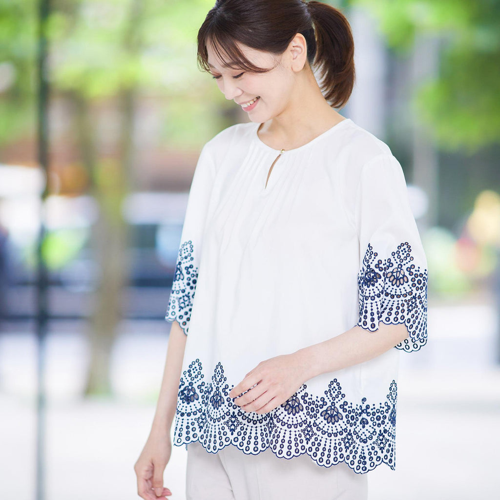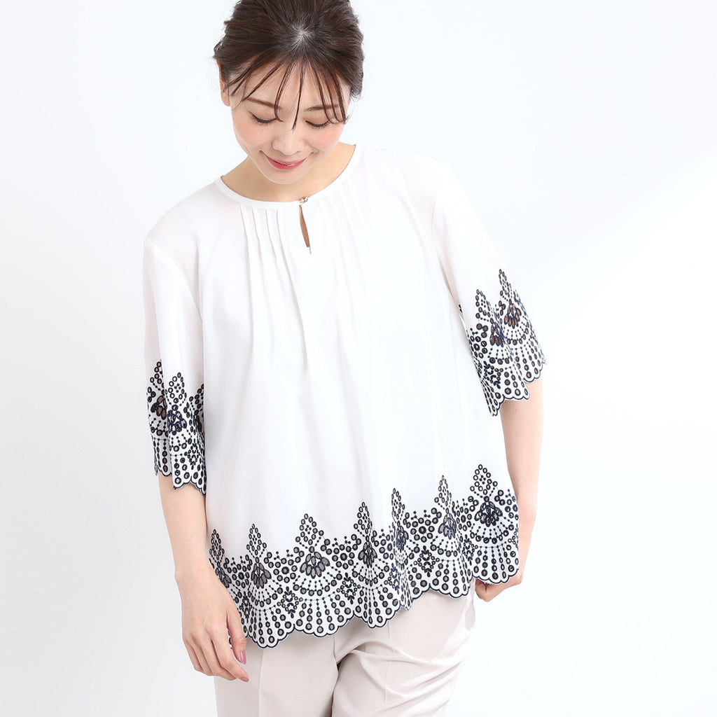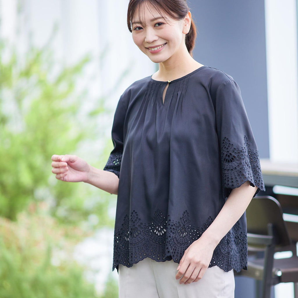 リフレクト Reflect 【接触冷感/洗える/シワになりにくい】エンブロイダリーブラウス