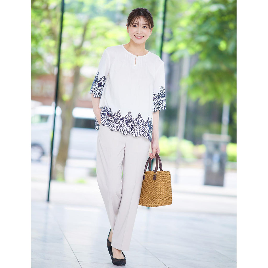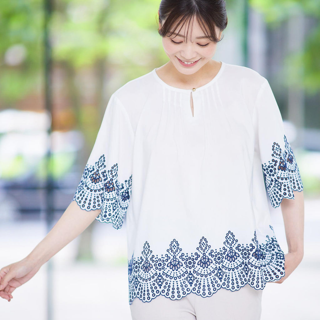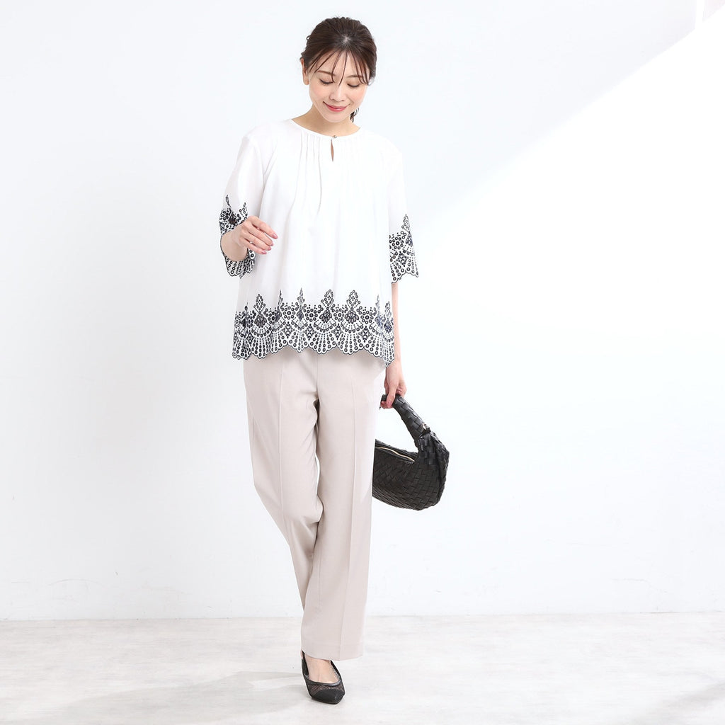 リフレクト Reflect 【接触冷感/洗える/シワになりにくい】エンブロイダリーブラウス