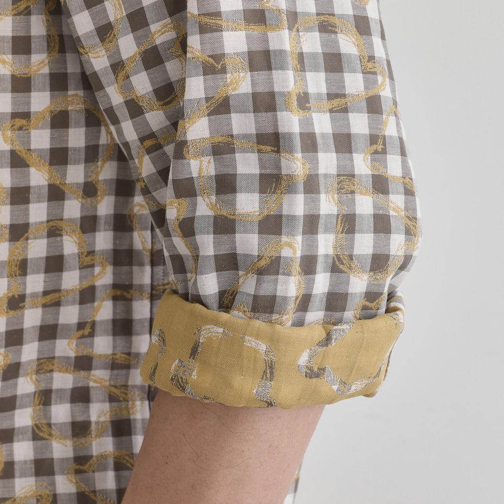 袖をロールアップすると裏面のカラーがアクセントとなり、