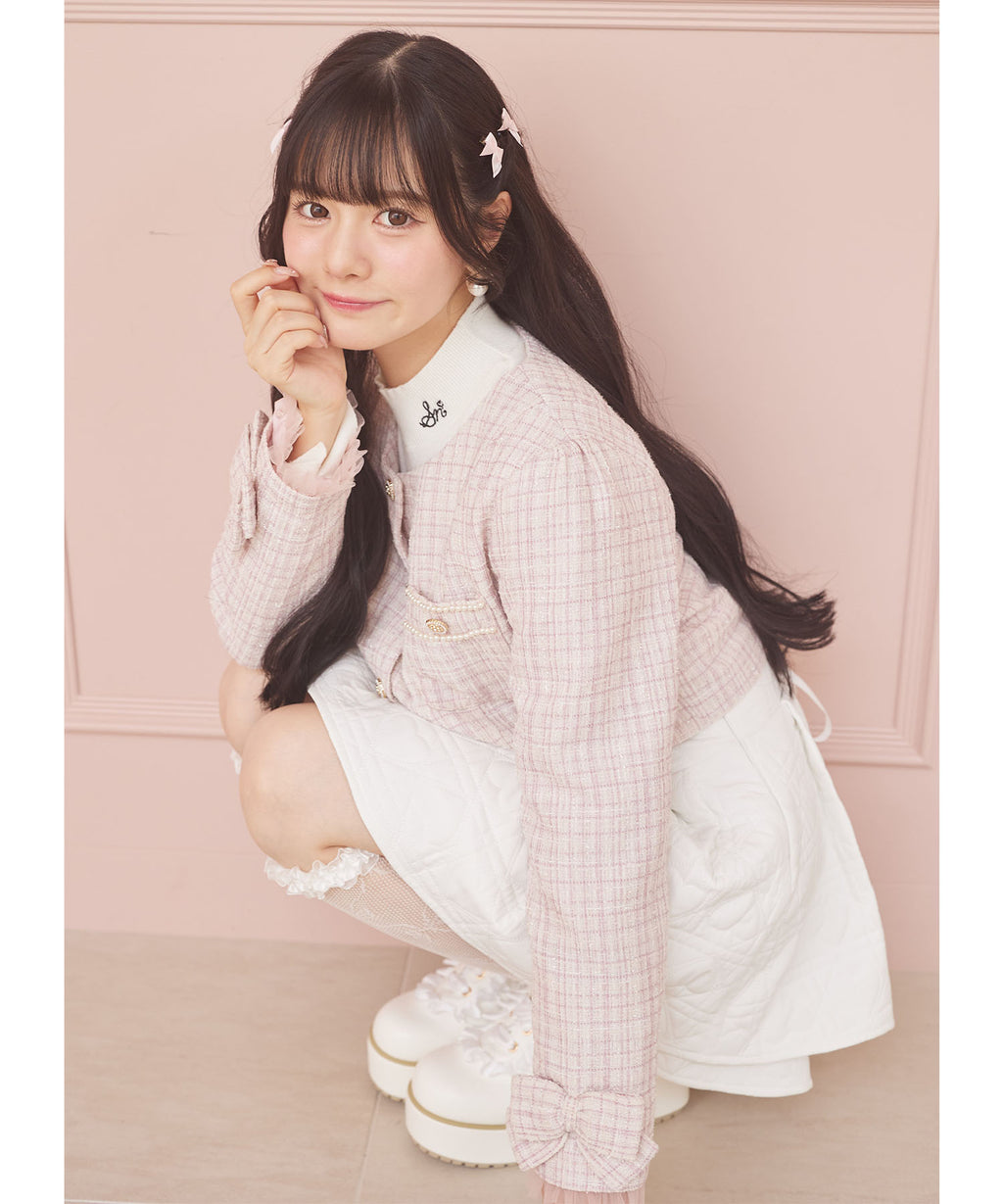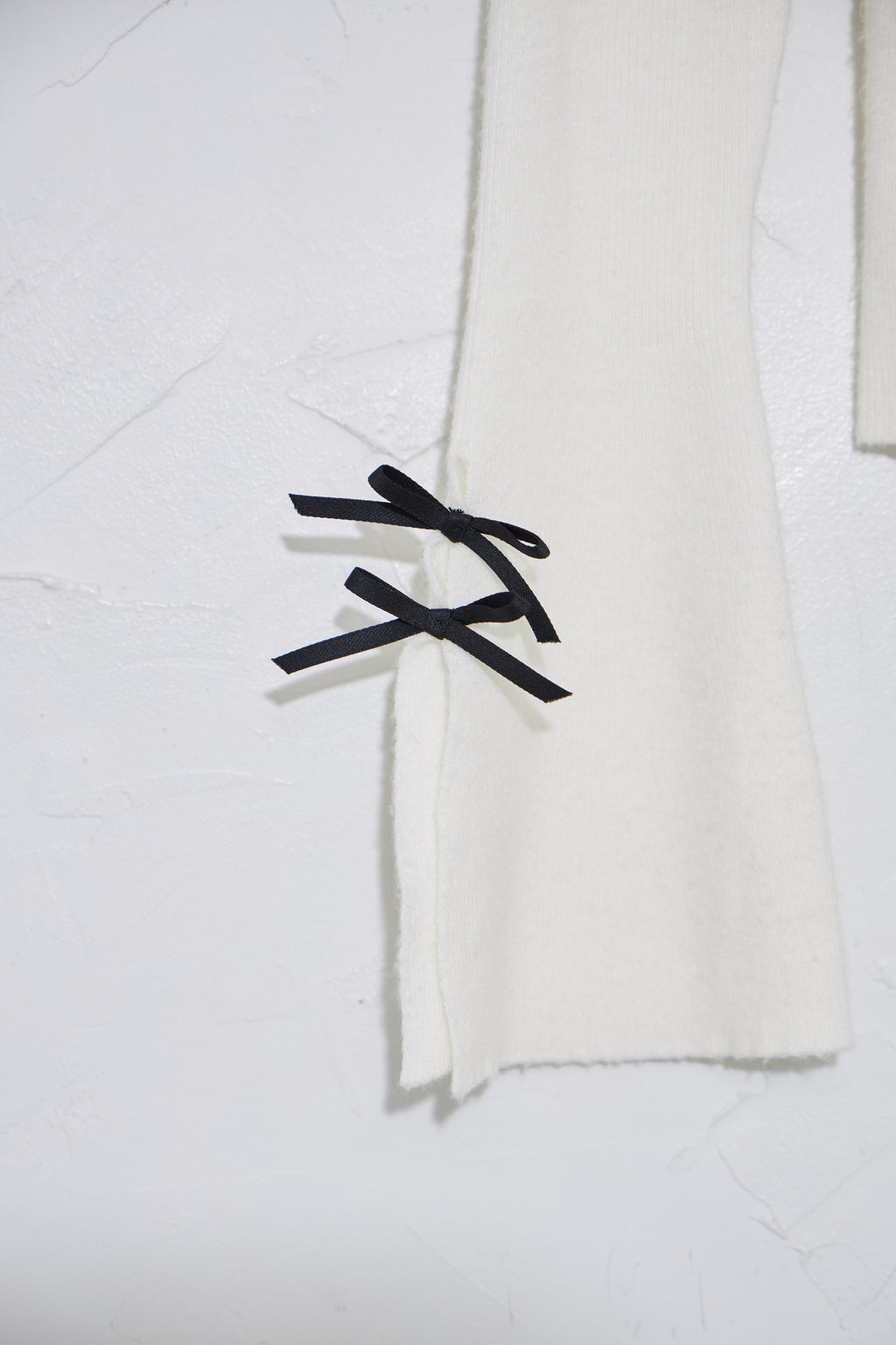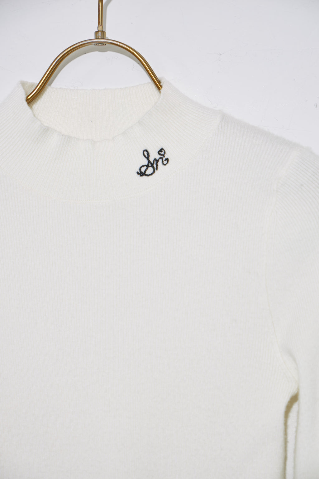 スユン Suyunn リボン付きフレアスリーブ刺繍入りハイネックリブニットプルオーバー