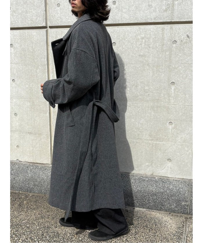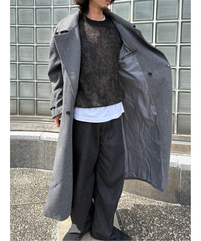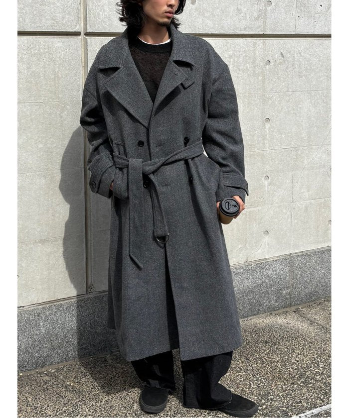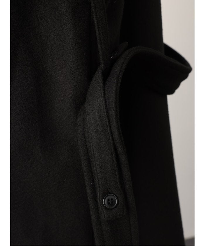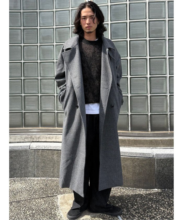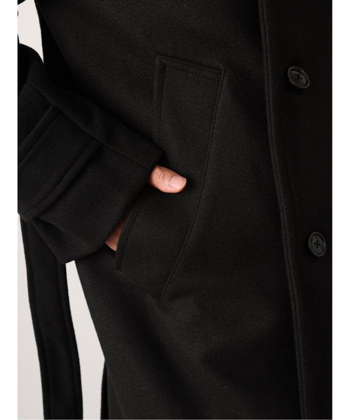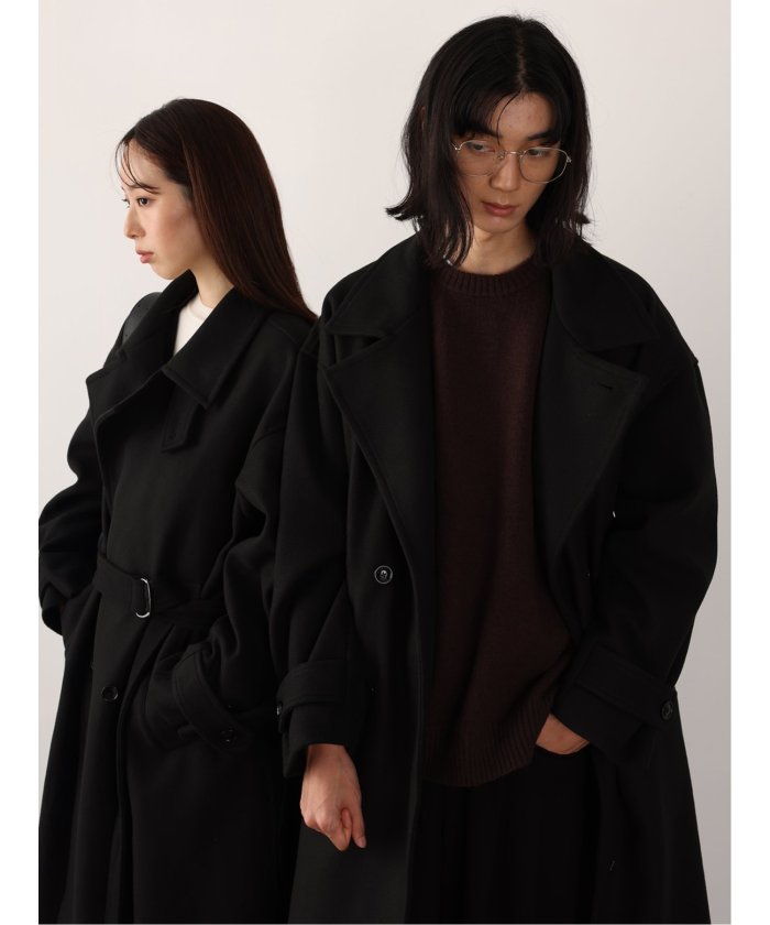 端正なテーラードカラーが目を引く、ロング丈のコート。