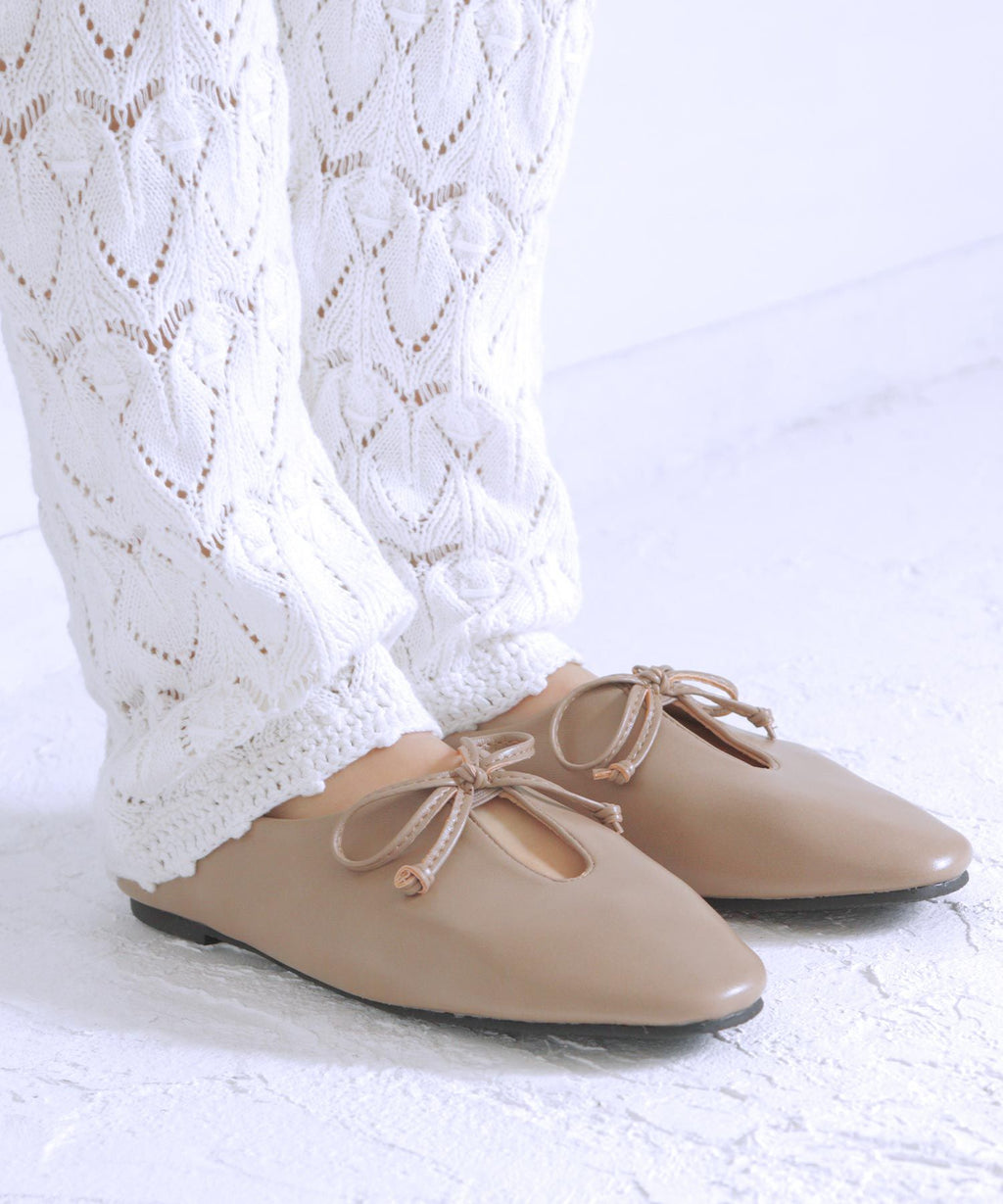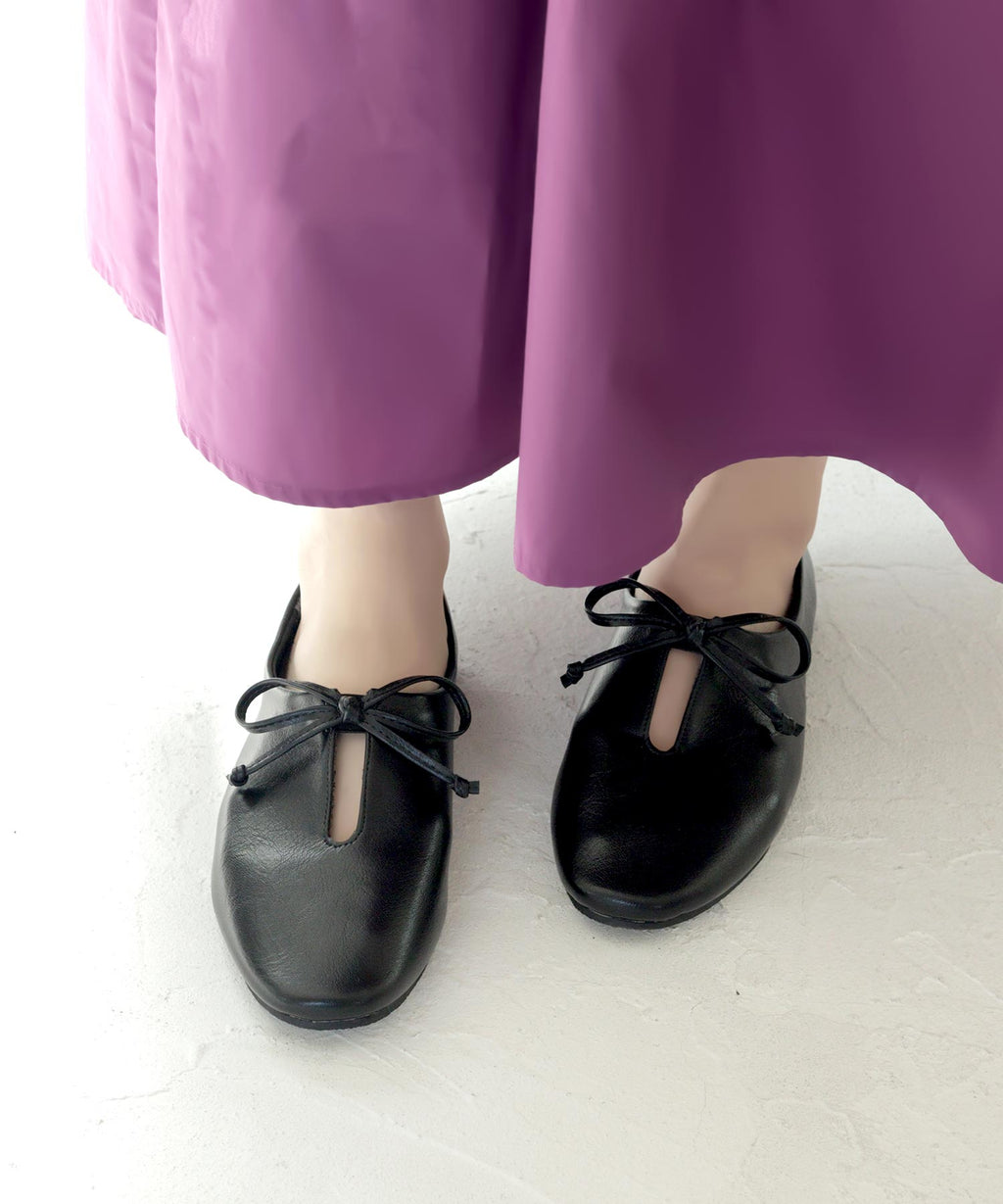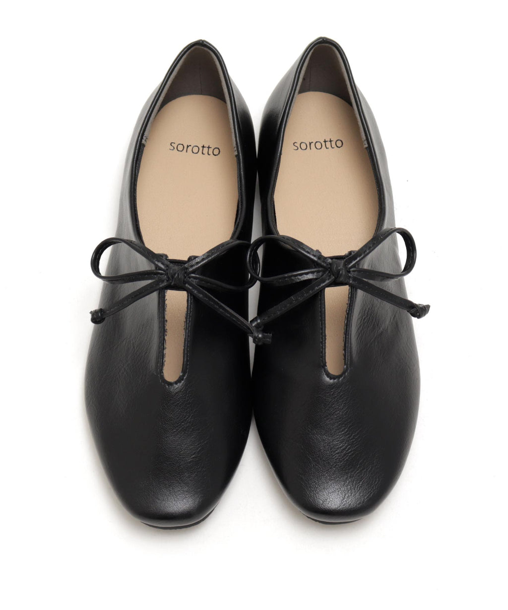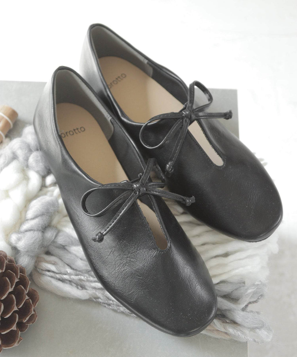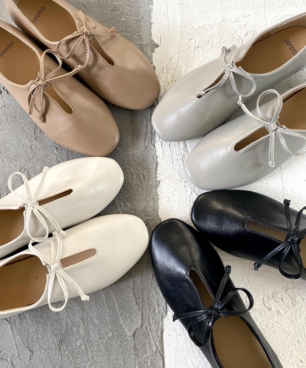 ソロット SOROTTO ふかふかインソール/リボン付きスリットデザインのぺたんこフラットシューズ