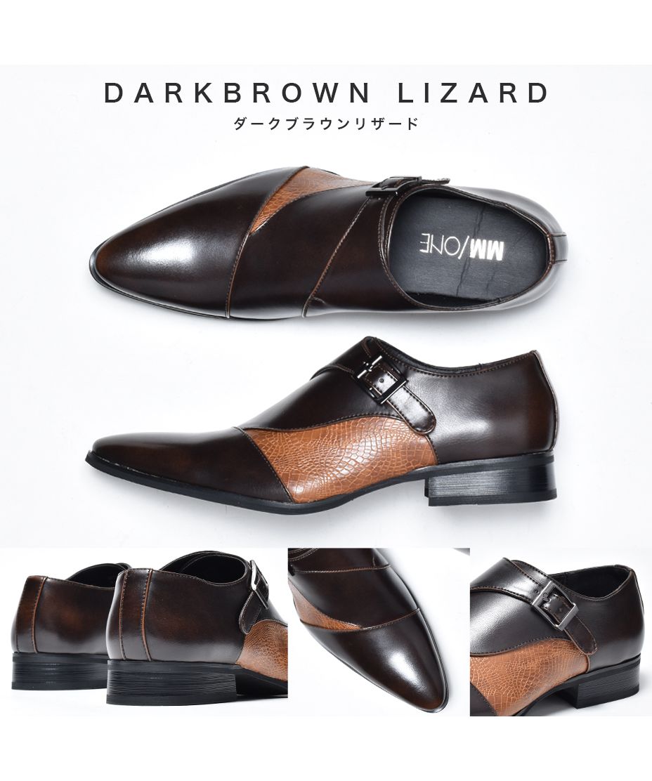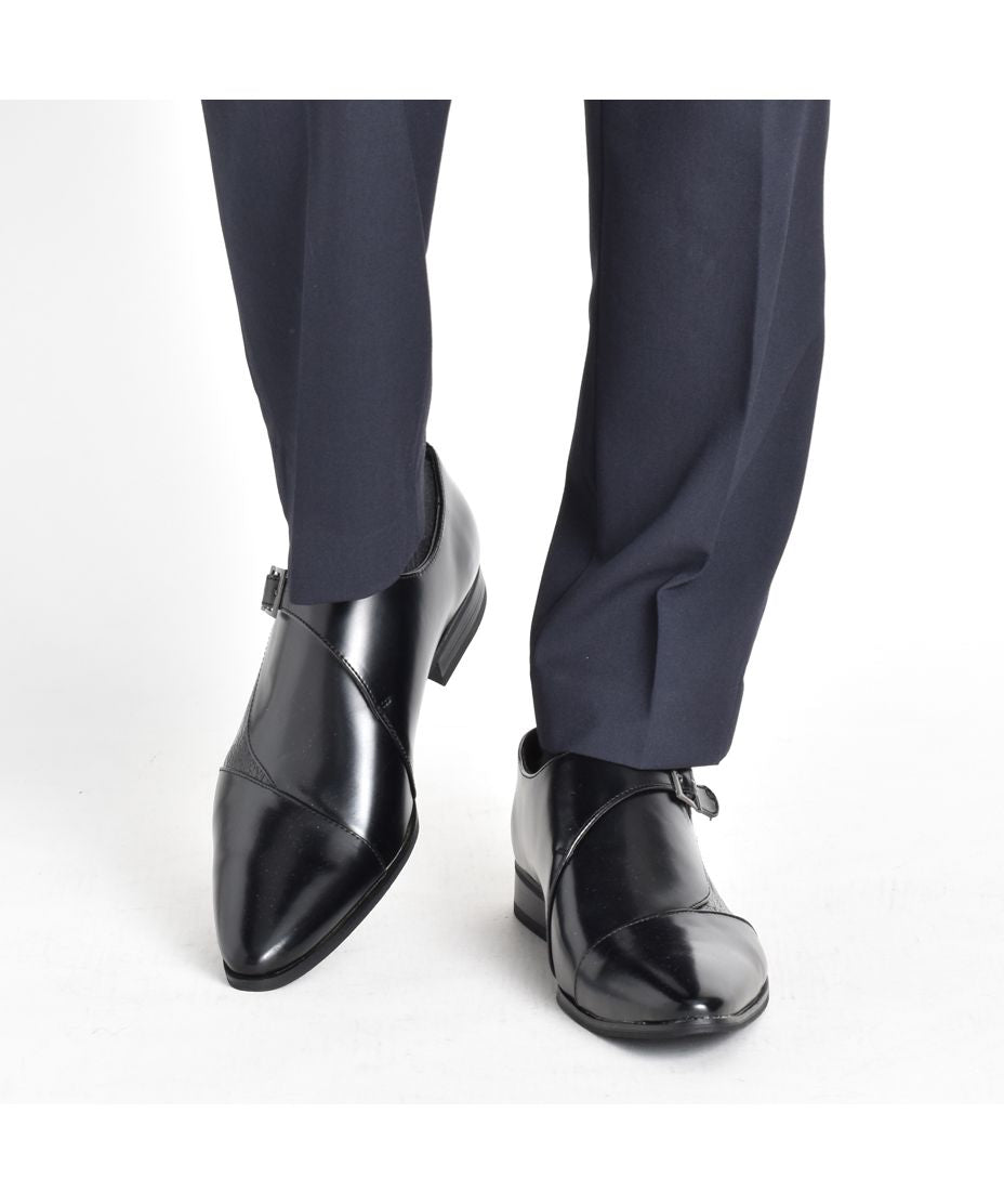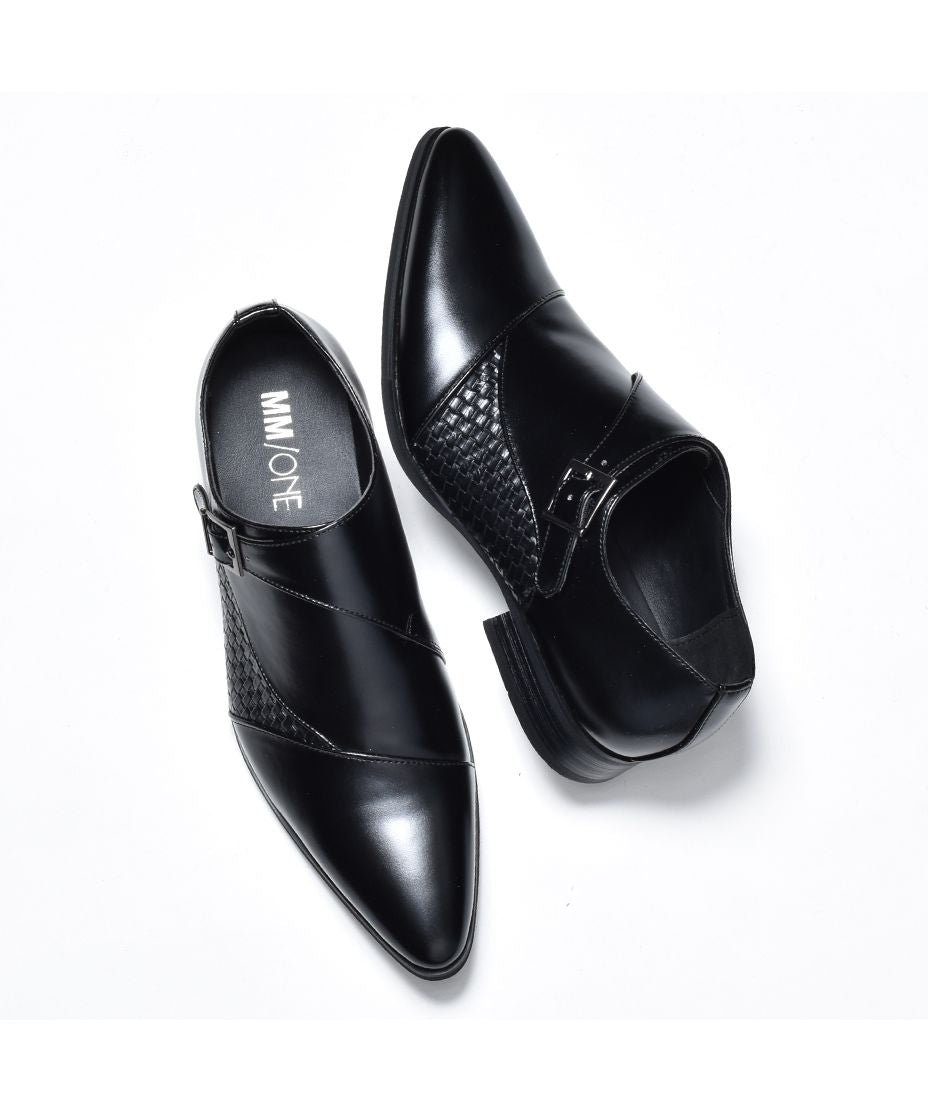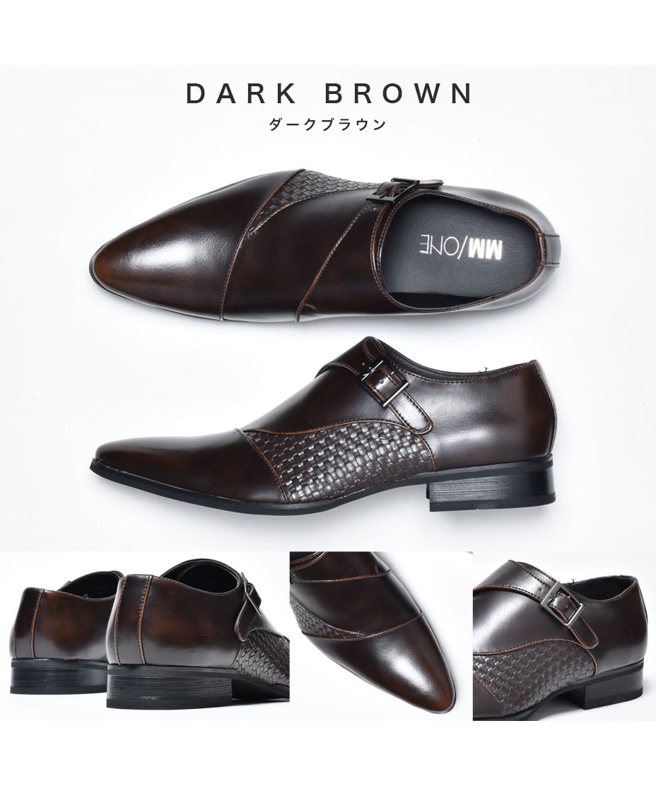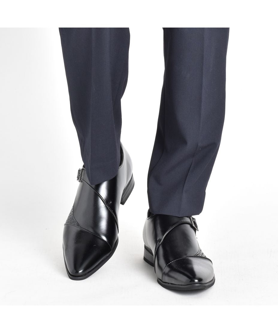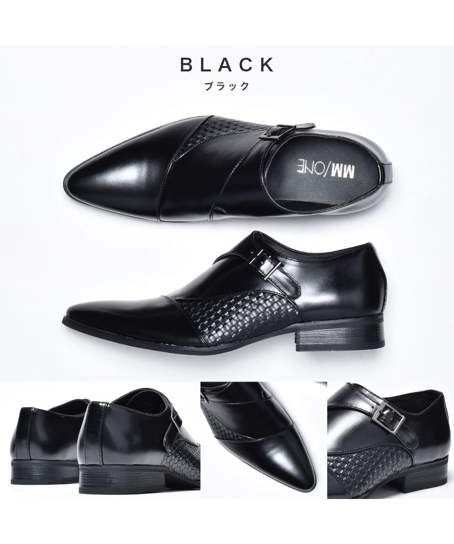 MM/ONE(エムエムワン)撥水加工・低反発インソール仕様フェイクイントレチャート切替モンクストラップシューズ。