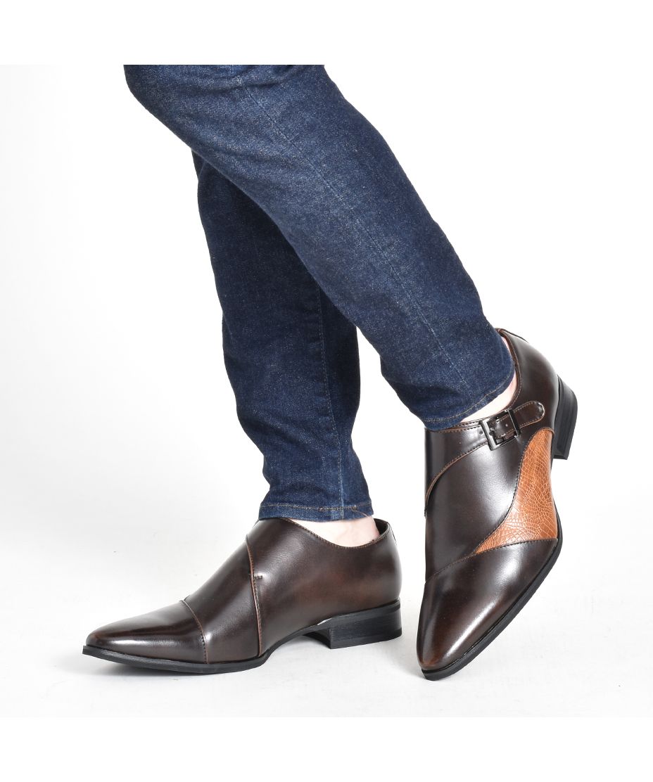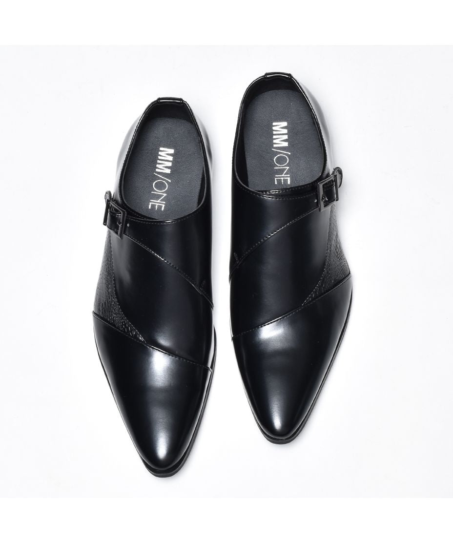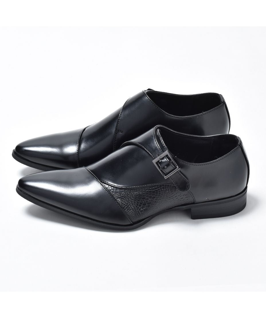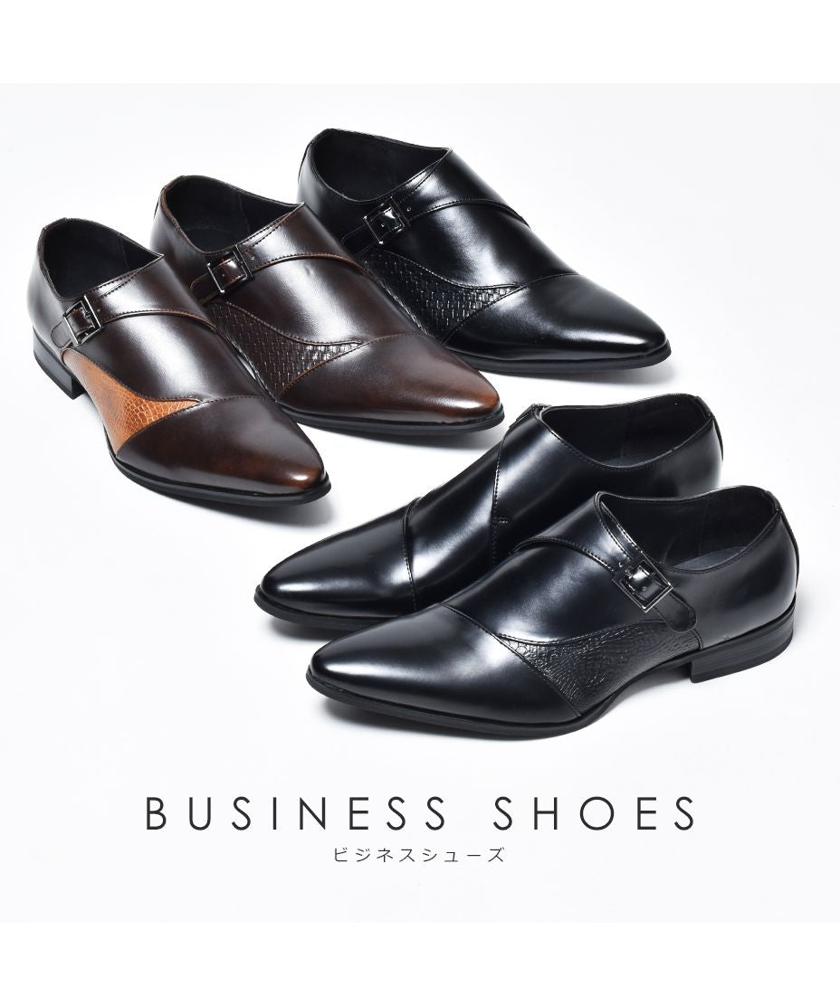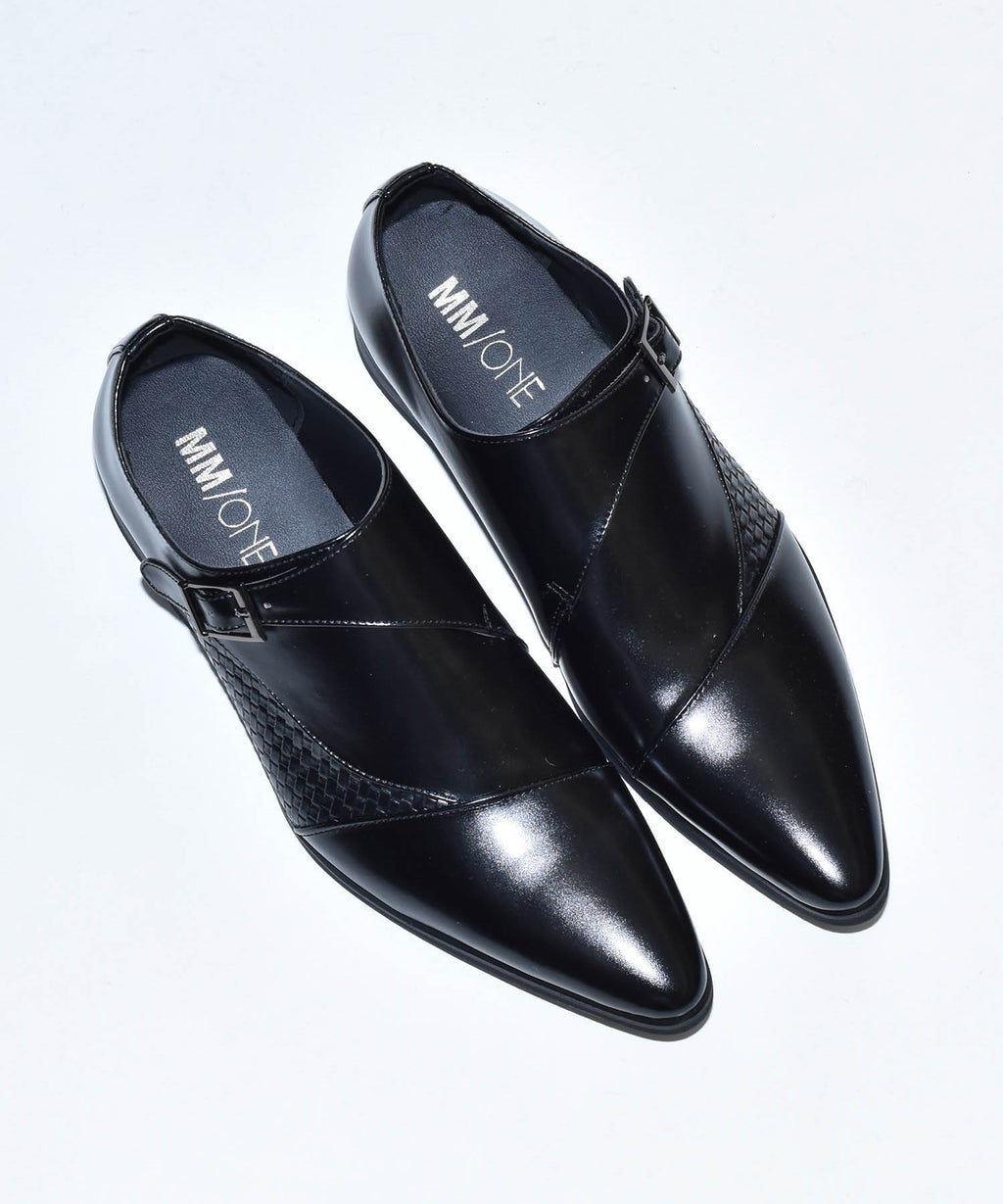MM/ONE(エムエムワン)撥水加工・低反発インソール仕様フェイクイントレチャート切替モンクストラップシューズ。