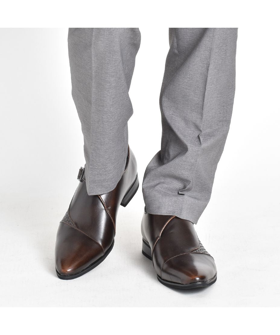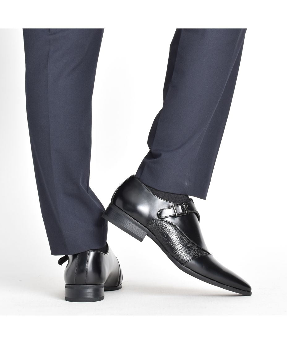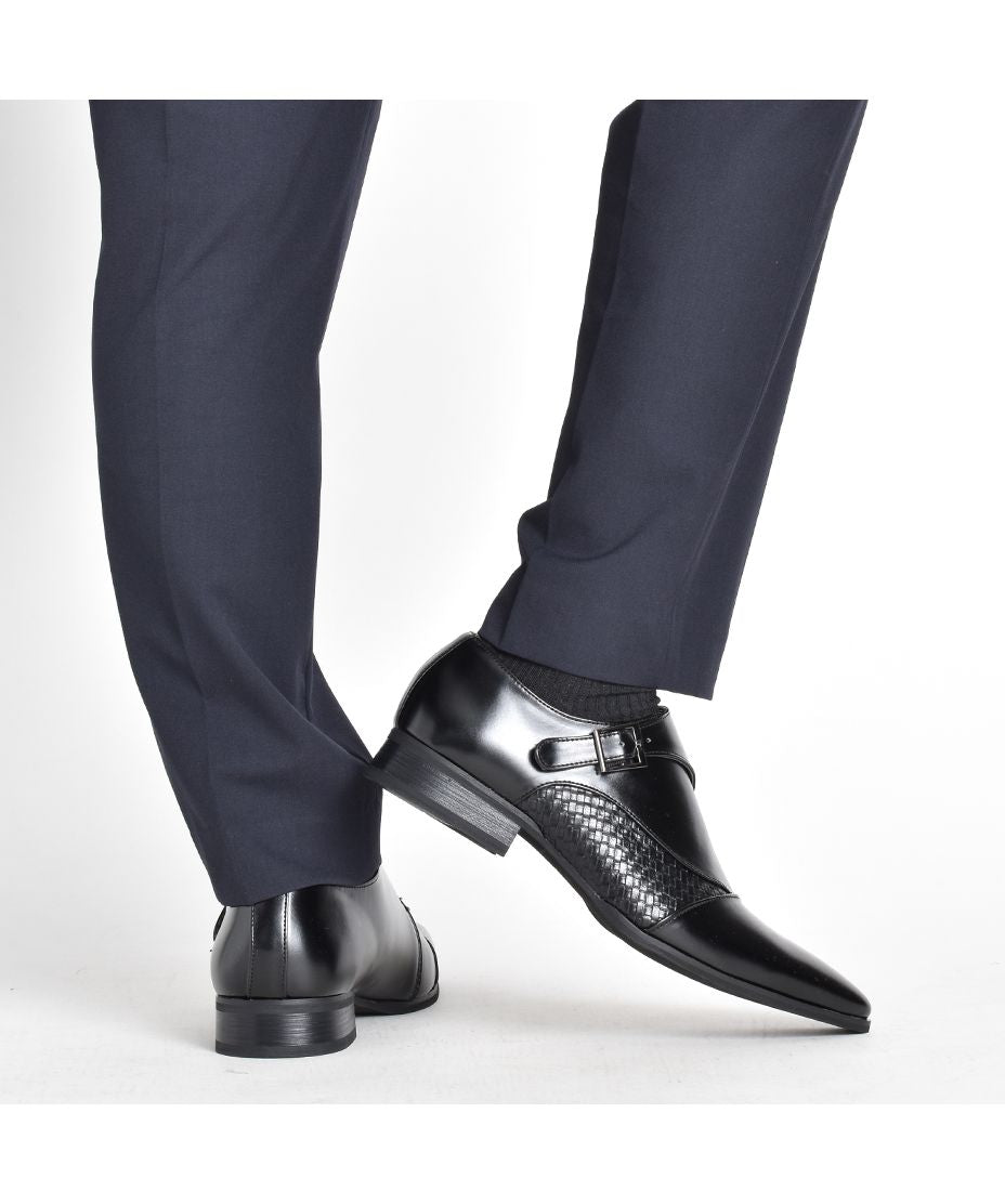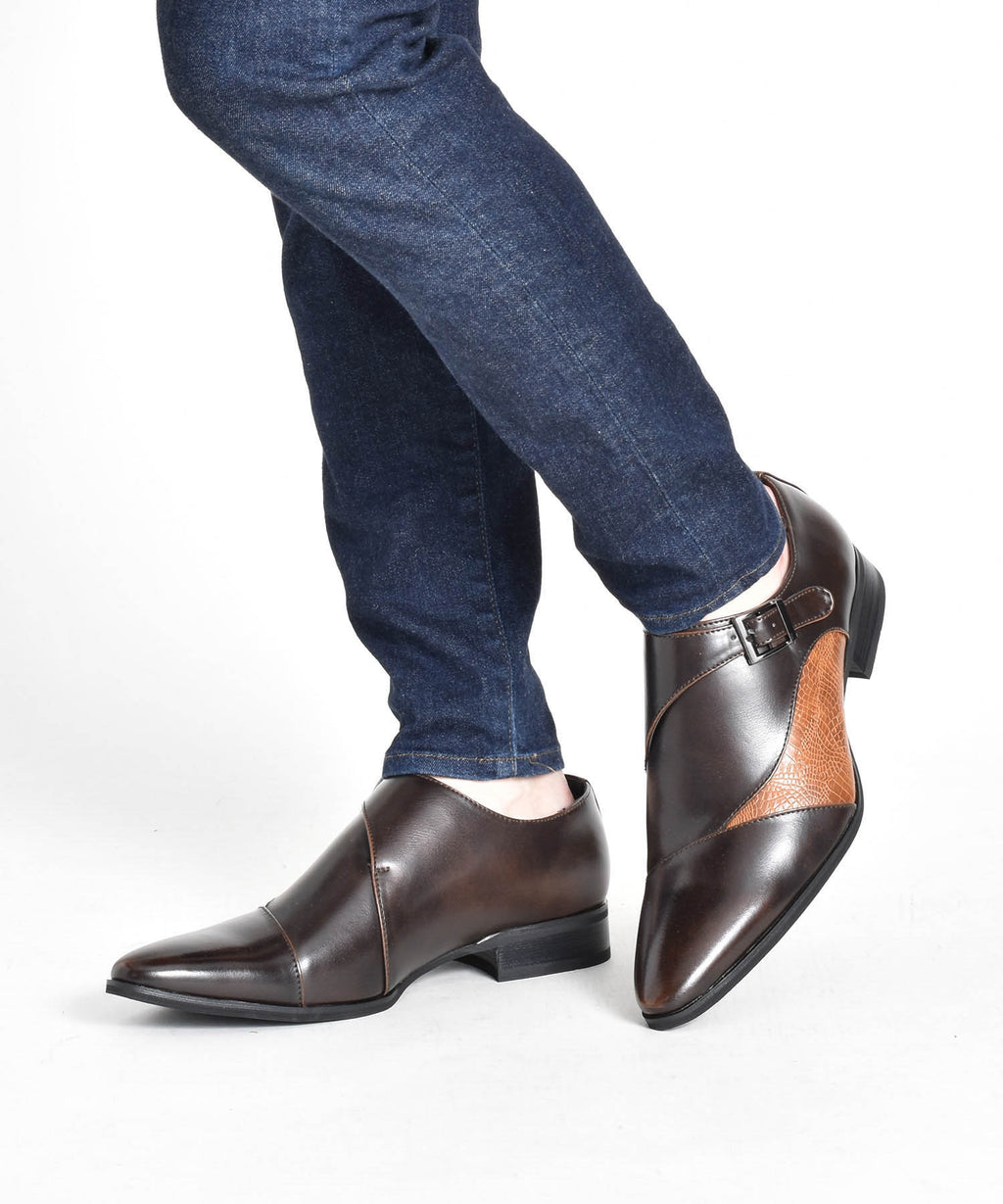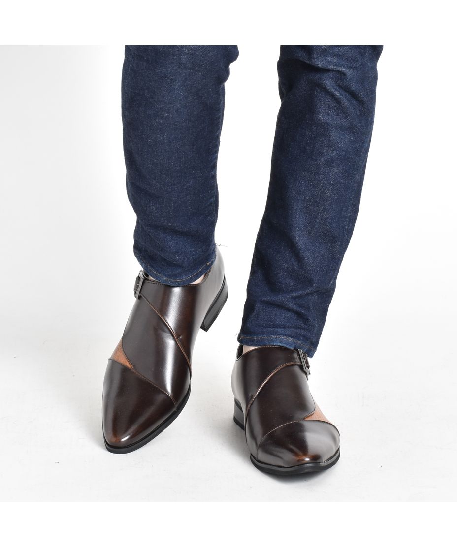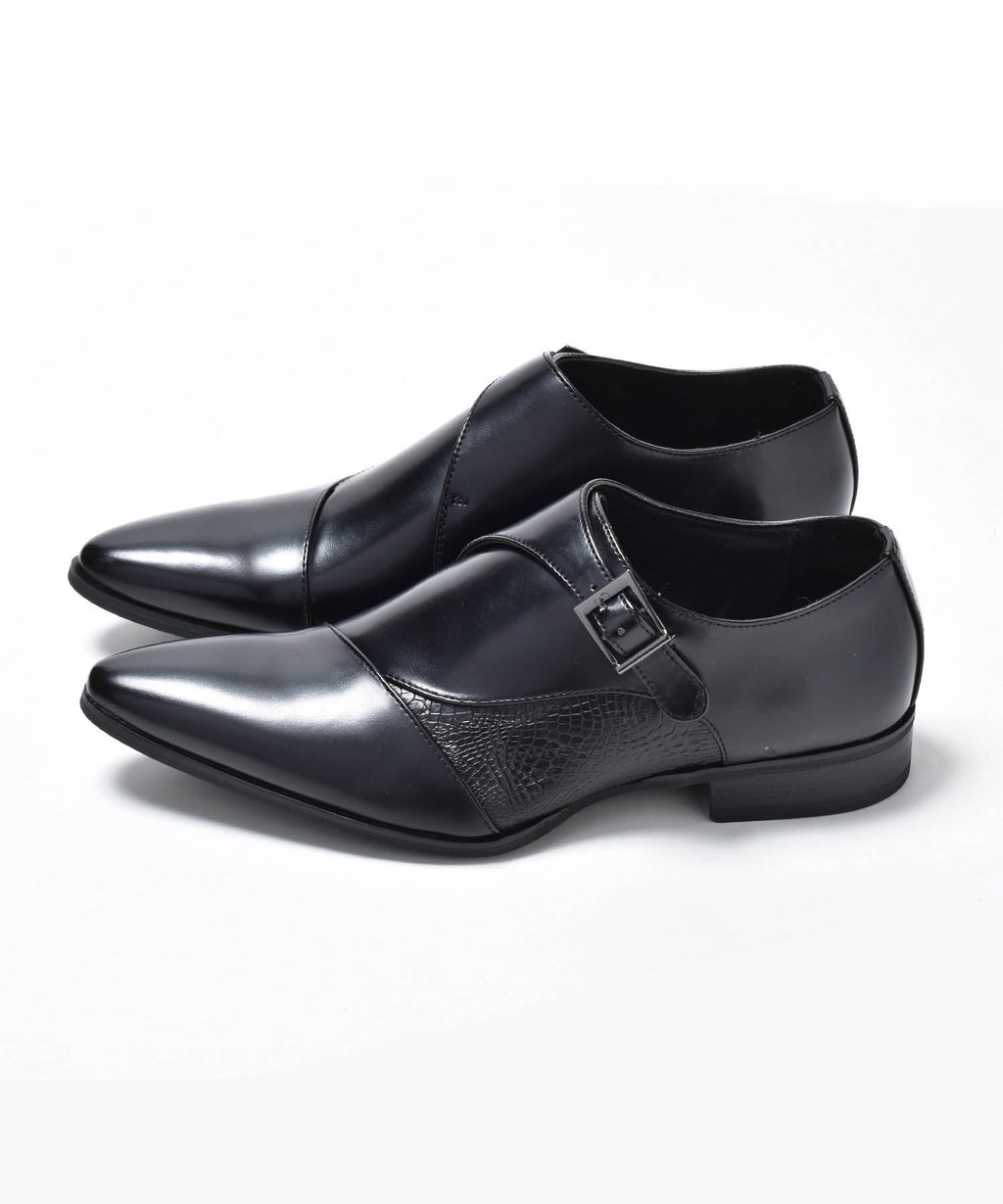 MM/ONE(エムエムワン)撥水加工・低反発インソール仕様フェイクイントレチャート切替モンクストラップシューズ。