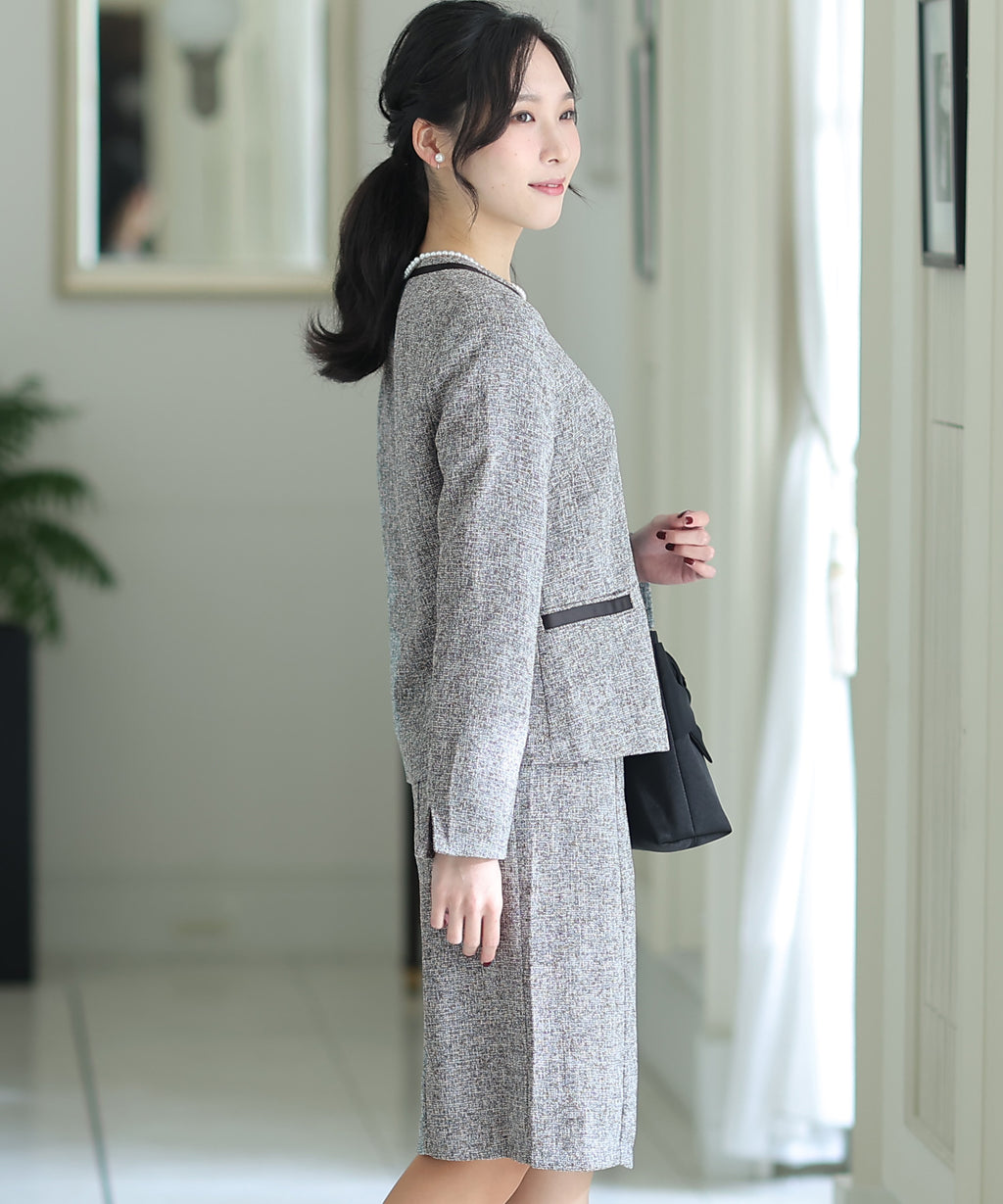 プールヴー PourVous ツィードノーカラースカートスーツ