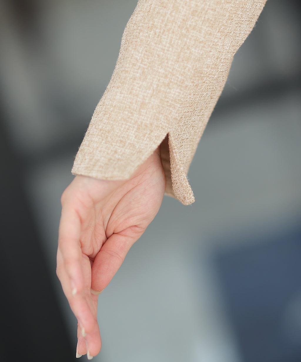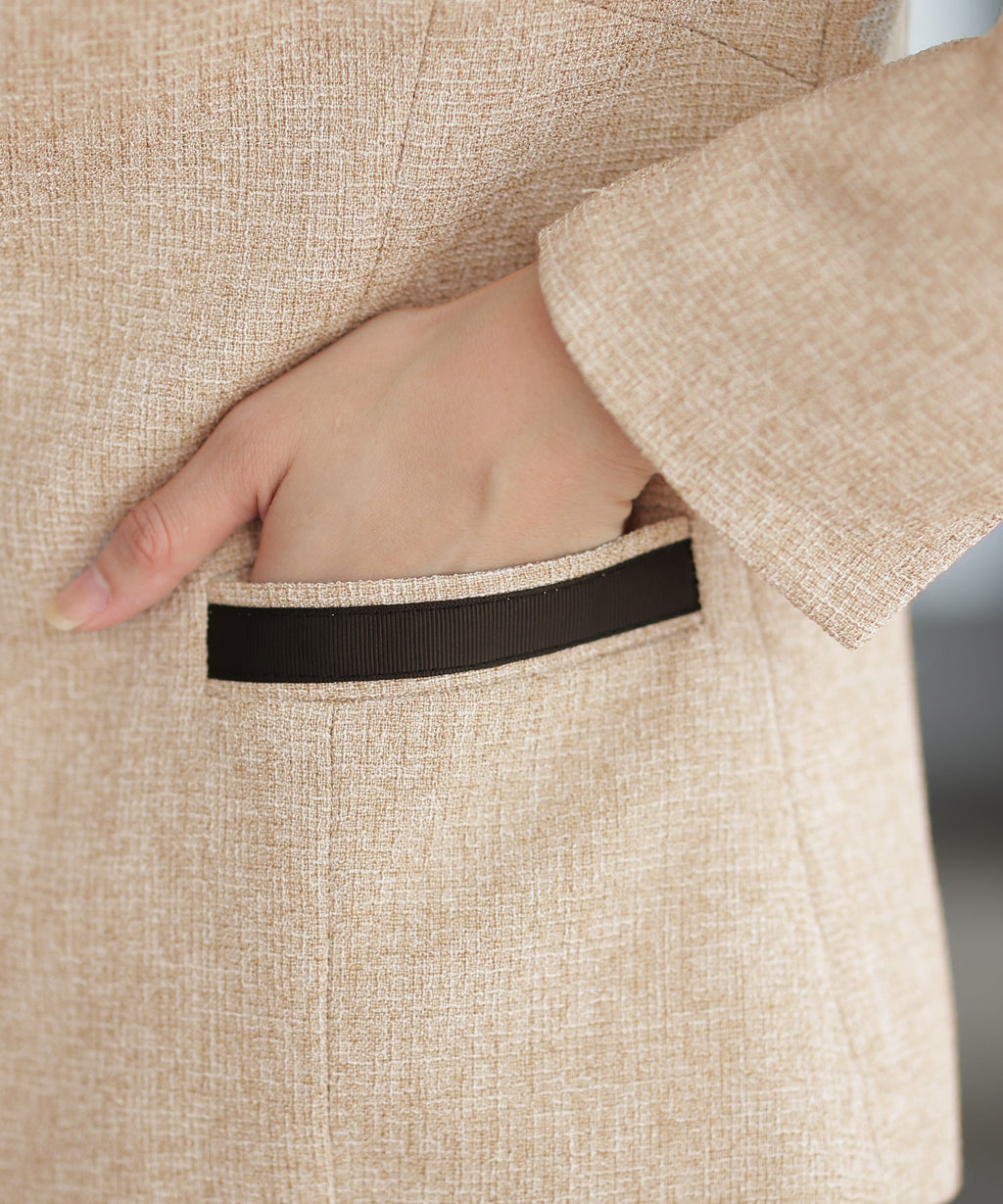 ツイード生地とリボンテープの組み合わせが大人可愛い。