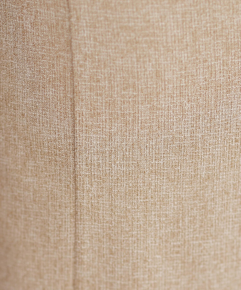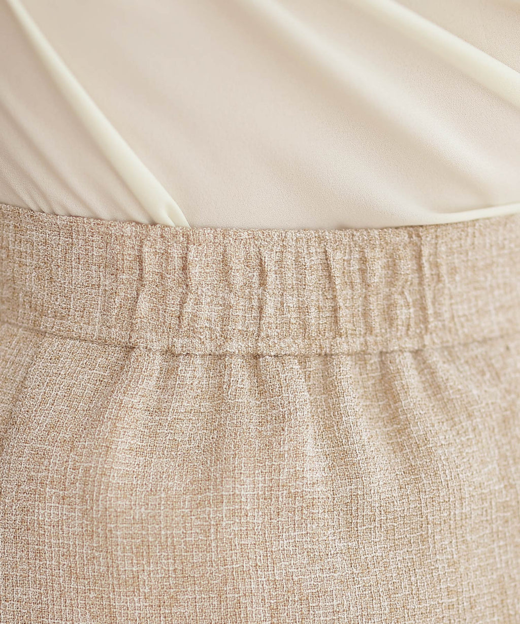 スカート側面に目立ちにくいコンシールファスナーを使用。ウエストは一部ゴムのため着心地、見た目のどちらにもこだわったデザインに。