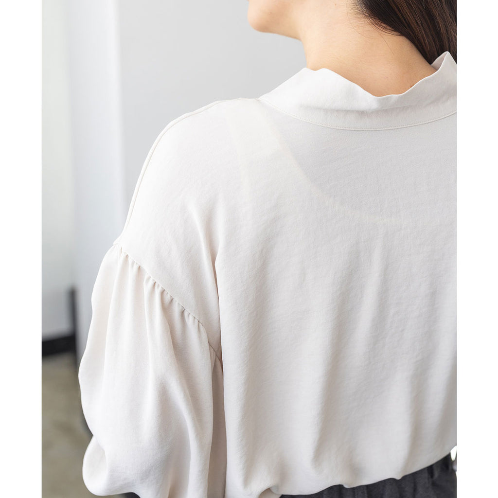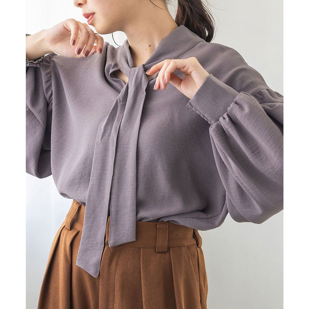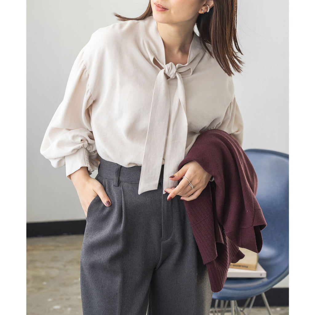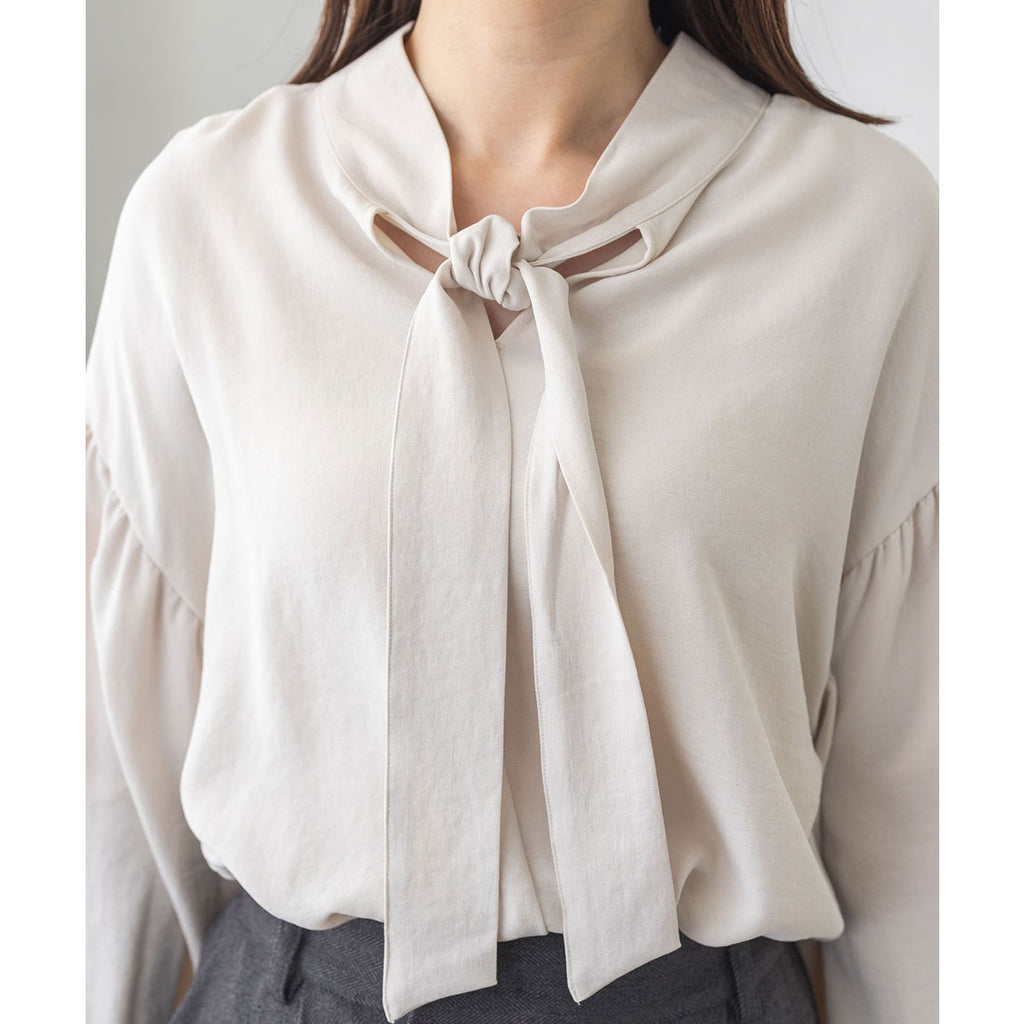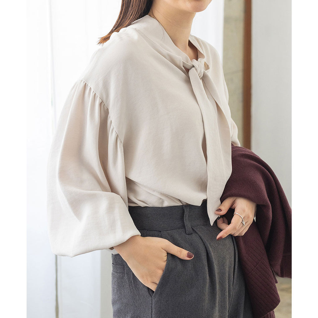 その日の気分にあわせてハイネック、ボウタイスタイル両方お楽しみいただけるブラウスになります。