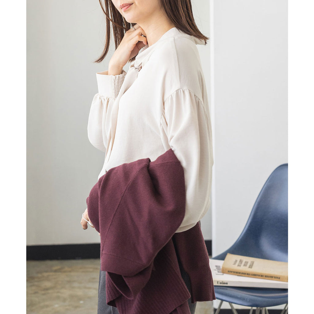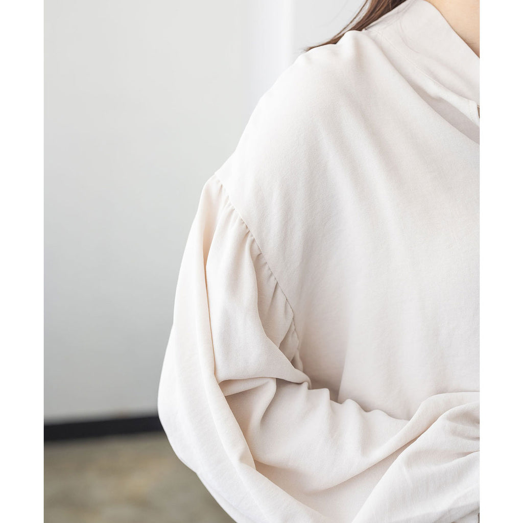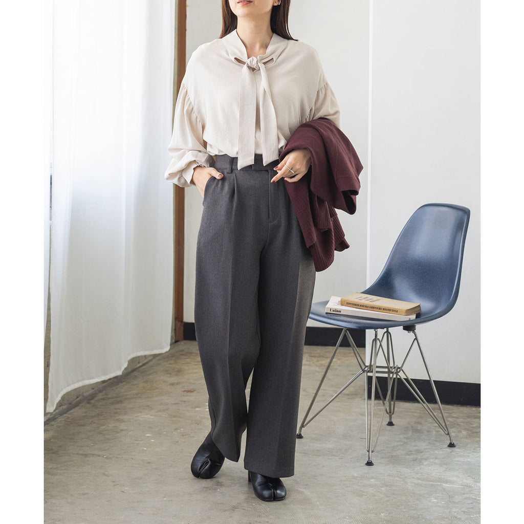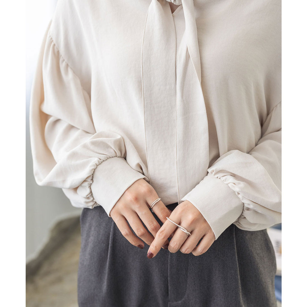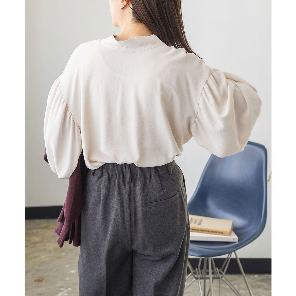 その日の気分にあわせてハイネック、ボウタイスタイル両方お楽しみいただけるブラウスになります。