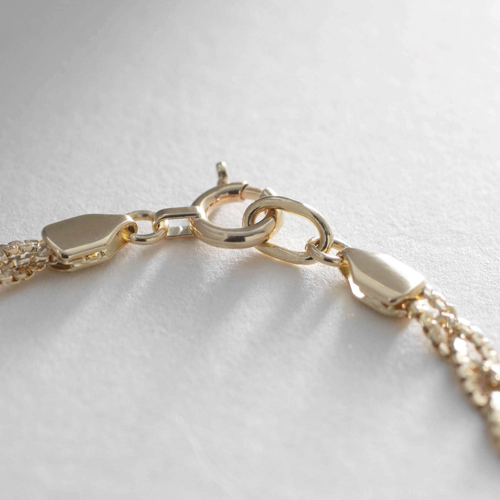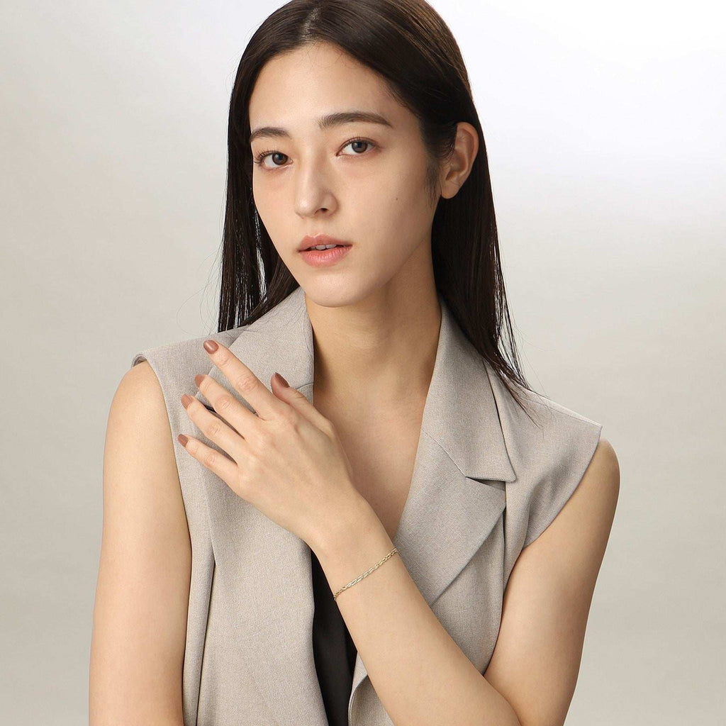 長さは約17cmのチェーンで、単品でもポイントになりますが、重ね付けも楽しんでいただけるデザイン。