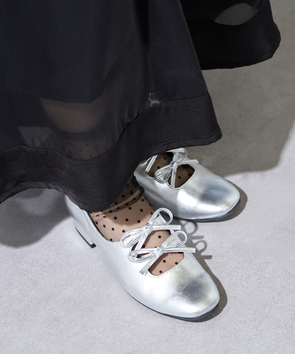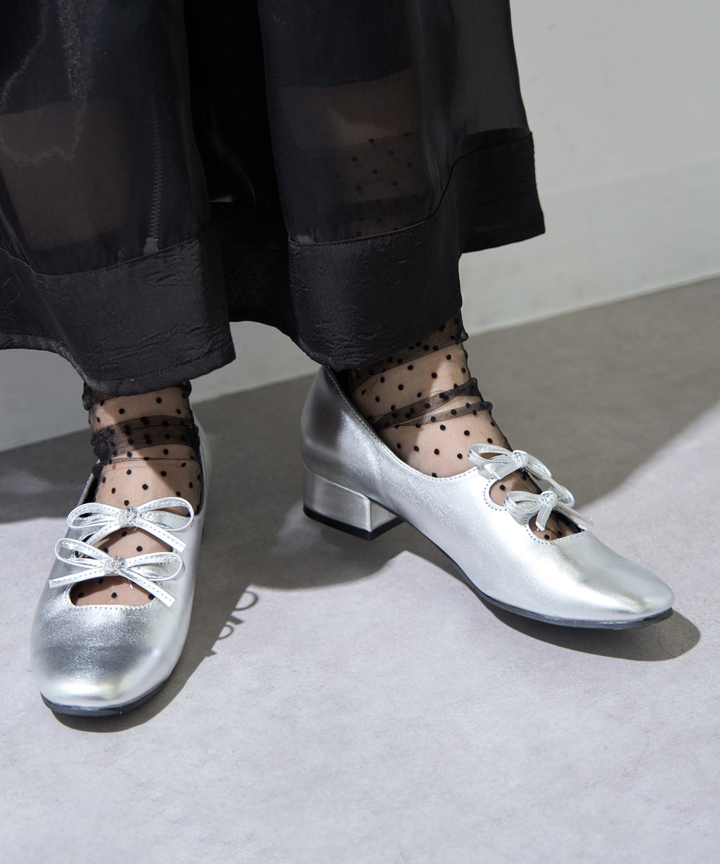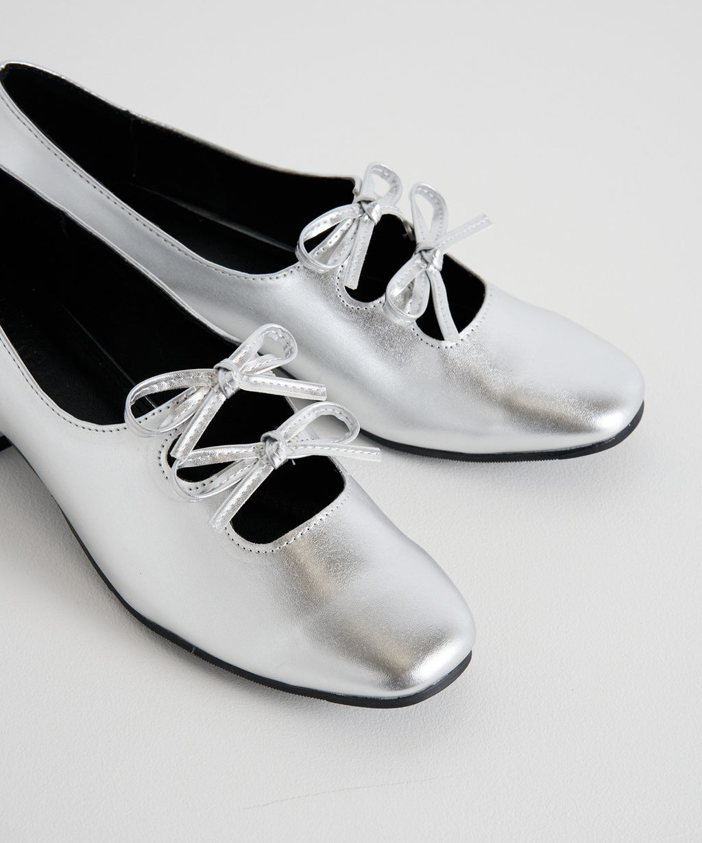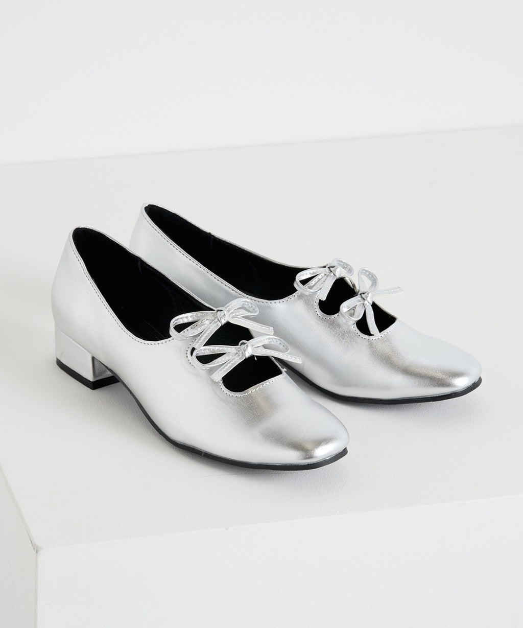 MAISON BREEZE reveur リボン パンプス シルバー ローヒール メタリック フラットシューズ シューズ 靴 エナメル